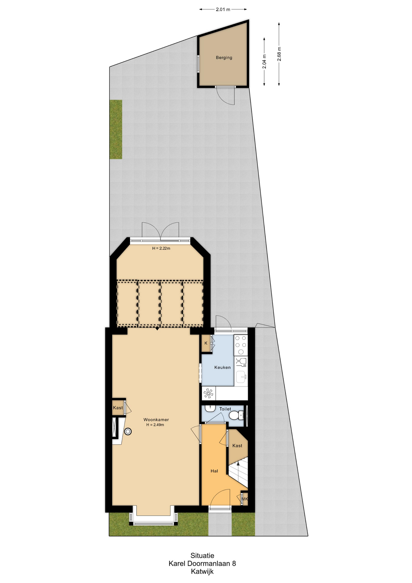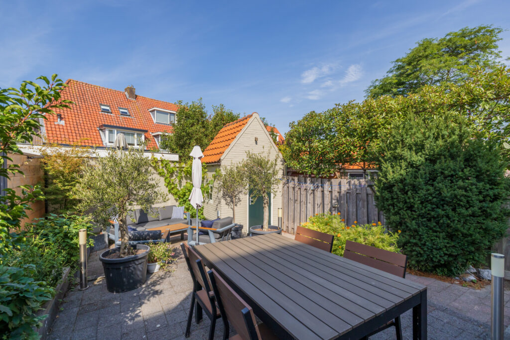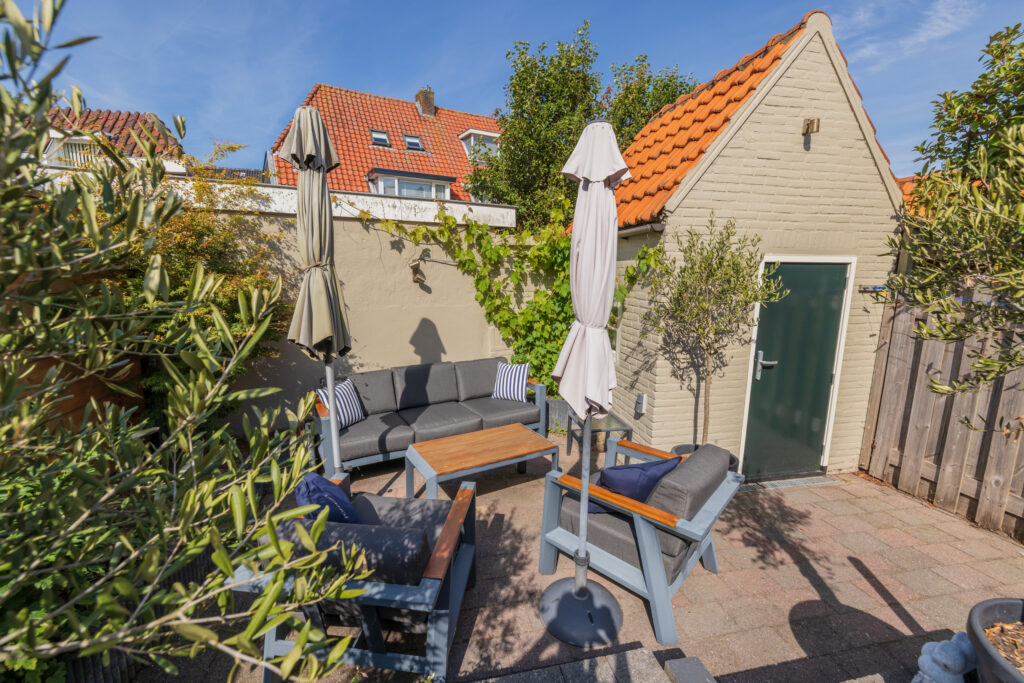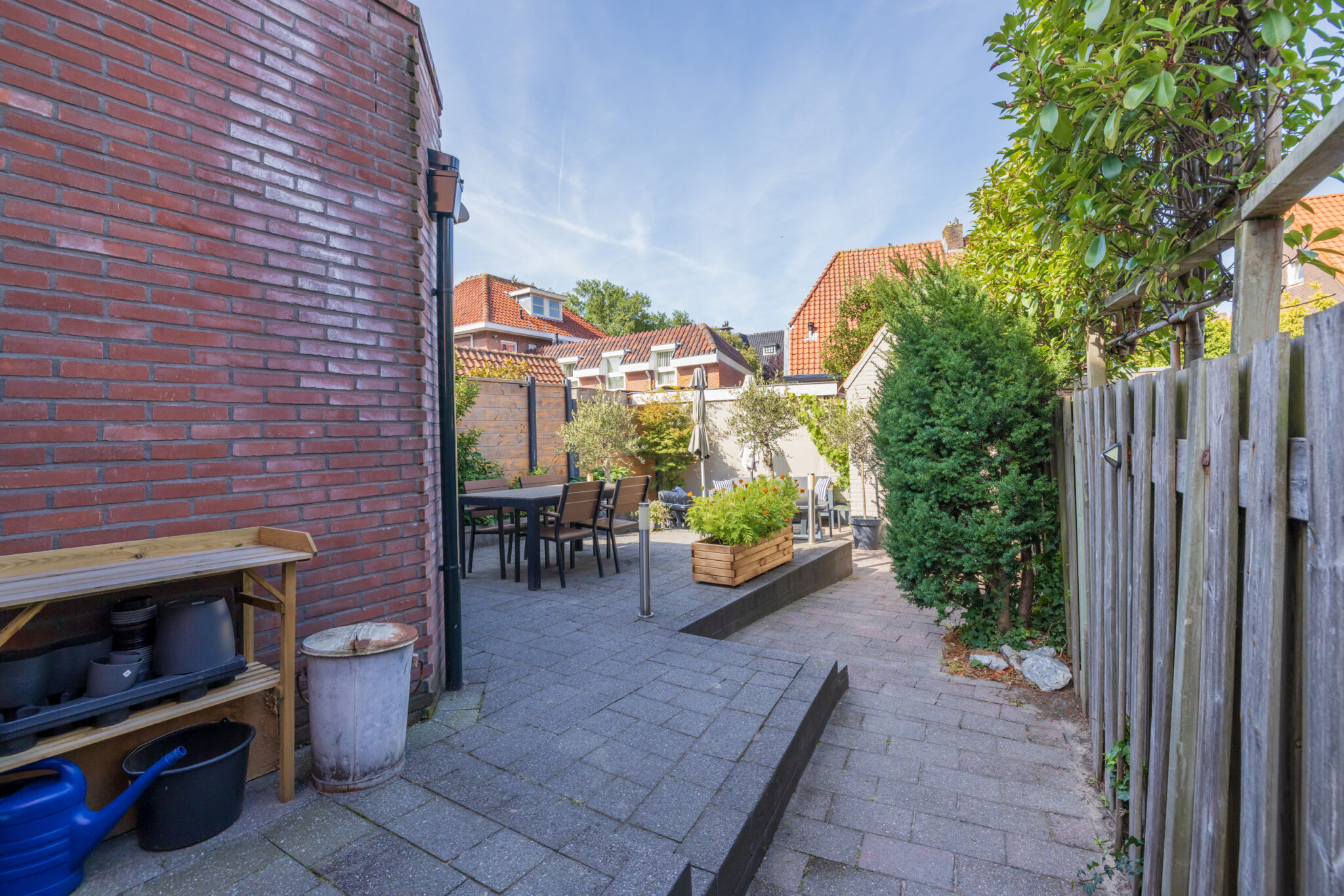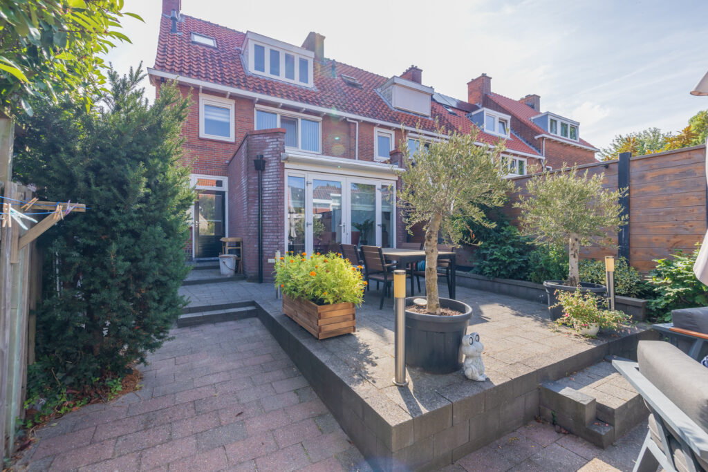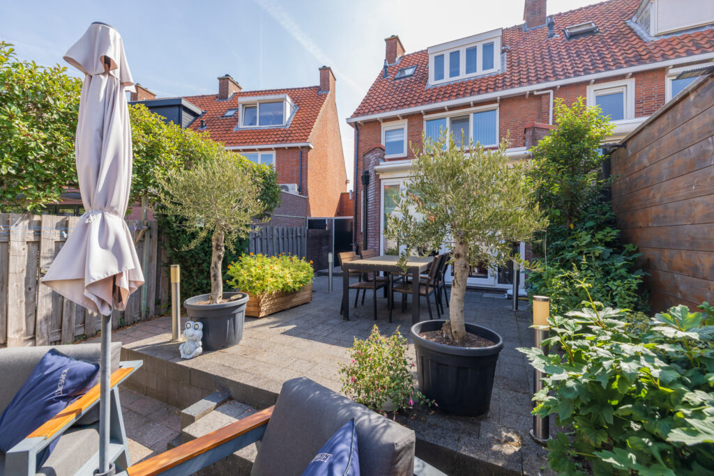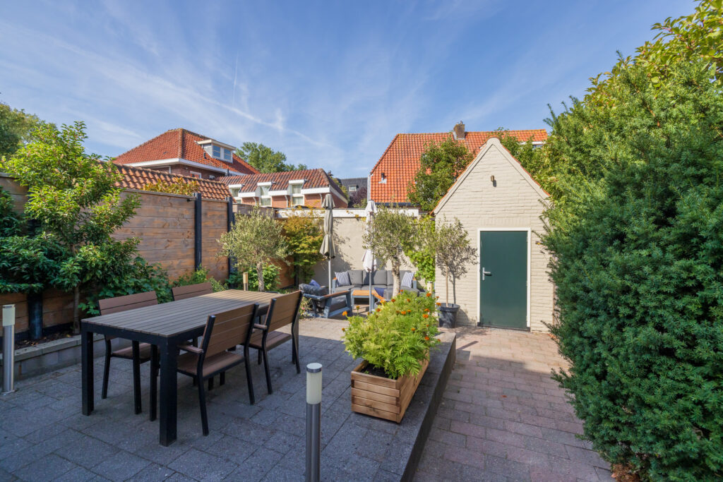 De achtertuin is speels ingericht met hoogteverschillen en twee terrassen. Dankzij de vrije ligging geniet je hier van ’s ochtends tot ver in de avond van de zon. De fietsenberging is recentelijk opgeknapt en voorzien van vliering, superhandig voor het opbergen van je tuinkussens e.d. Via een poort aan de zijkant bereik je de openbare weg aan de voorzijde van de woning. De voortuin is grotendeels van de Gemeente Katwijk en in gebruik door de eigenaren van de woning. Hier is in het verleden een huurovereenkomst voor afgesloten, maar er wordt al jaren geen huur meer in rekening gebracht.