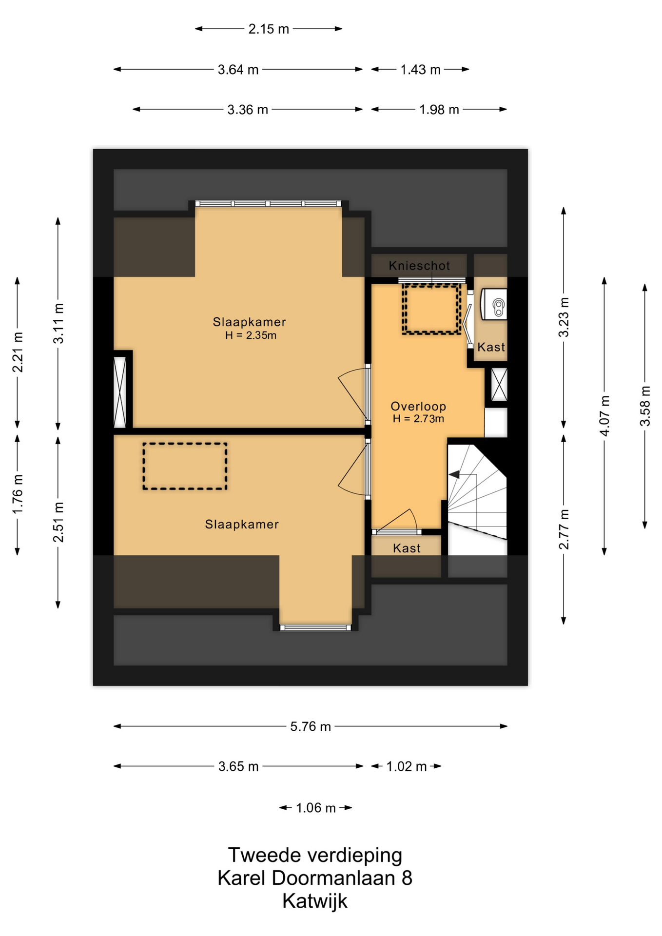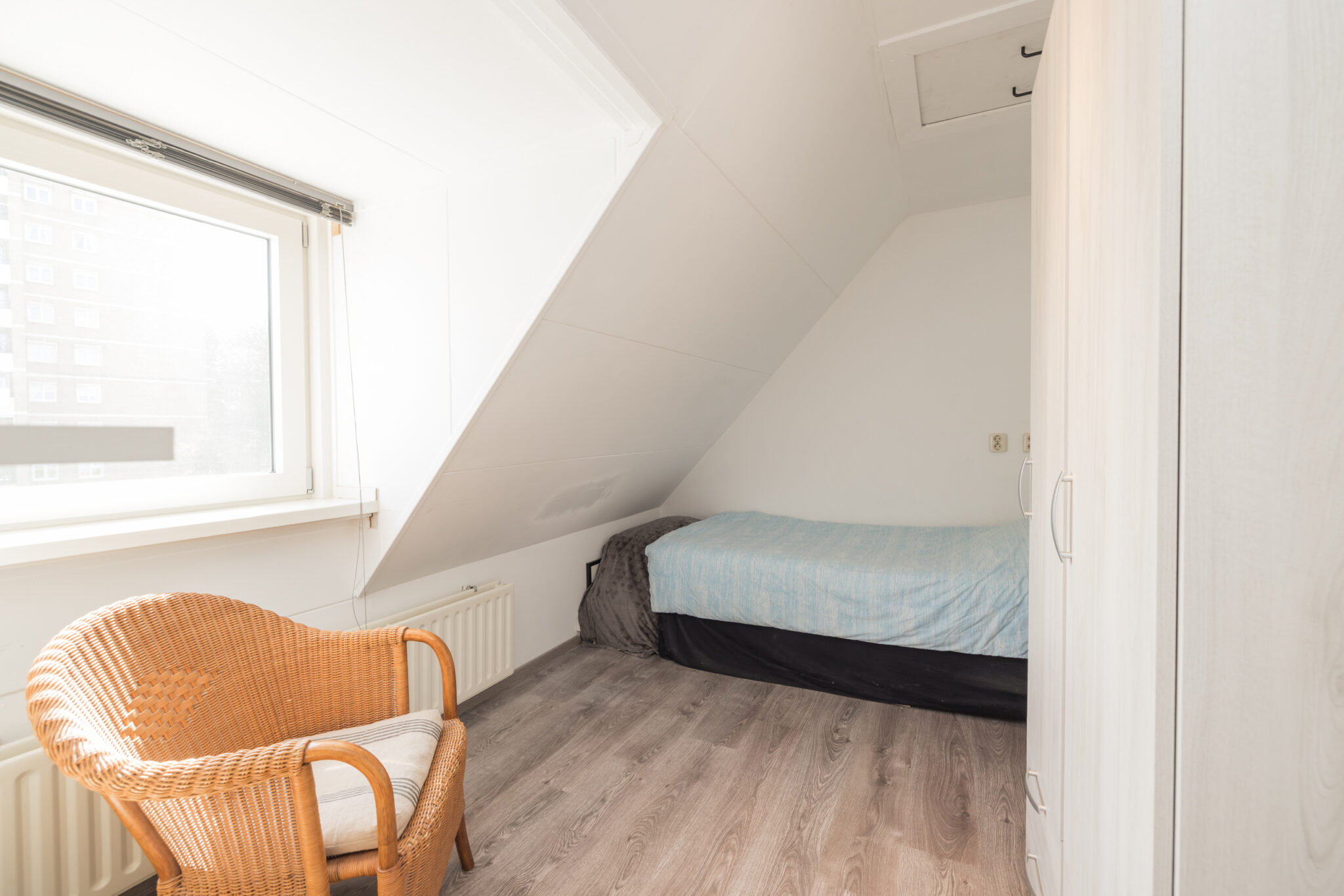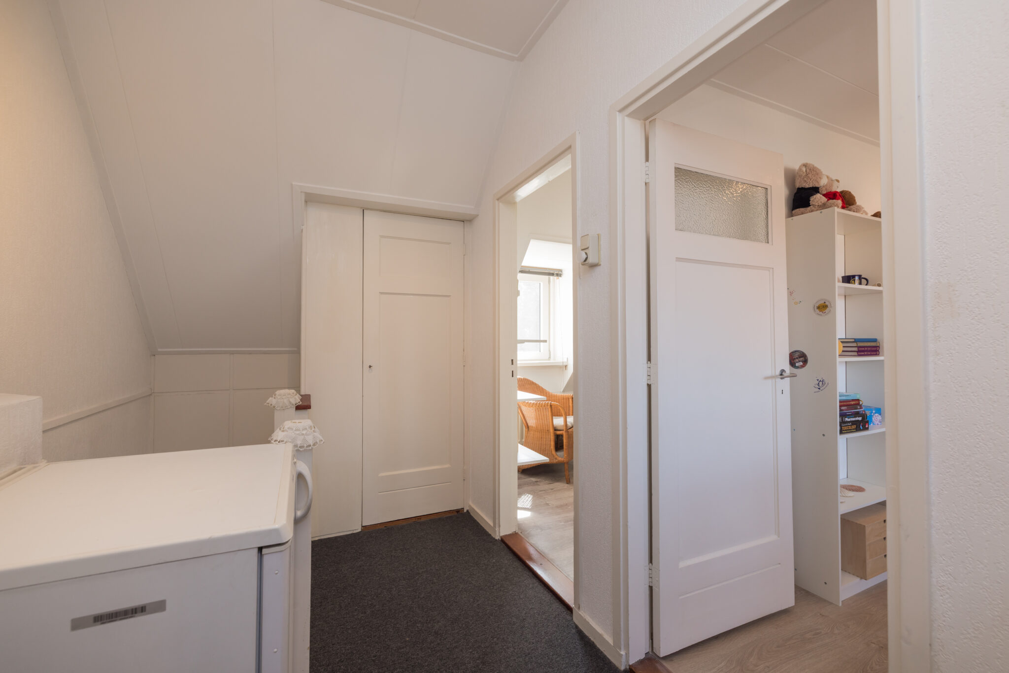 Vaste trap naar zolder: overloop met Velux dakraam, berging en een vaste kast met c.v.-ketel (Nefit HR, bouwjaar 2012). Ruime slaapkamer aan de achterzijde v.v. groot dakkapel en aan de voorzijde nog een grote slaapkamer v.v. kunststof dakkapel en toegang tot een bergvliering.