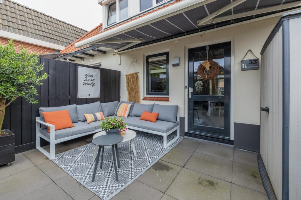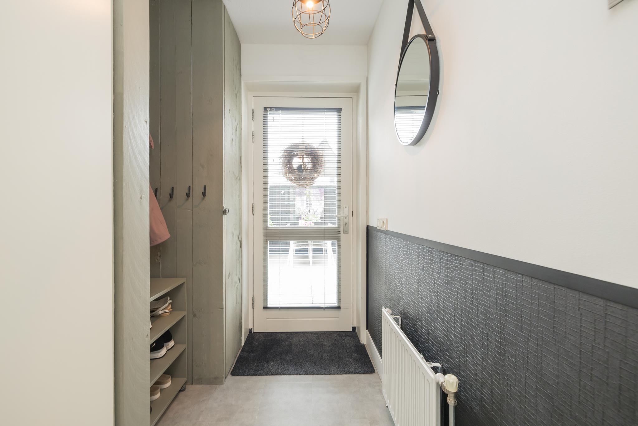 Centrale entree met afgesloten portiek op de begane grond. Op de eerste verdieping bereik je via het royale, sfeervol ingerichte dakterras de woning, met aangrenzend een eigen berging.