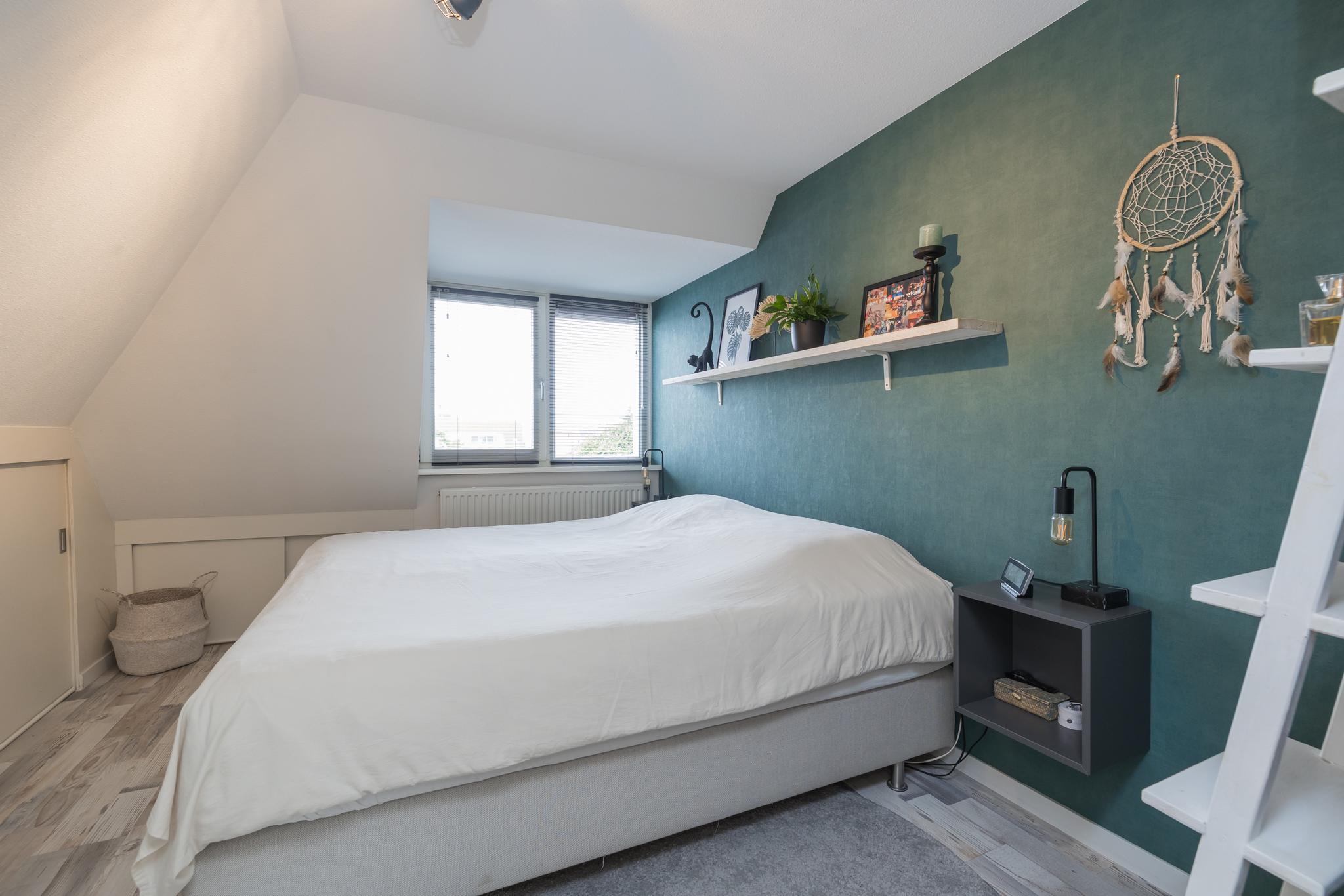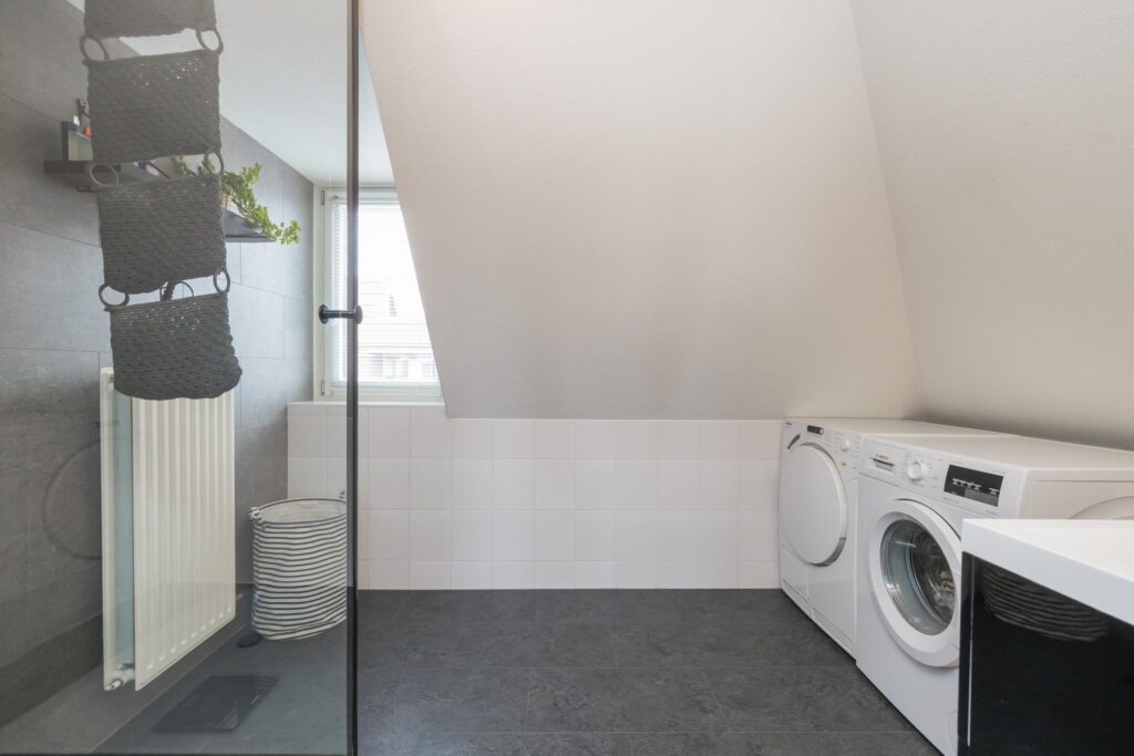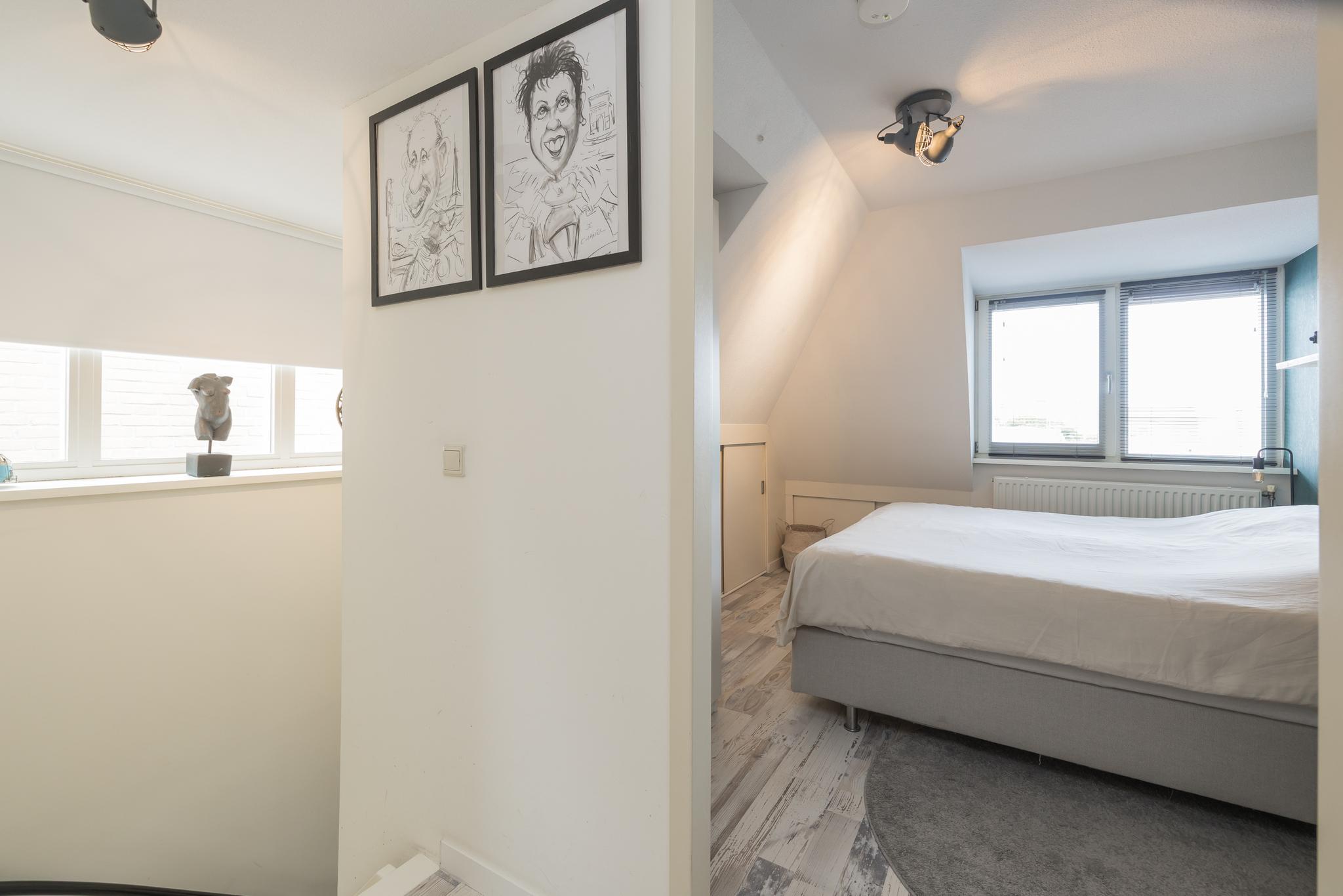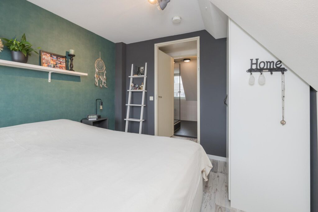 Via de open trap bereik je de slaapverdieping met overloop en vlizotrap naar de bergvliering. De ruime slaapkamer beschikt over een dakkapel en knieschotten met bergruimte. De badkamer is modern afgewerkt en voorzien van een dakkapel, douchecabine, wastafelmeubel en aansluitingen voor wasapparatuur.