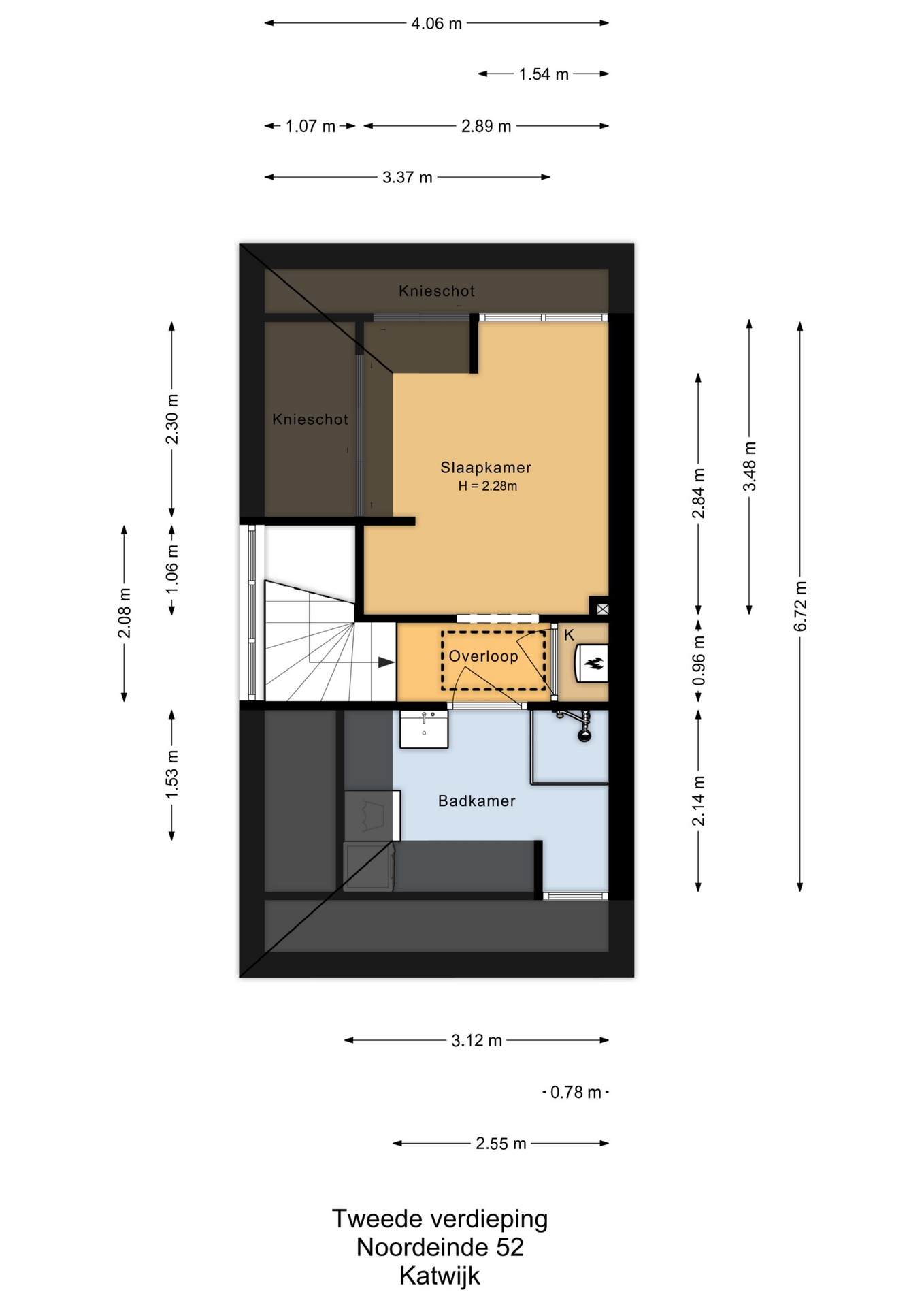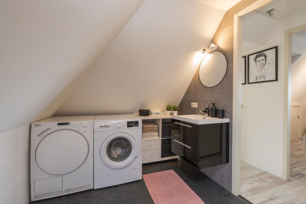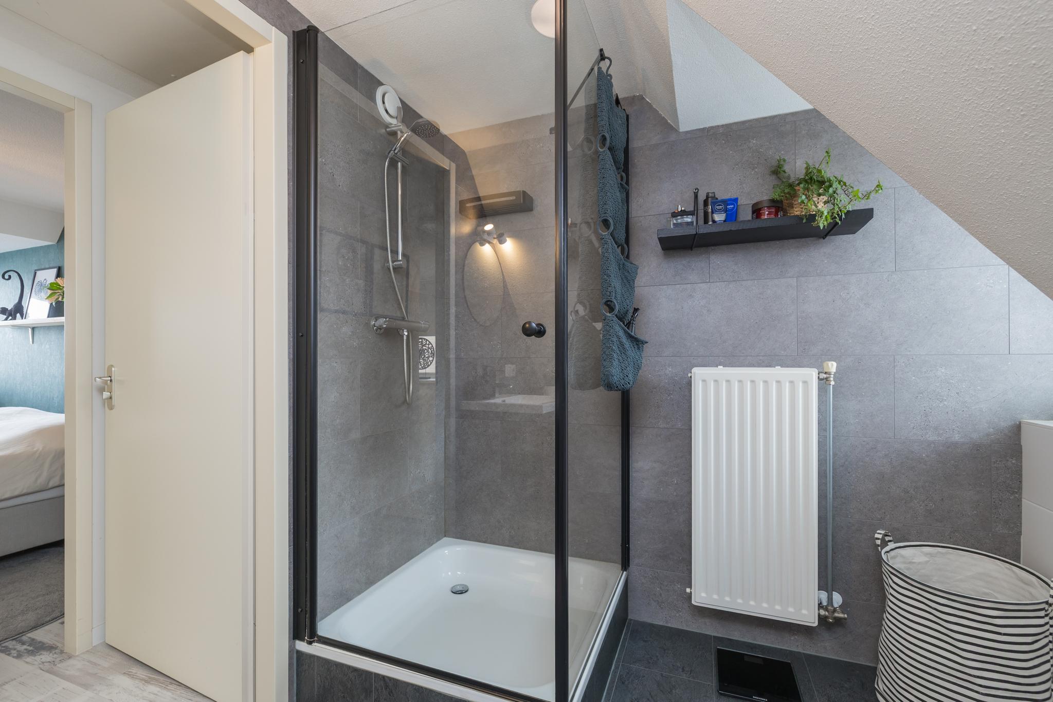 Via de open trap bereik je de slaapverdieping met overloop en vlizotrap naar de bergvliering. De ruime slaapkamer beschikt over een dakkapel en knieschotten met bergruimte. De badkamer is modern afgewerkt en voorzien van een dakkapel, douchecabine, wastafelmeubel en aansluitingen voor wasapparatuur.
