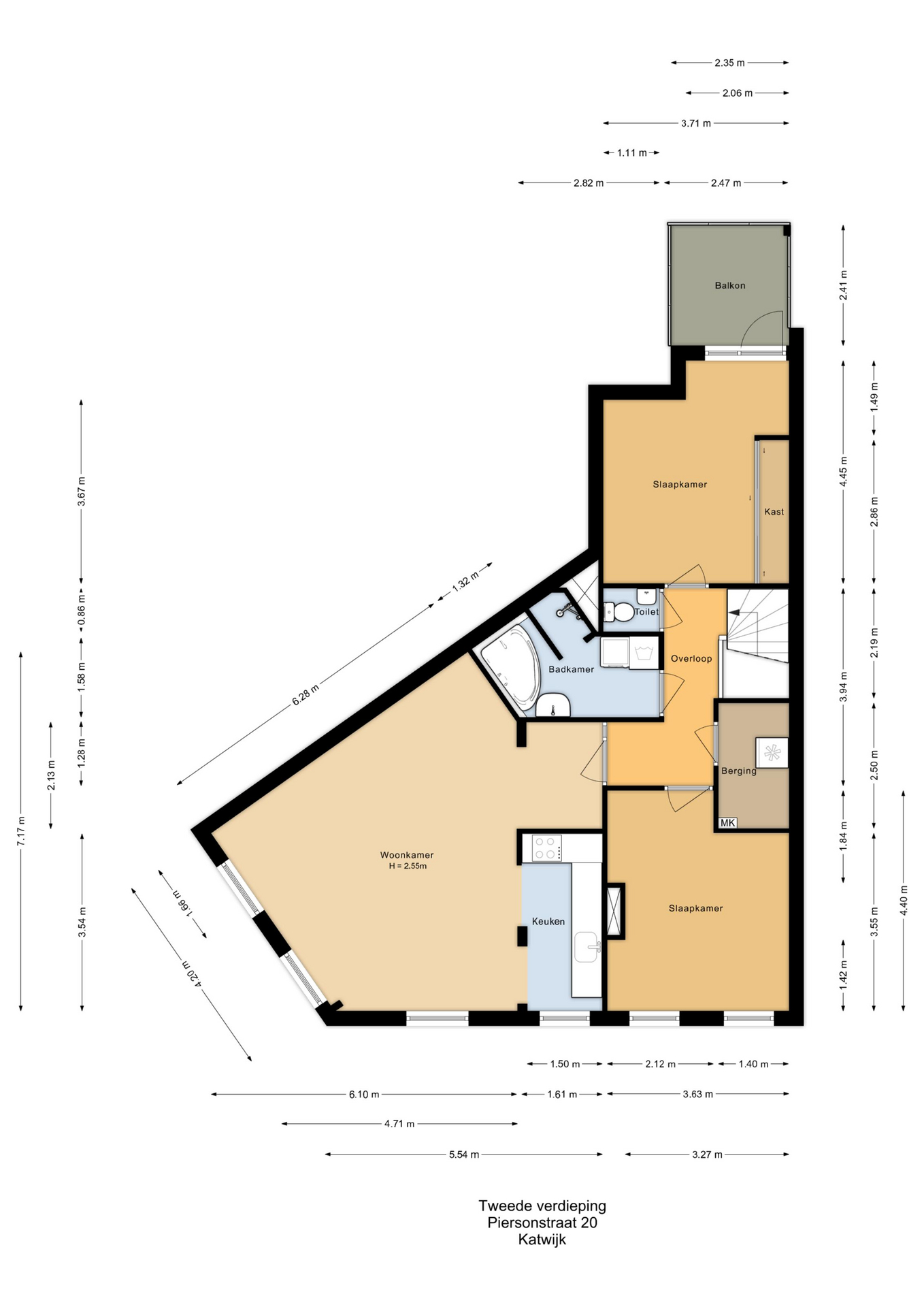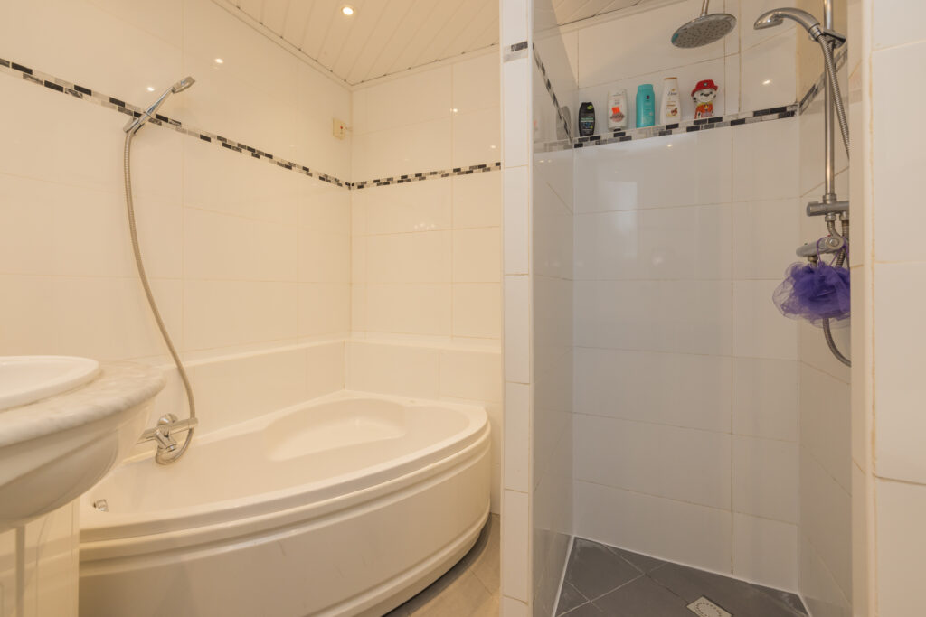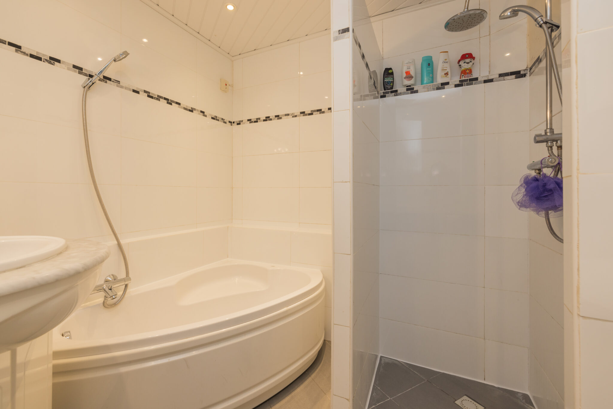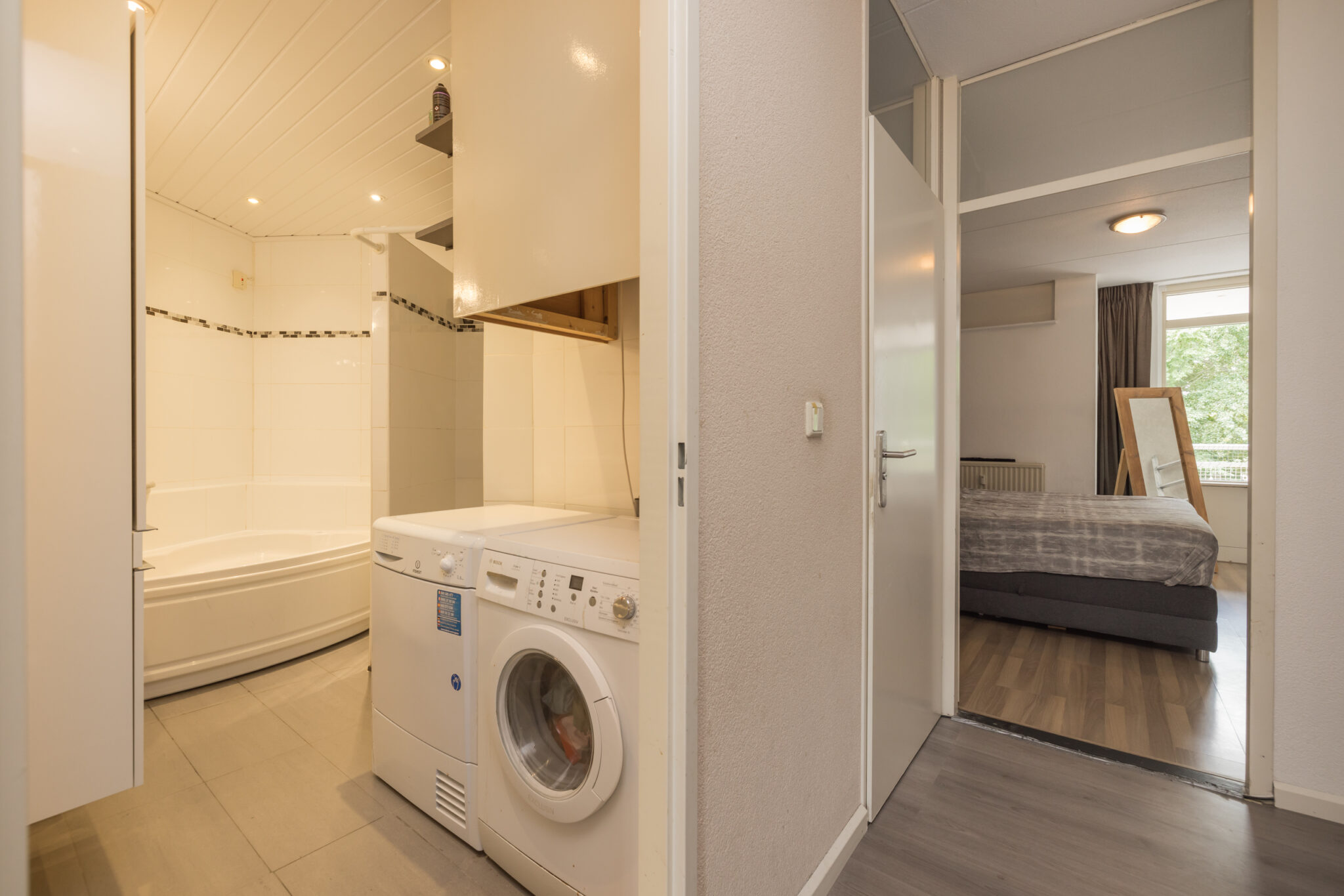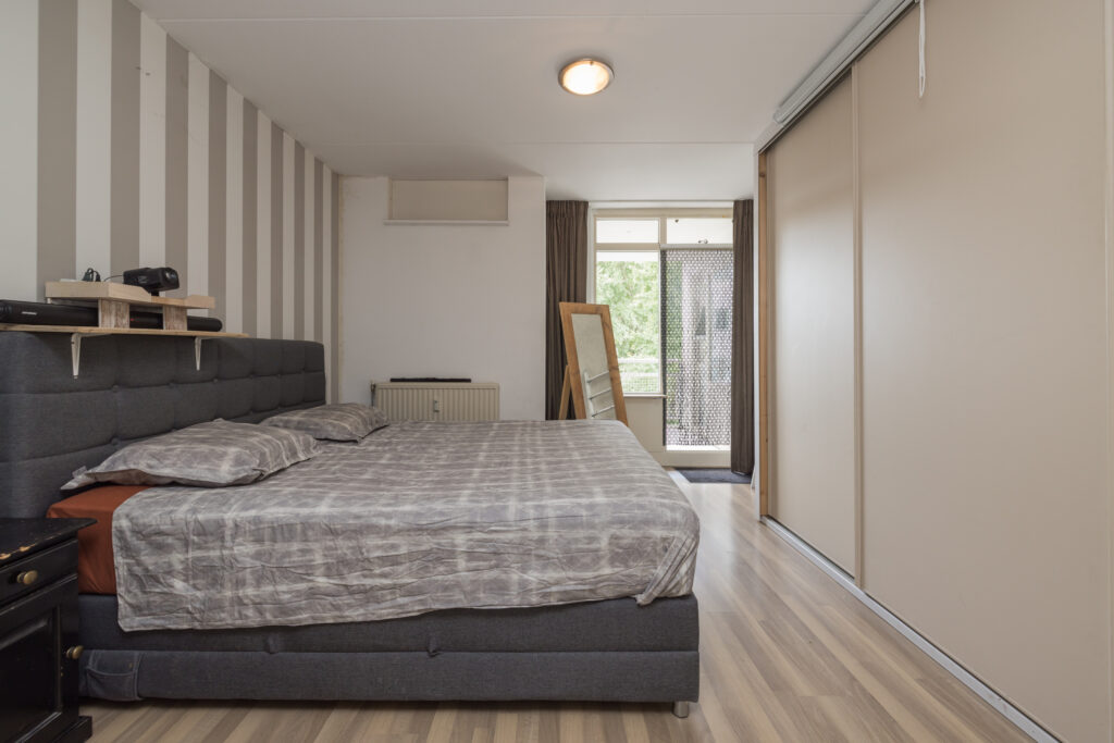 Het appartement heeft twee bijzonder ruime slaapkamers. De ouderslaapkamer aan de achterzijde beschikt over een vaste schuifkastenwand en geeft toegang tot het zonnige balkon. De tweede slaapkamer aan de voorzijde is eveneens royaal van formaat. De badkamer is volledig betegeld in neutrale stijl en voorzien van een ligbad, inloopdouche met regendouche, wastafelmeubel, designradiator, elektrische boiler en aansluitingen voor wasapparatuur.