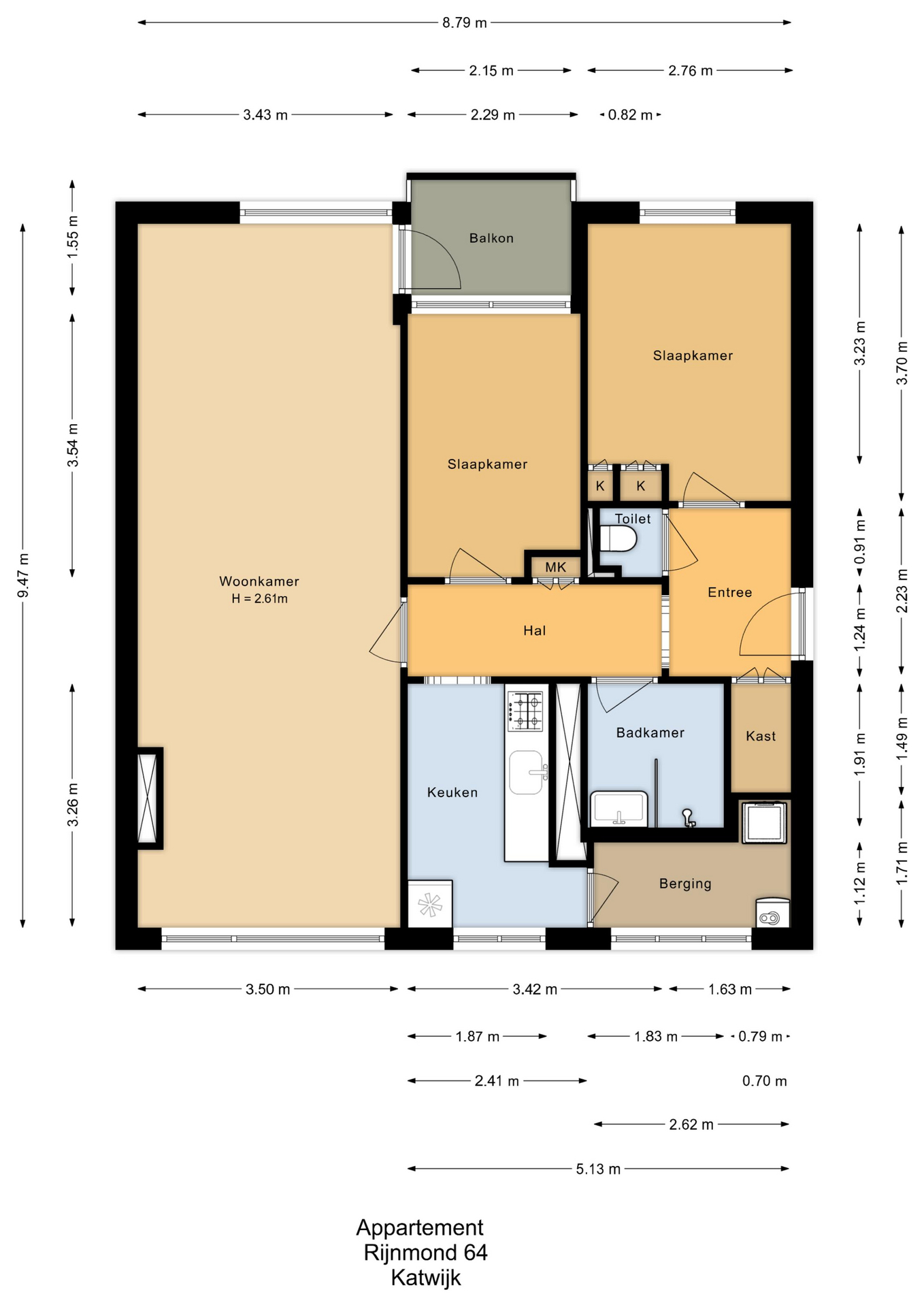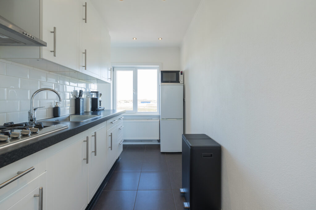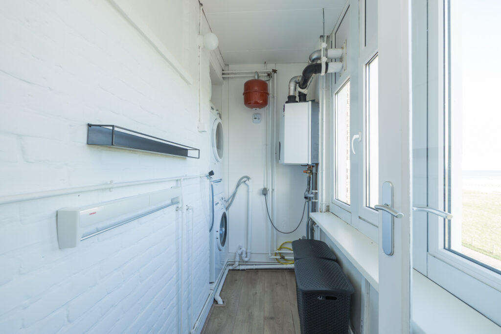 Via de entree komt u in de hal met toegang tot een inpandige berging. Daarnaast treft u een apart, modern toilet en de badkamer met inloopdouche en wastafelmeubel. Het appartement beschikt over twee slaapkamers met laminaatvloer. De keuken is uitgevoerd in een lichte kleurstelling en voorzien van diverse inbouwapparatuur, waaronder een 5-pits gaskookplaat en afzuigkap. De royale woonkamer biedt een fantastisch uitzicht op zee en geeft toegang tot het zonnige balkon op het zuiden. In de bijkeuken vindt u de aansluiting voor de wasmachine en de CV-combiketel (Atag, 2013).