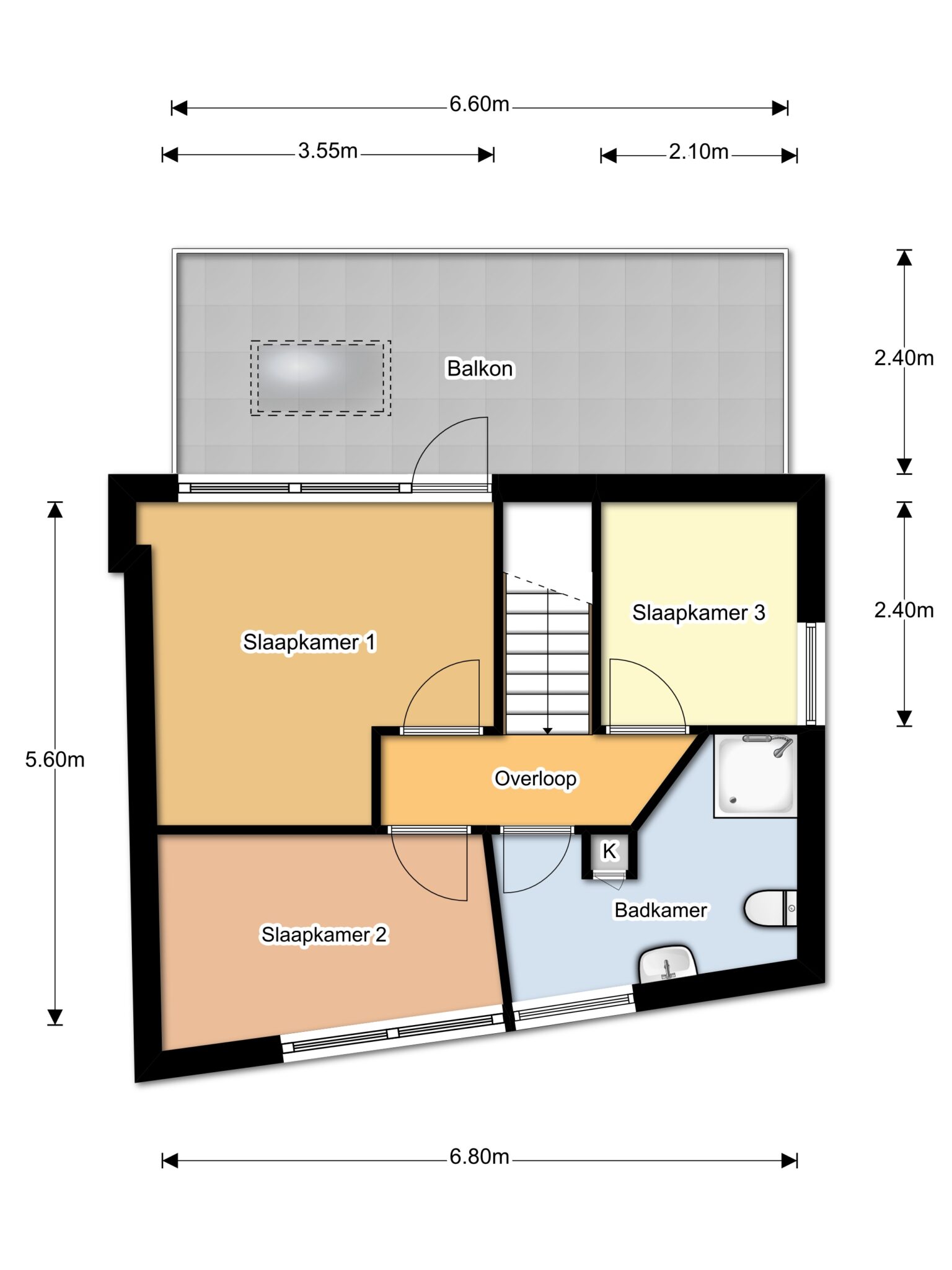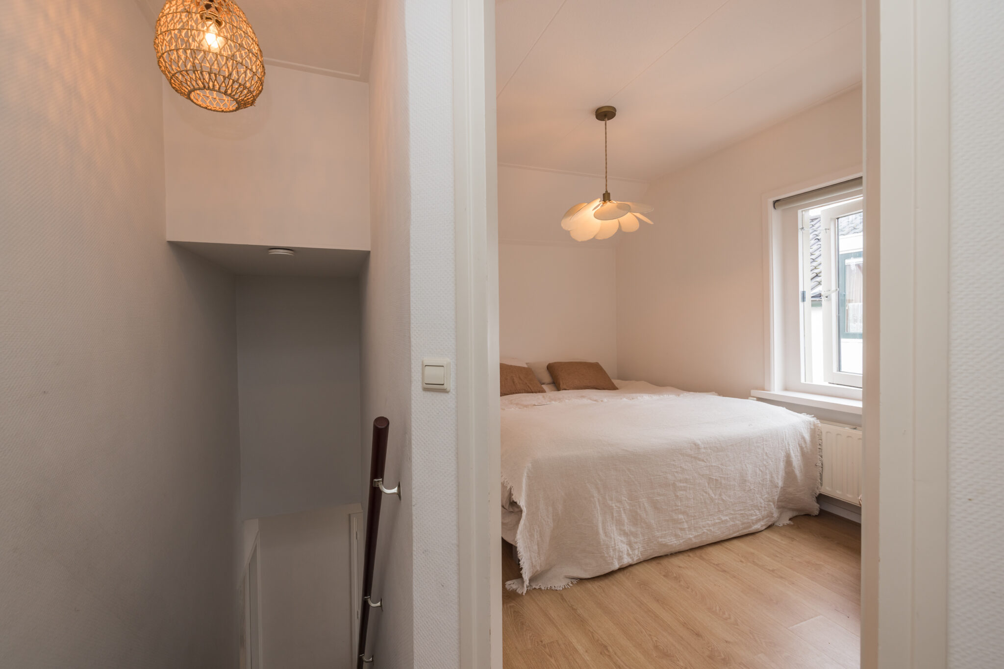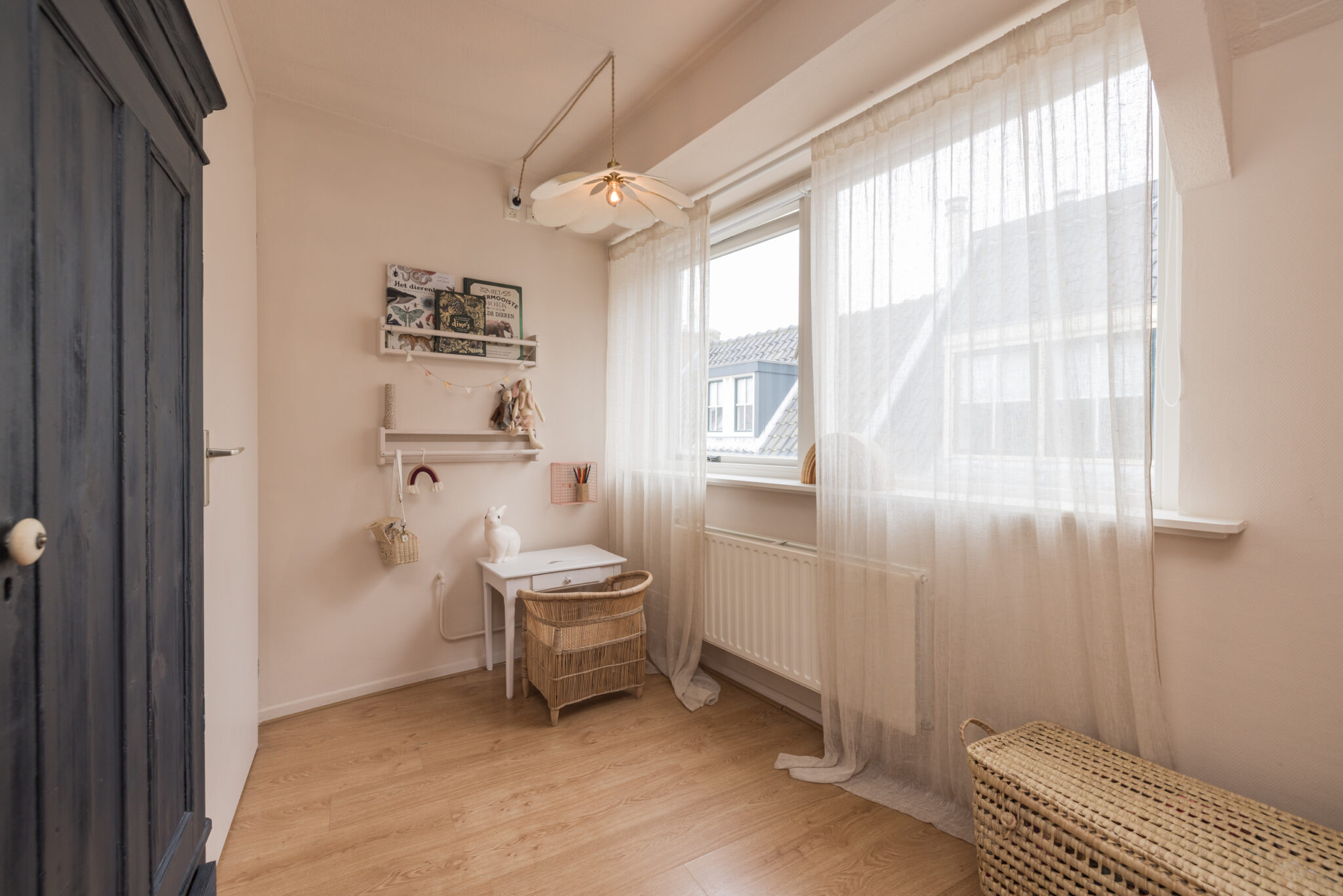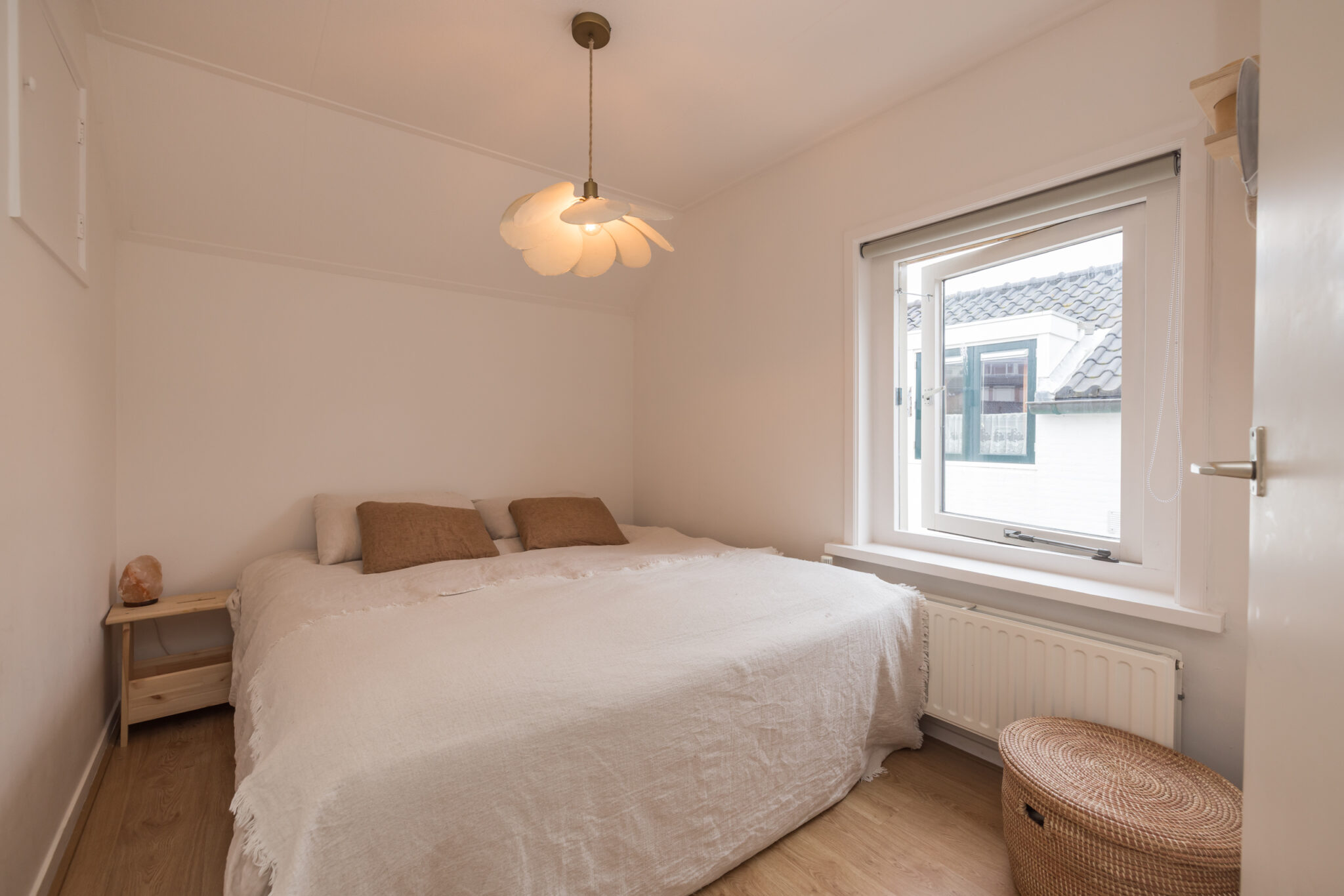 Op de overloop bereik je de ouderslaapkamer aan de voorzijde met laminaatvloer en twee slaapkamers aan de achterzijde, waarvan één directe toegang heeft tot het dakterras – een fijne plek om buiten te zitten. Boven de trap is tussen de kamers op slimme wijze extra bergruimte gecreëerd. Ideaal om spullen netjes uit het zicht op te bergen en daarmee een zeer waardevolle toevoeging aan de woning. De moderne badkamer is compleet uitgevoerd met een tweede toilet, douchecabine, wastafelmeubel en designradiator.