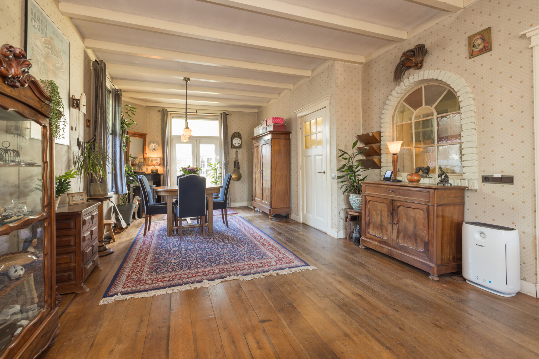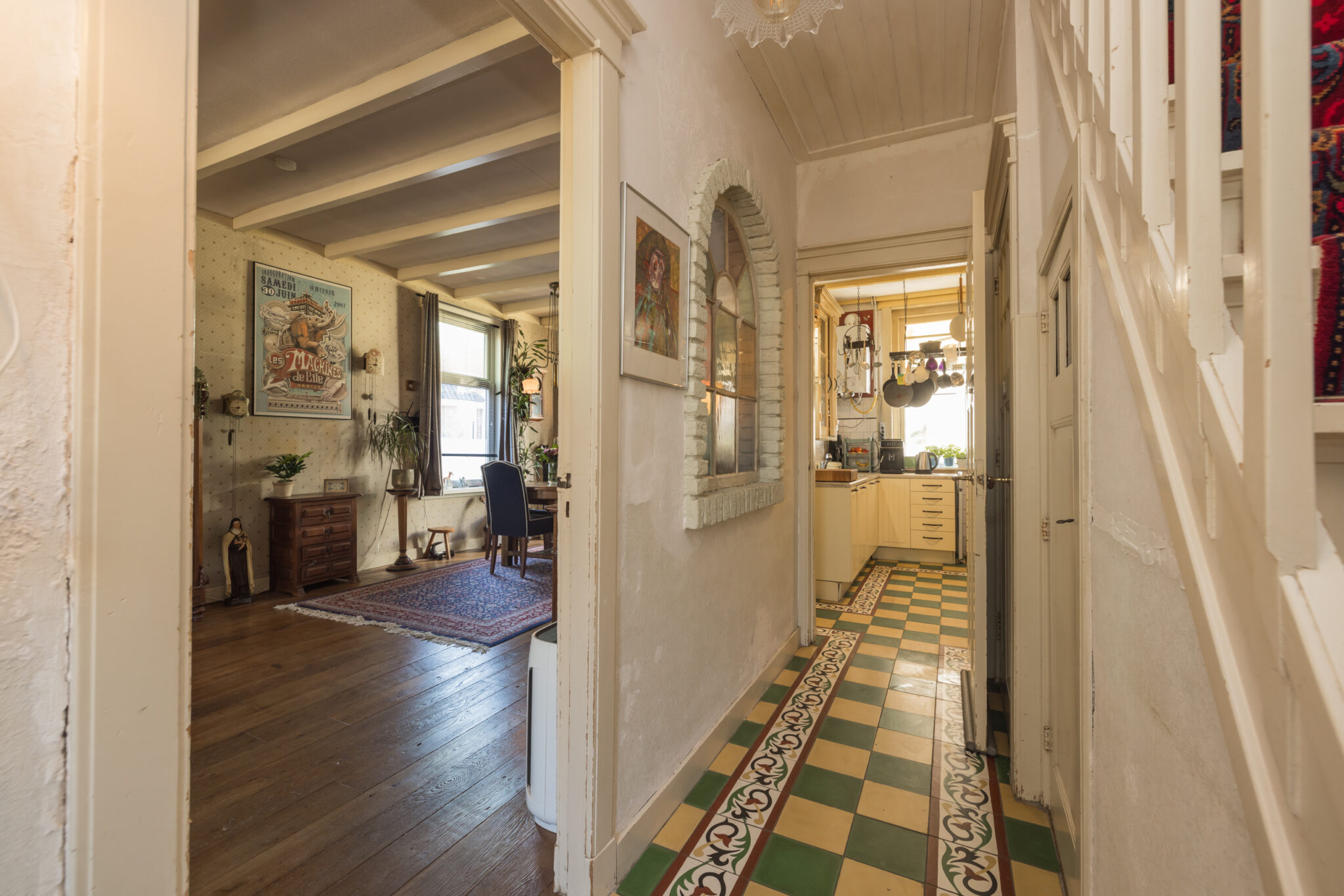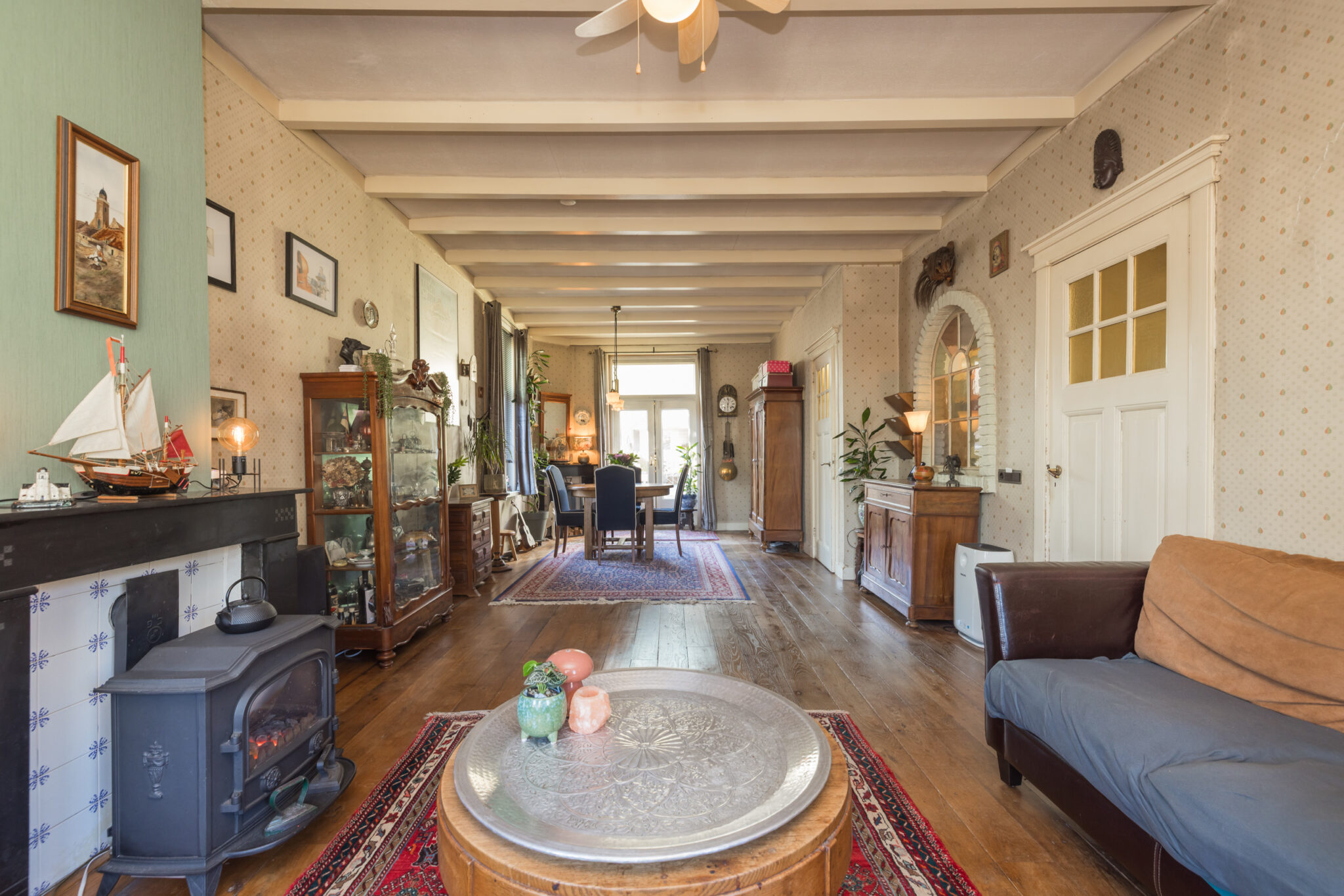 De fraaie voorgevel is een lust voor het oog en ook binnenshuis zijn nog tal van originele details behouden gebleven. Dit is zo’n woning waar alles klopt en waar je met plezier je eigen draai aan geeft om het geheel naar smaak af te werken.