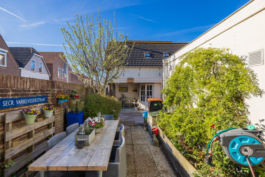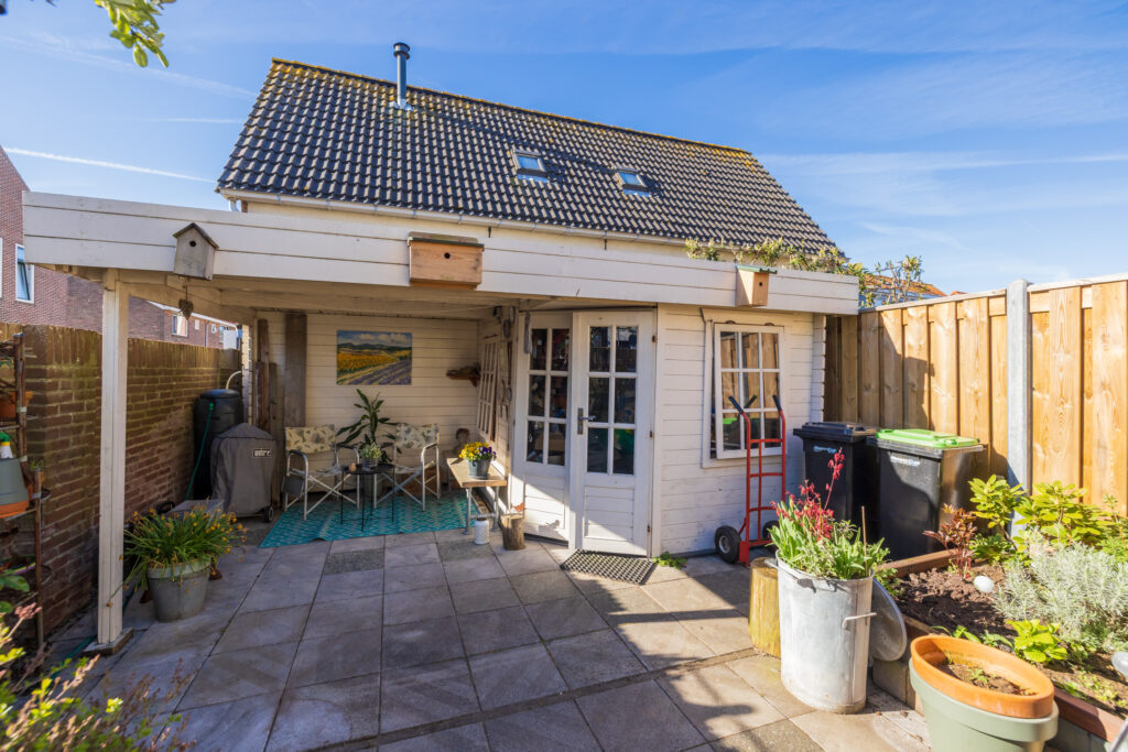 De achtertuin is ruim, beschikt over een achterom en een houten schuur met aangebouwde veranda. De basis ligt er al, met een lik verf en een kleine update heb je hier straks een heerlijke buitenplek waar je het hele seizoen van geniet.