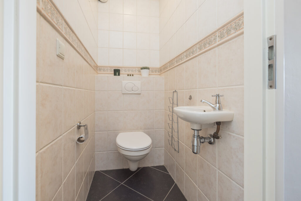 De hal biedt verder een ruime inloop bergkast, een apart toilet en de badkamer (grotendeels gerenoveerd in 2024) met wastafelmeubel, inloopdouche, designradiator en aansluiting voor de wasmachine. Daarnaast is er een kast met de cv-installatie en een extra bergruimte.