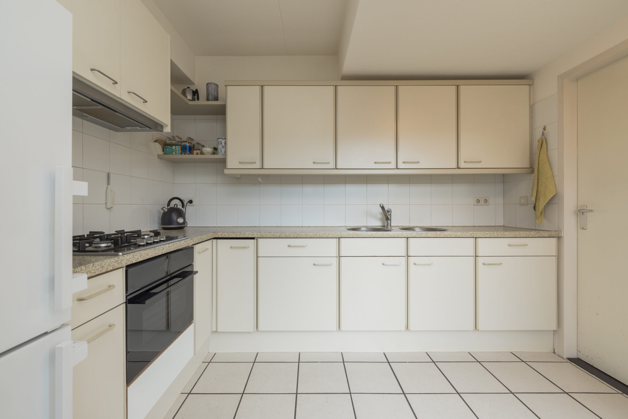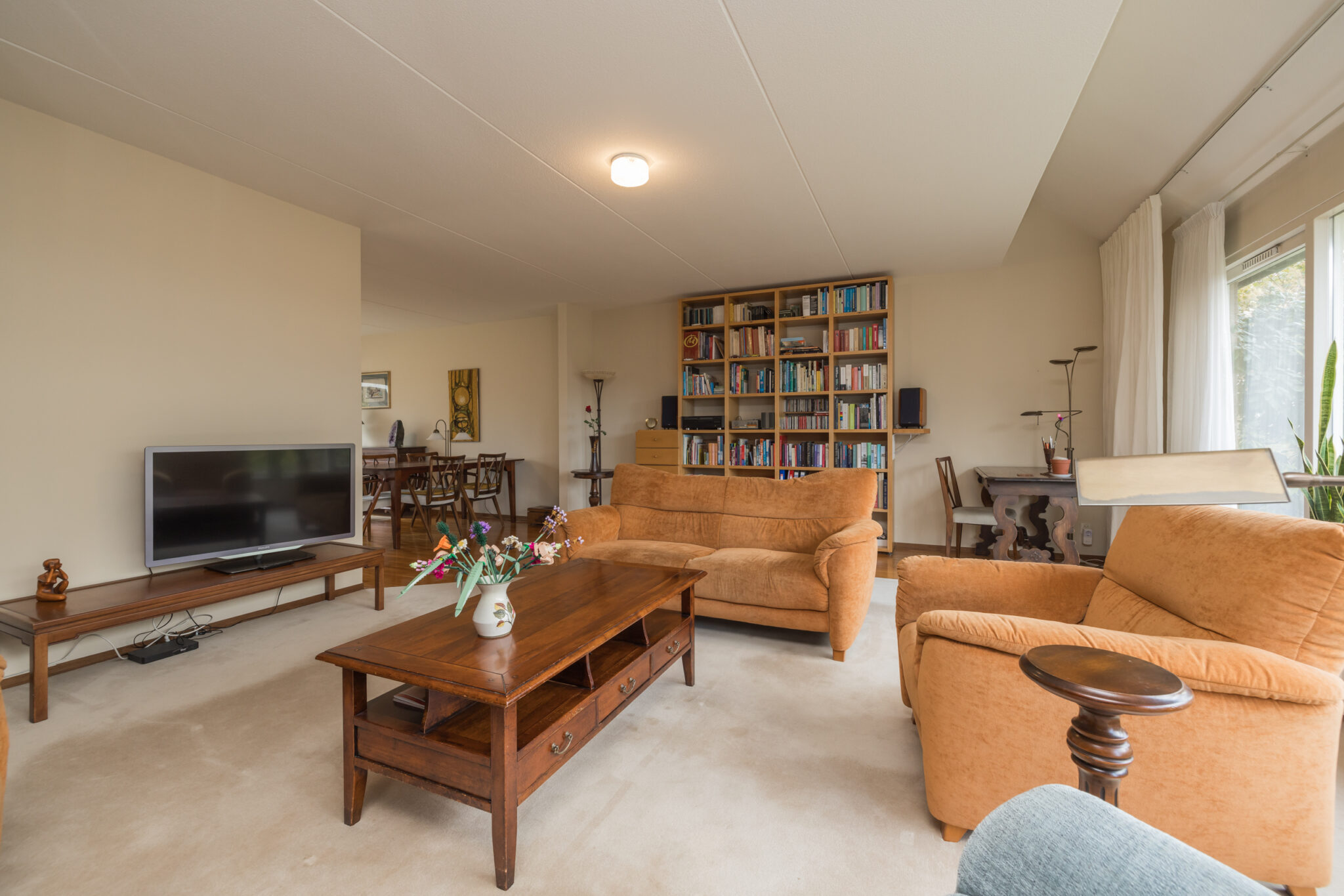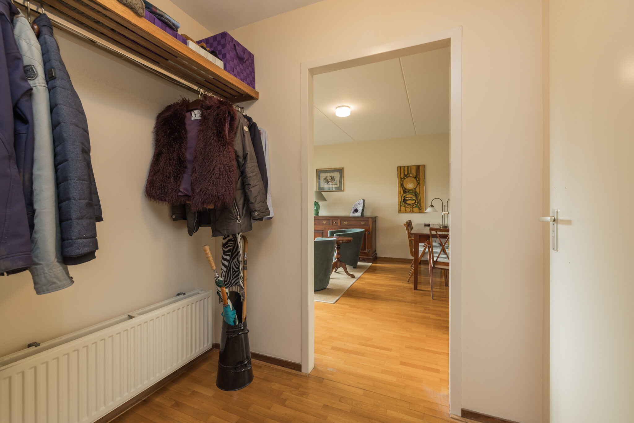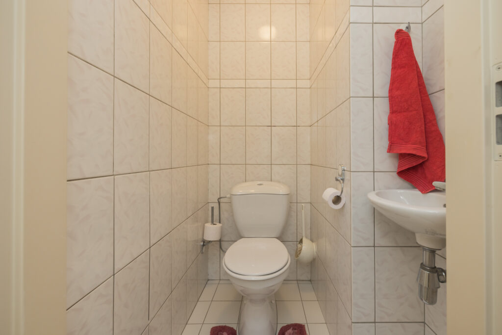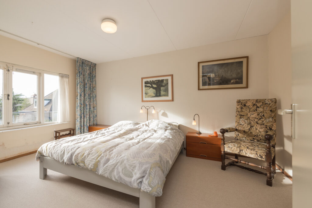 Entree, hal, vernieuwde meterkast en toiletruimte met toilet en fonteintje. Ruime L-vormige woonkamer met veel lichtinval, open haard en een prettig uitzicht op de tuin. Aansluitend een open keuken met toegang tot bijkeuken met aansluitingen ten behoeve van wasapparatuur. Vanuit deze bijkeuken is er toegang tot de achtertuin en tot de voormalige garage, die is omgebouwd tot een praktische berging en extra werkruimte – ideaal voor kantoor of hobby, maar eenvoudig weer als garage te gebruiken.
