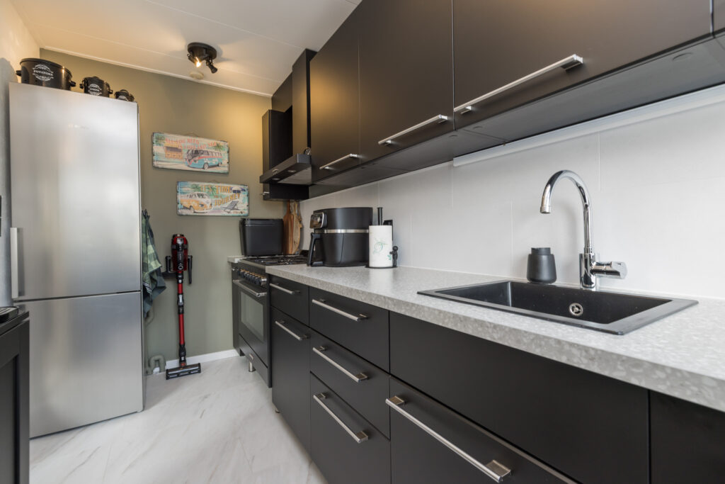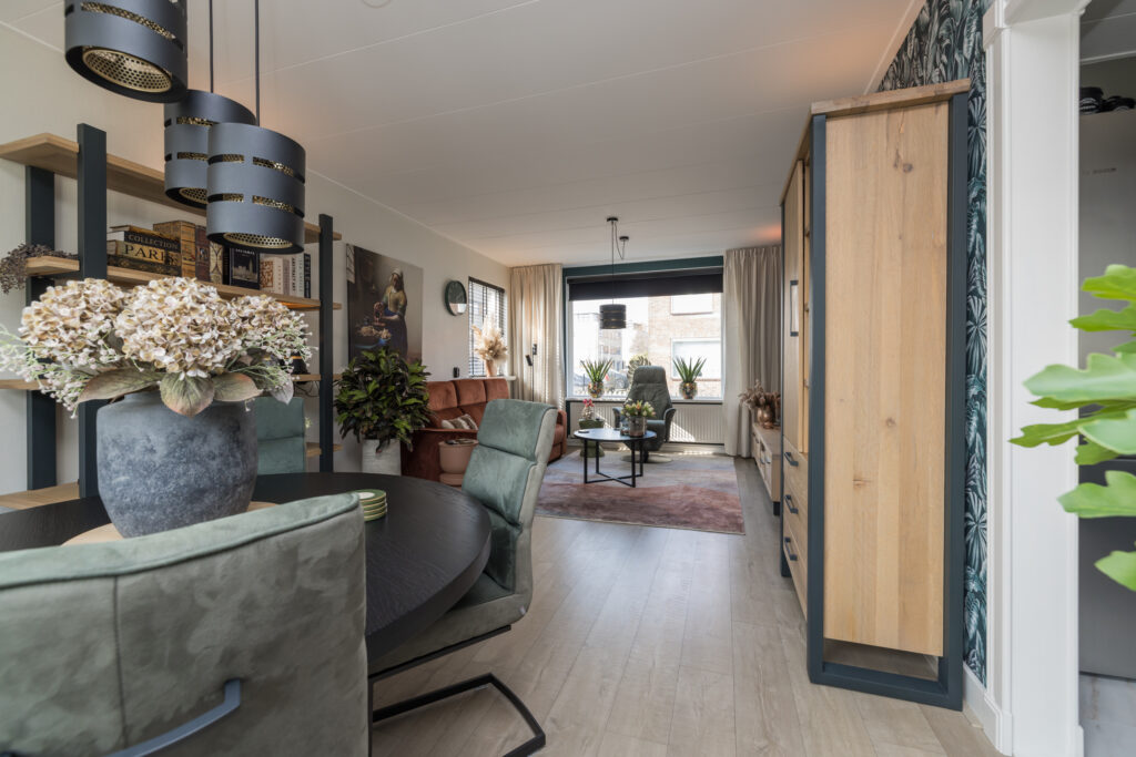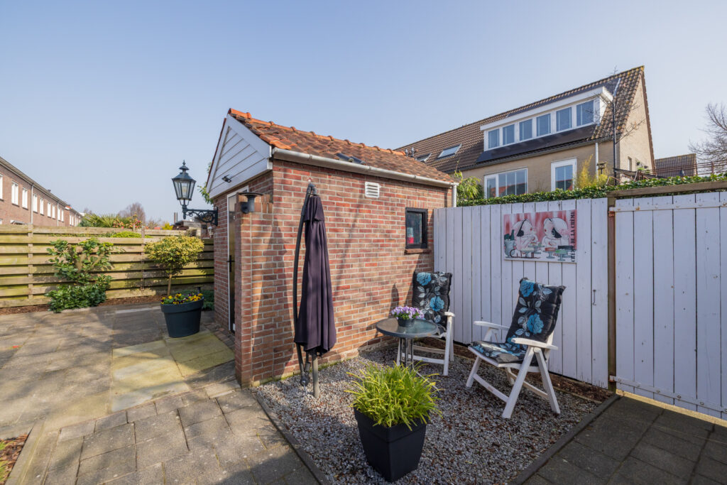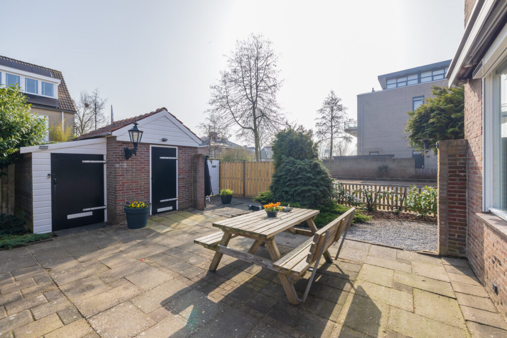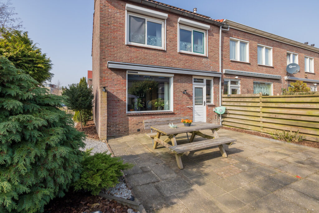 Via de entree kom je in de lichte woonkamer. De ruimtes zijn logisch ingedeeld en makkelijk te gebruiken naar eigen woonwensen. De semi-open keuken ligt aan de achterzijde en is voorzien van inbouwapparatuur. Dankzij de goede lichtinval en nette afwerking voelt de begane grond direct prettig aan. De achtertuin is een van de pluspunten van de woning. Door het bijgekochte extra stuk grond is de tuin aanzienlijk groter dan gemiddeld, perfect voor wie houdt van buitenruimte, speelgelegenheid of meerdere zitplekken. De tuin ligt op het zuidoosten, is goed onderhouden en beschikt over een achterom en een vrijstaande houten berging met elektra.