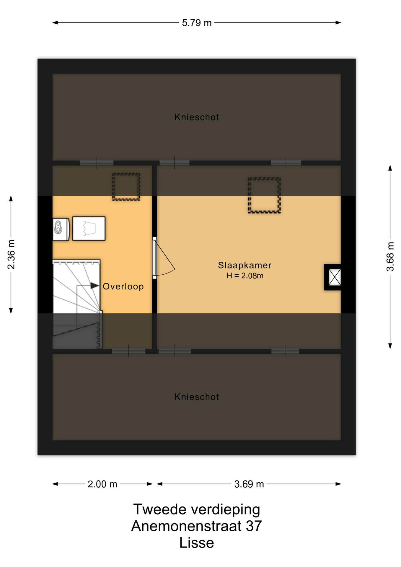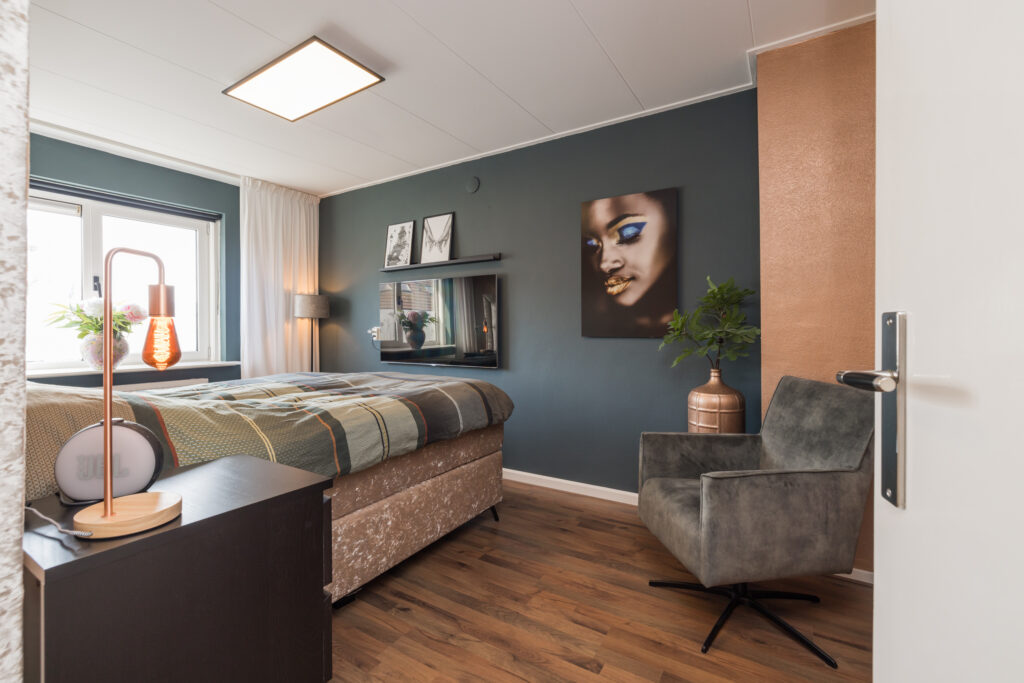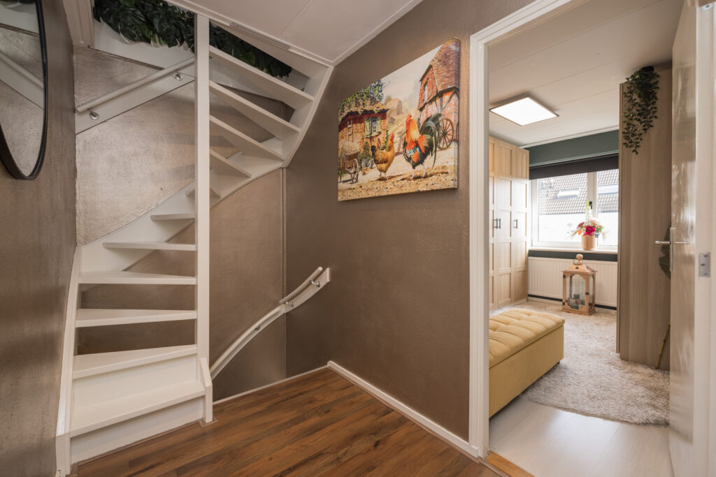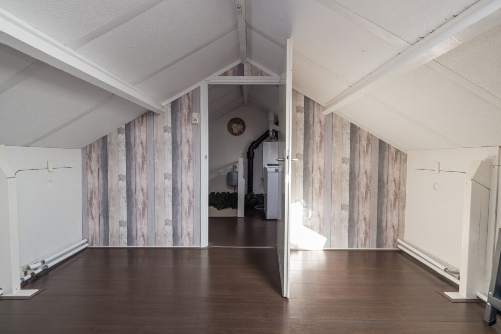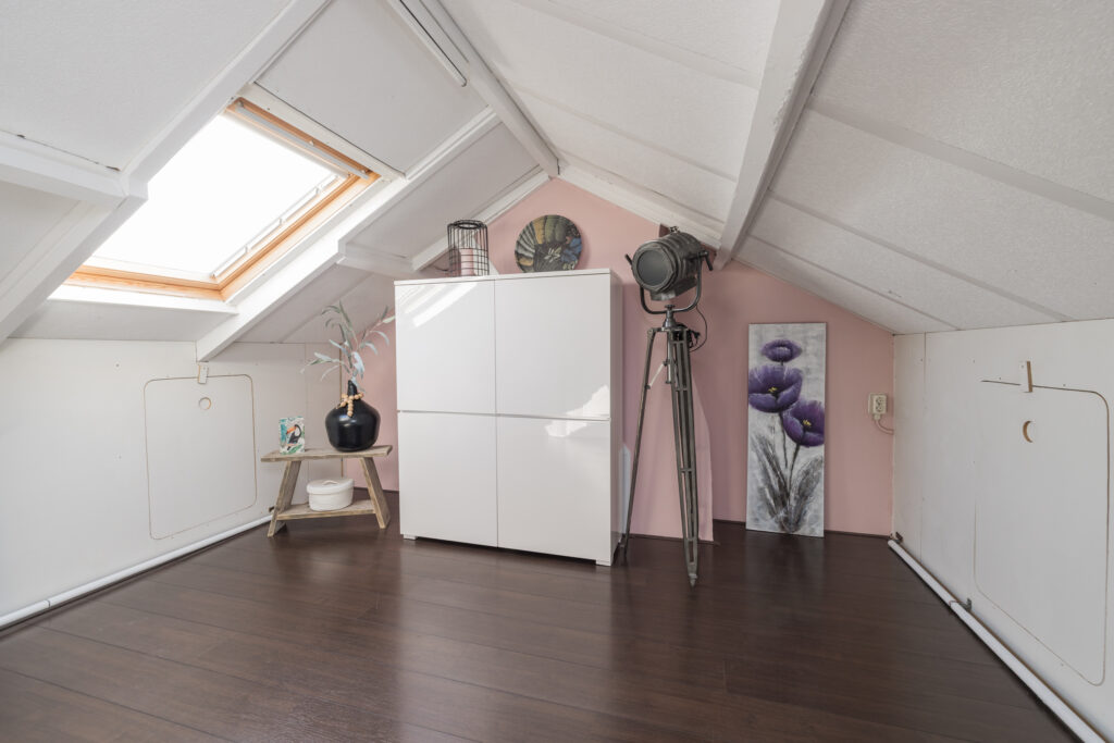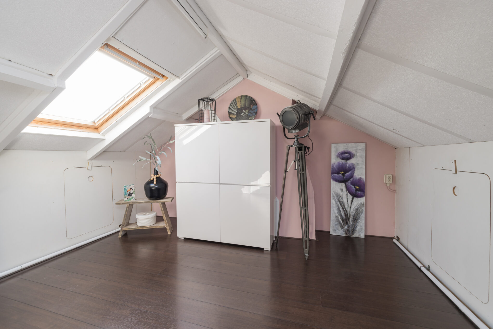 De tweede verdieping biedt een vierde slaapkamer, bereikbaar via een vaste trap. Een ideale plek als extra slaap- of werkkamer, met daarnaast extra bergruimte.
