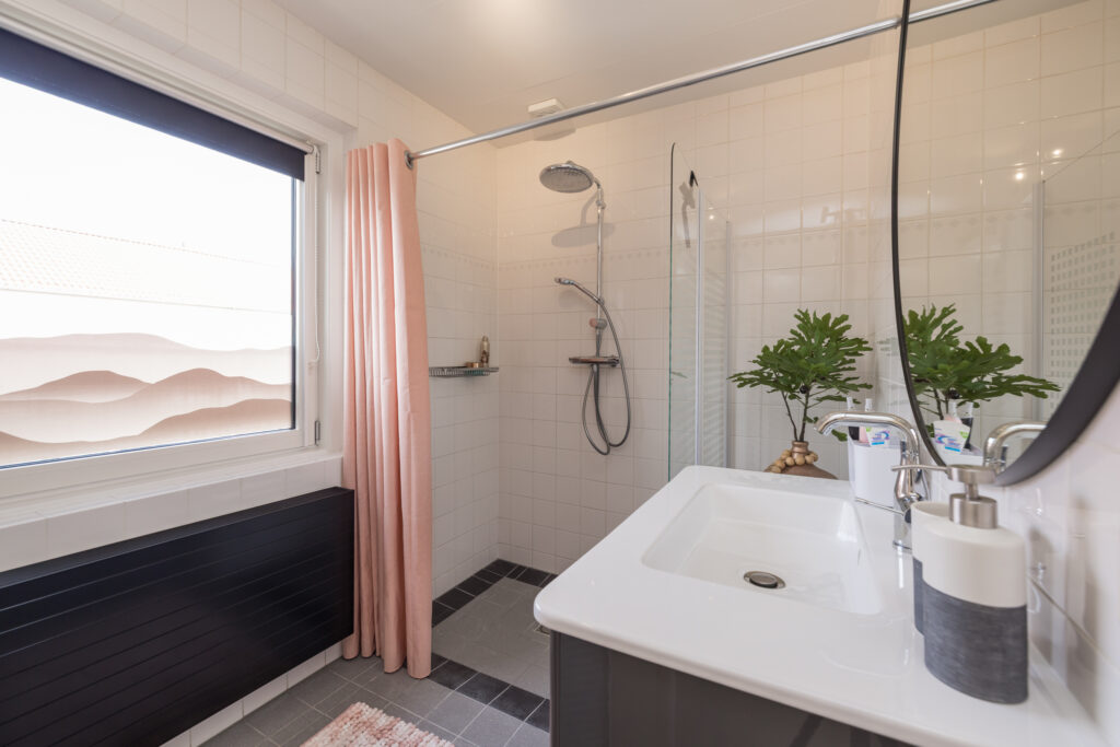 Op de eerste verdieping bevinden zich drie slaapkamers, allemaal van goed bruikbaar formaat. De badkamer is uitgerust met een douche, toilet en wastafelmeubel.