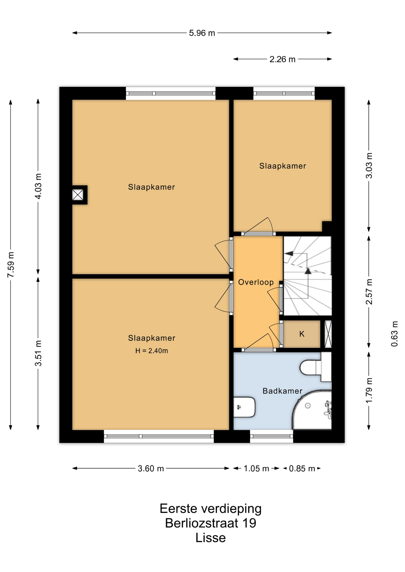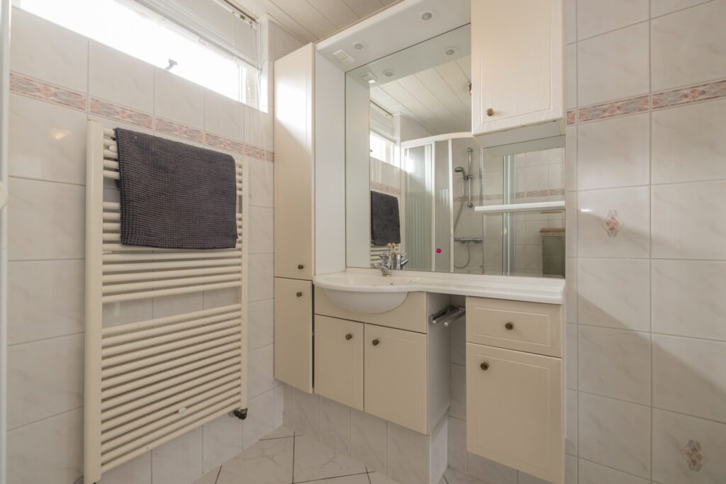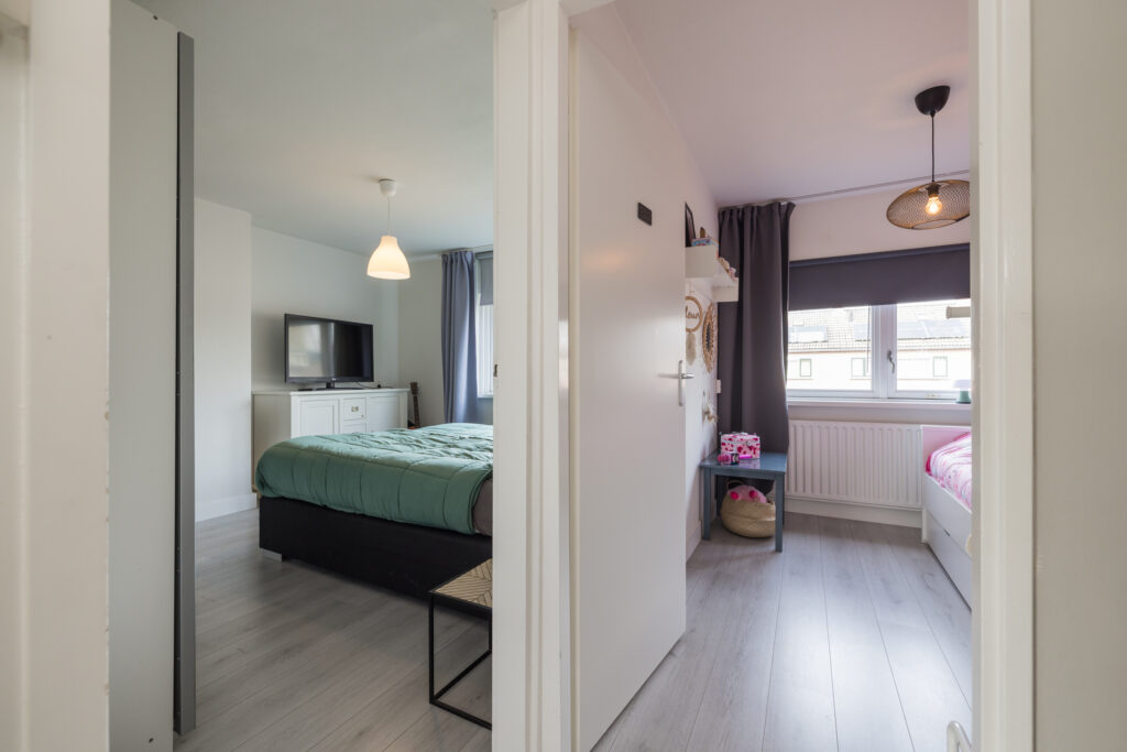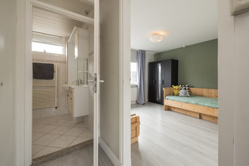 Op de eerste verdieping zijn drie slaapkamers aanwezig: twee aan de achterzijde en één aan de voorzijde. De badkamer ligt aan de voorkant van de woning en is voorzien van een douche en wastafelmeubel. De badkamer is functioneel en biedt een mooie kans om deze naar eigen wens te moderniseren. Goed om te weten: er heeft hier eerder een toilet gezeten – de aansluitingen zijn nog aanwezig, waardoor dit eenvoudig weer te realiseren is.