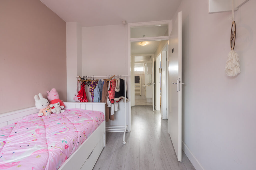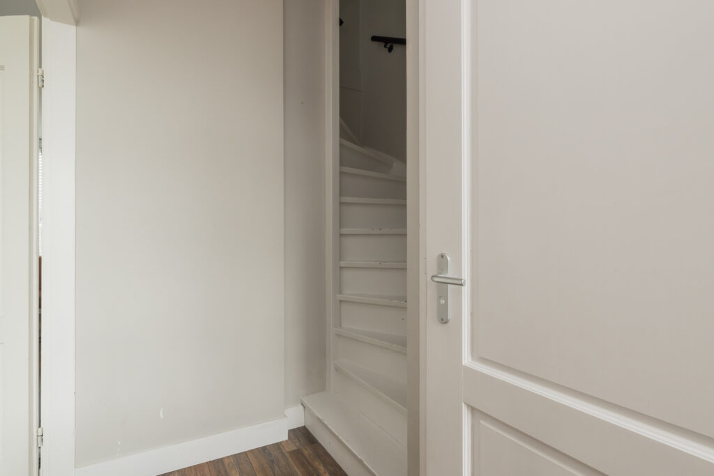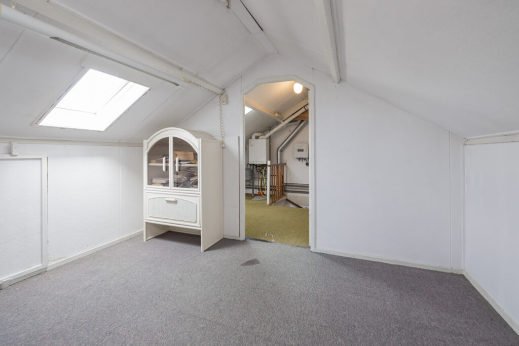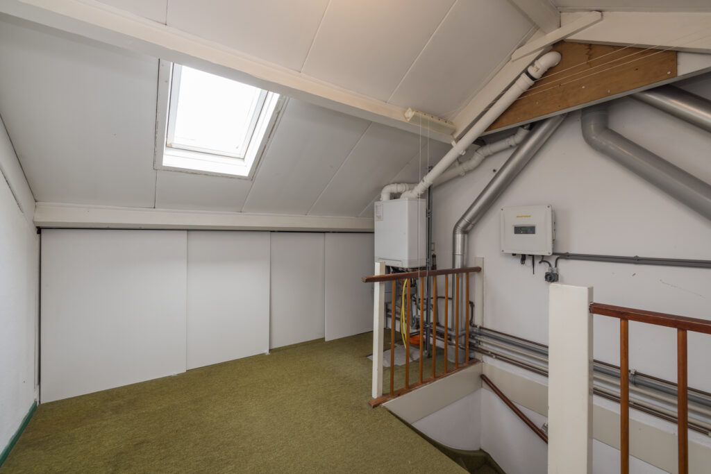 De zolderverdieping bestaat uit een voorzolder met daarachter een afgesloten ruimte. Met het plaatsen van dakkapellen kun je hier een volwaardige extra kamer creëren – een mooie kans om de woning flink te vergroten.