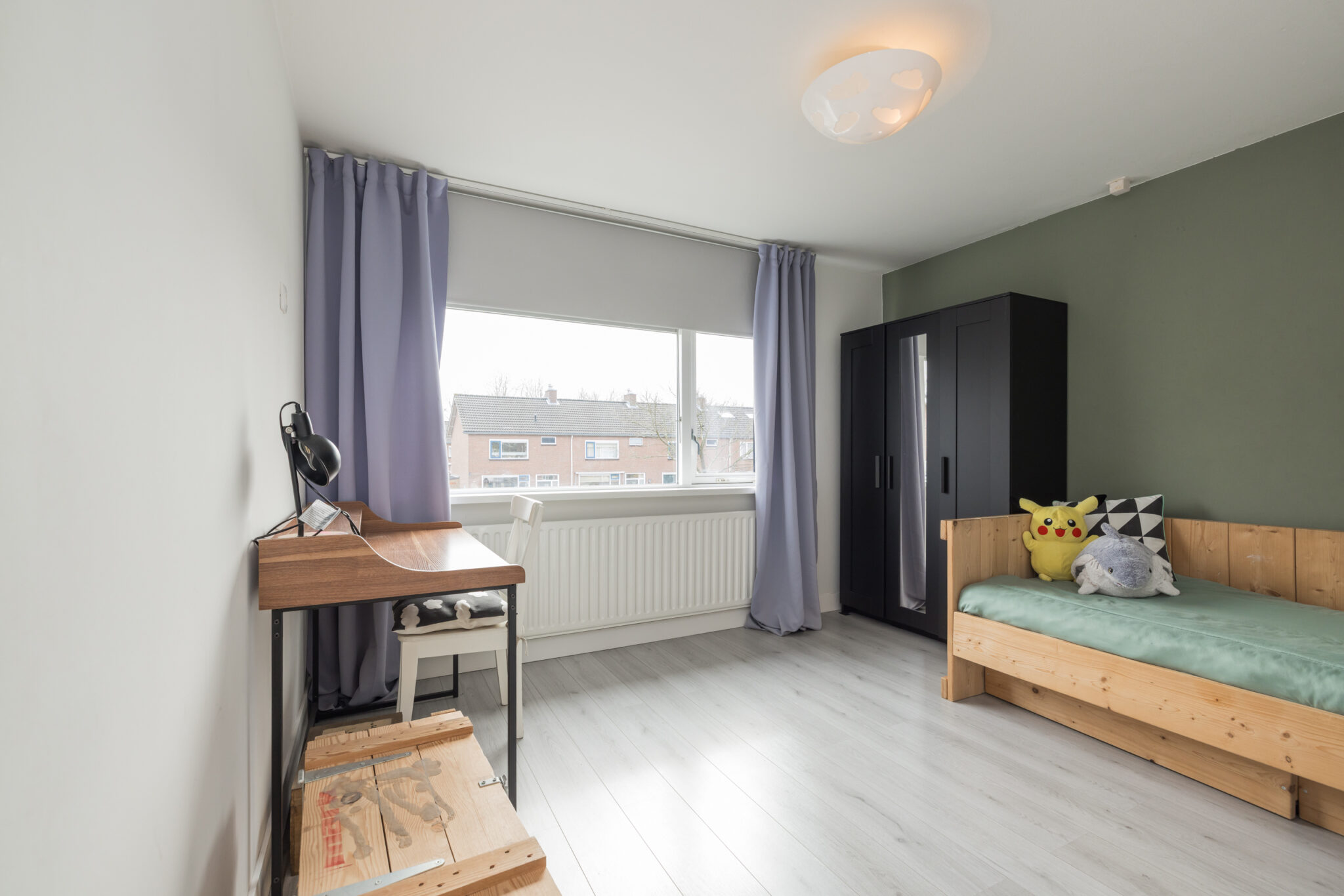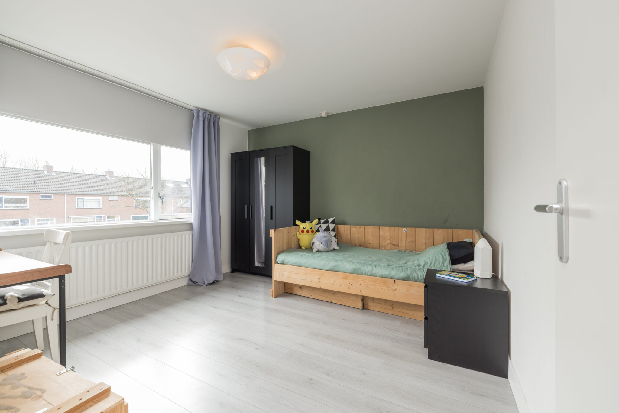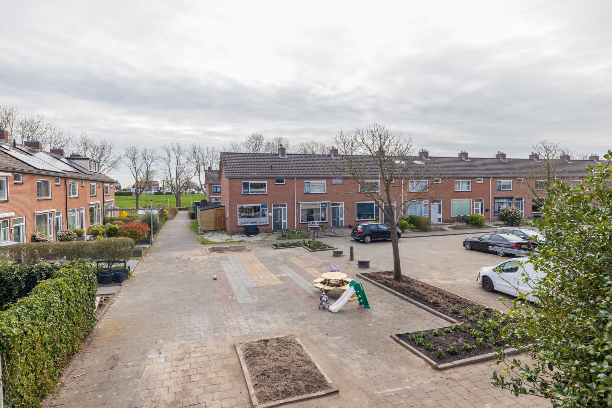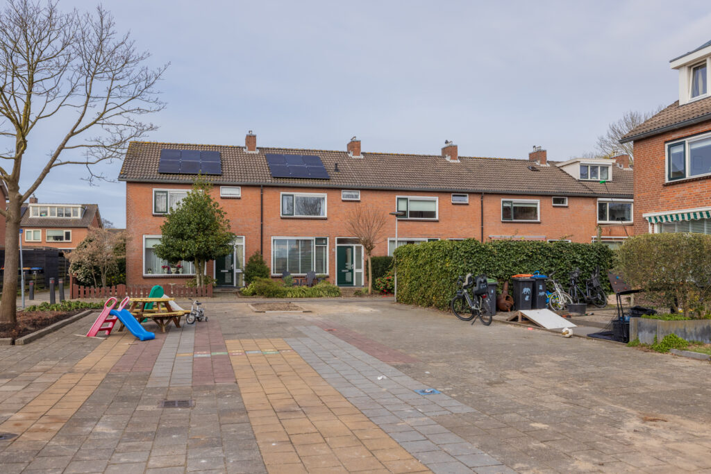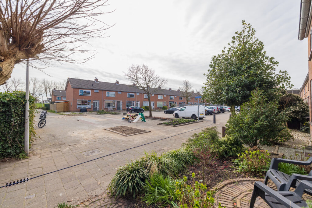 De woning ligt in de kindvriendelijke wijk Poelpolder, in een rustige straat met veel gezinnen. De voortuin grenst direct aan een speelpleintje, wat zorgt voor een vrij en veilig gevoel – je stapt de deur uit zonder direct op de weg te staan.