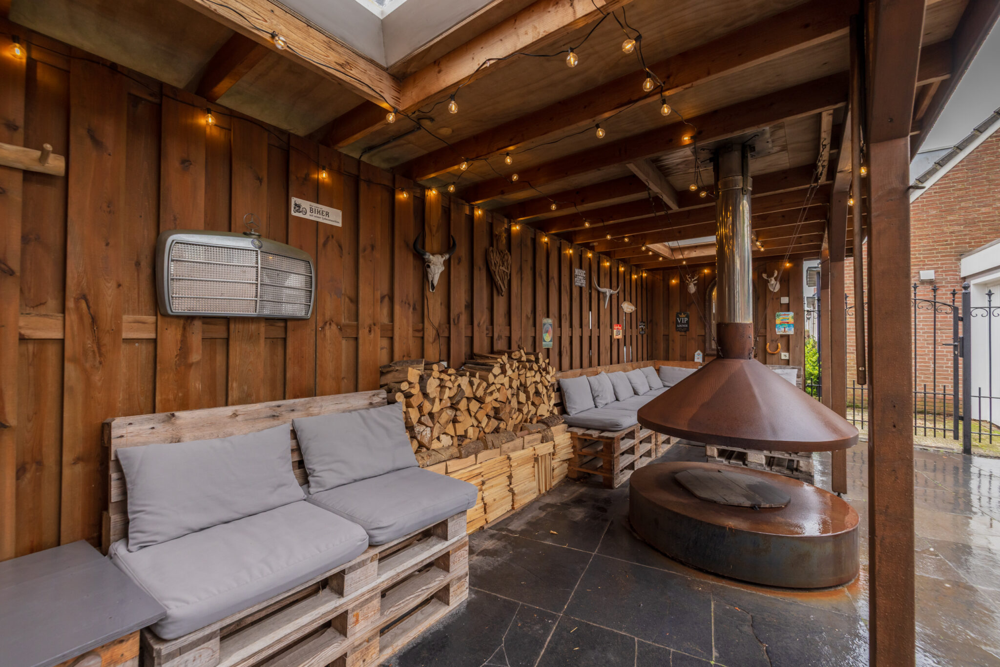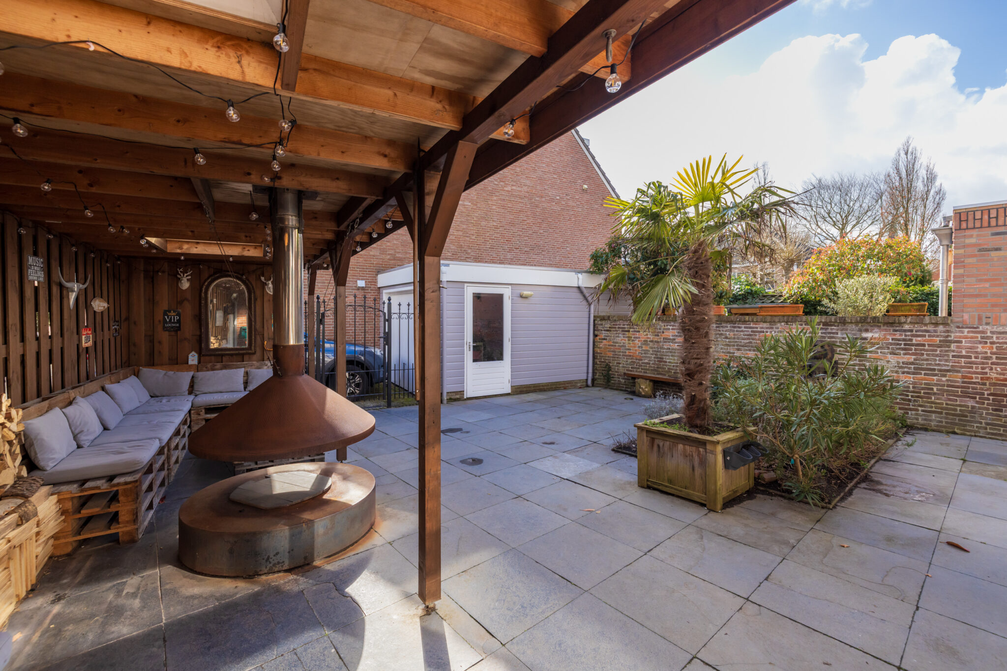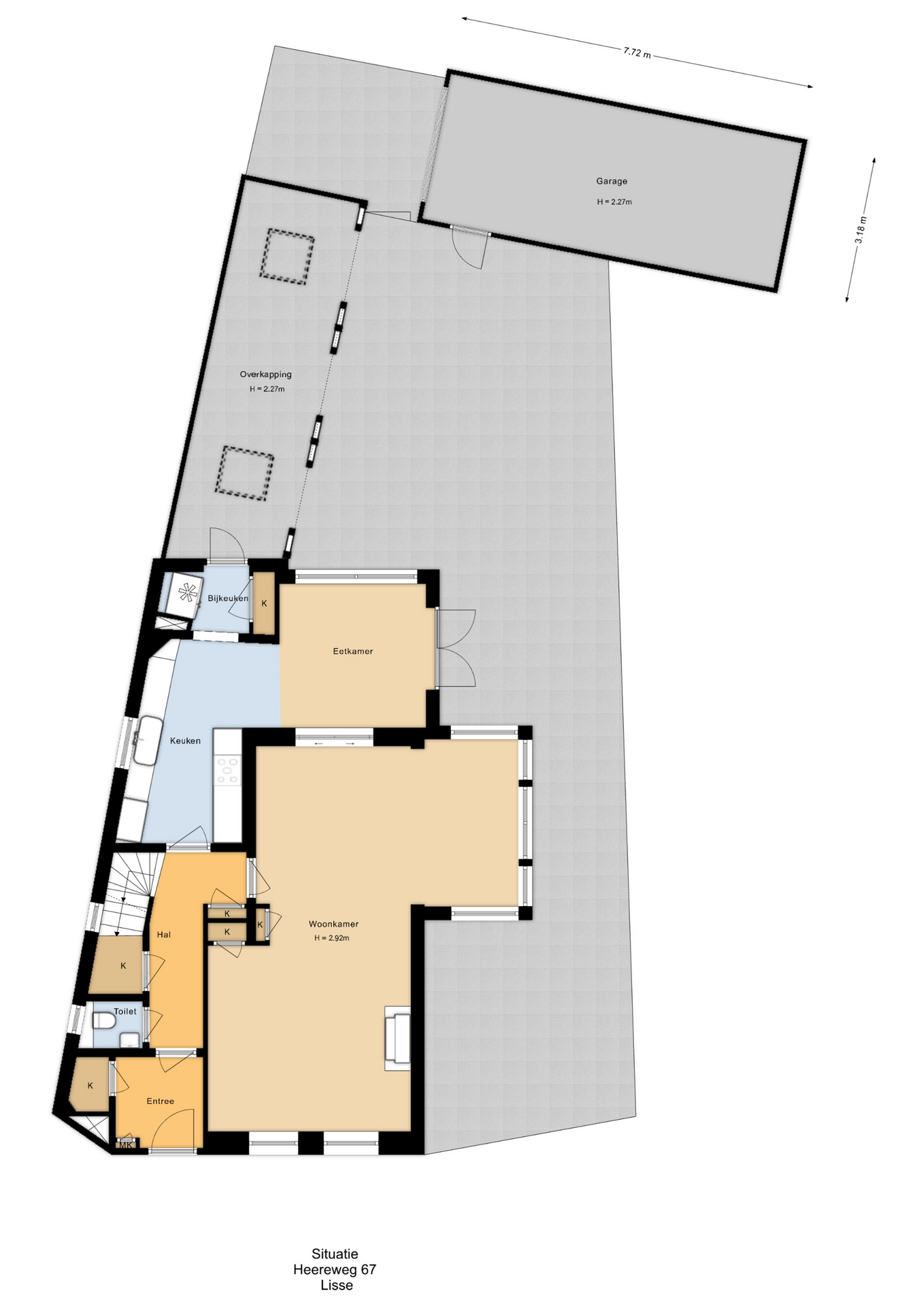 • Grote vrijstaande garage met elektrische deur en elektra;