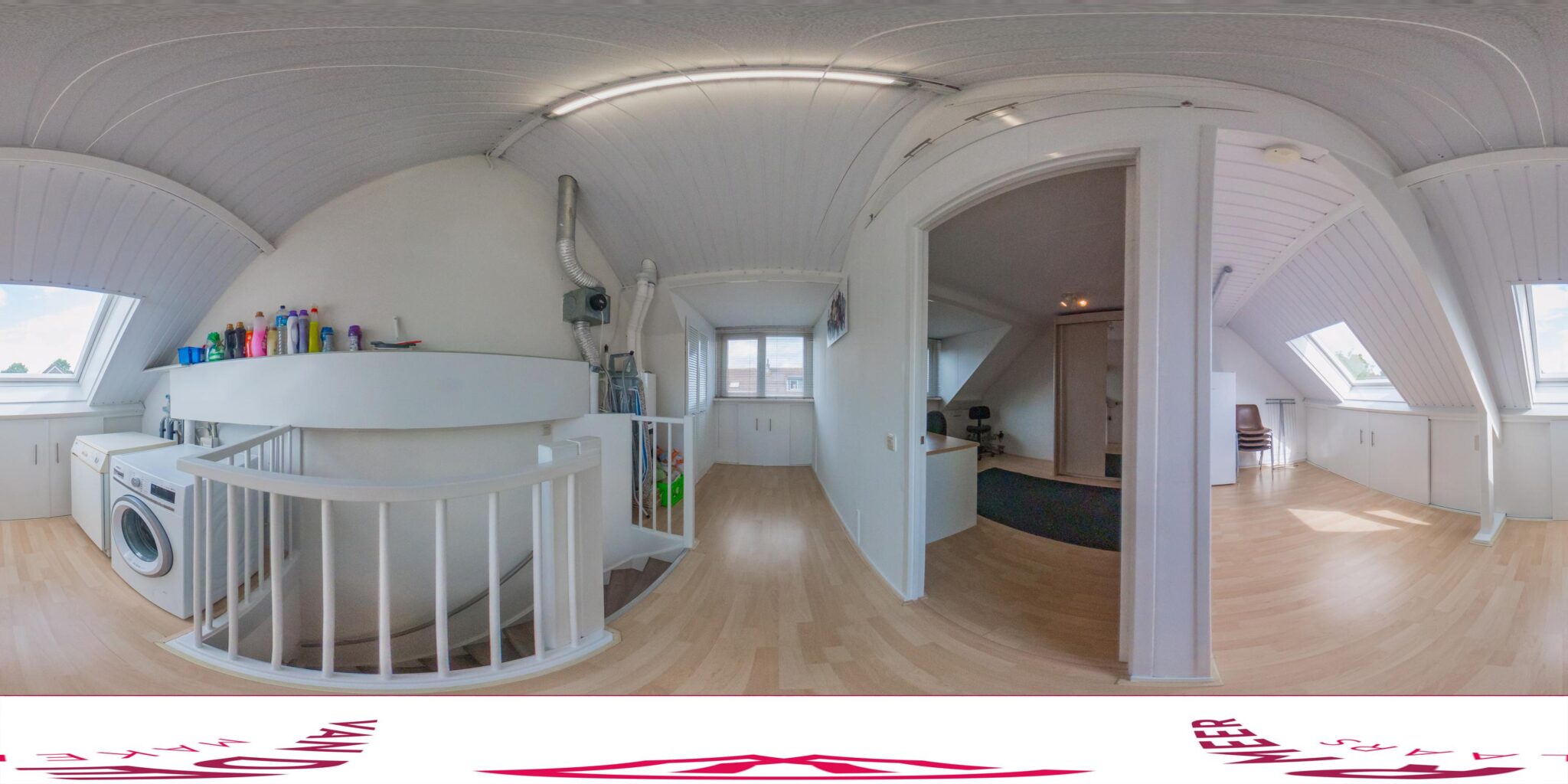 De ruime zolder is voorzien van een dakkapel en twee grote dakramen, met een zolderkamer aan de achterzijde en kastruimte achter knieschotten. Hier bevindt zich ook de cv-ketel (Remeha 2020) en de opstelplaats voor wasmachine en droger. Vanuit de overloop toegang tot de bergruimte boven de zolderkamer. Er bestaat de mogelijkheid tot het plaatsen van een dakkapel aan de voorzijde, waardoor een extra slaap- of werkkamer kan worden gecreëerd.