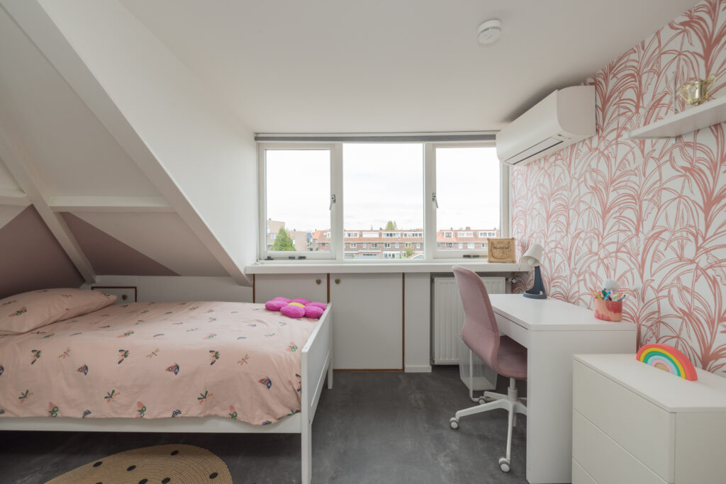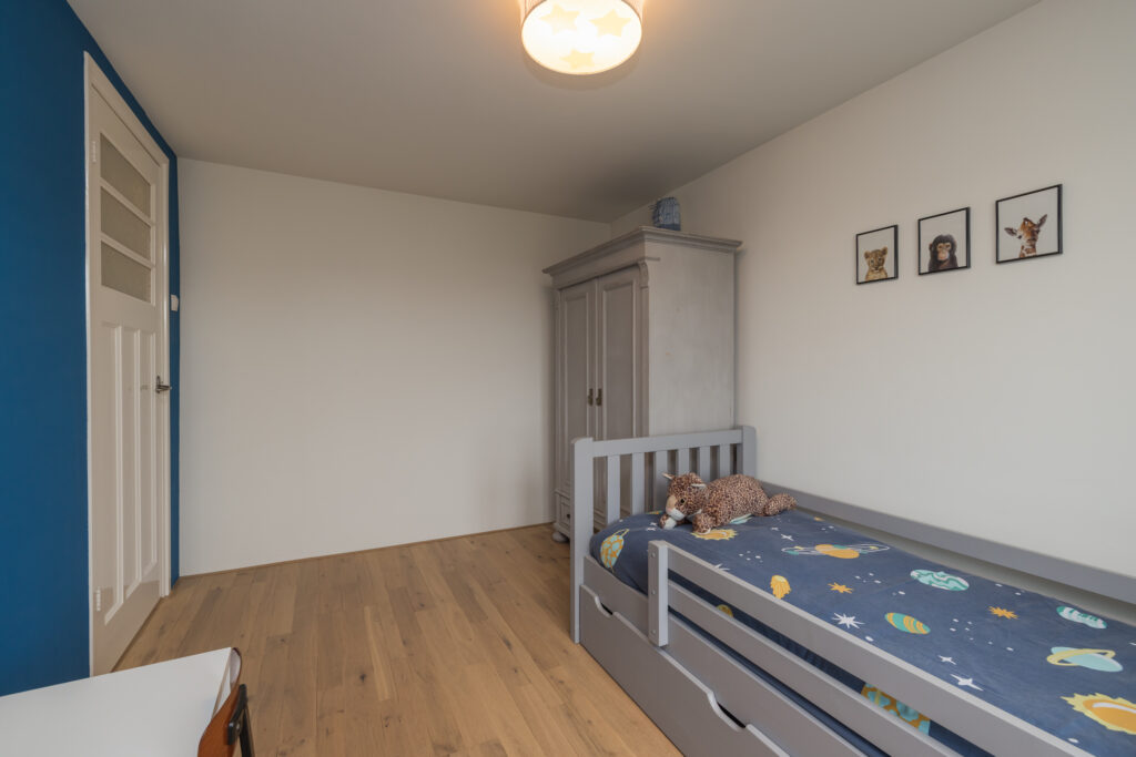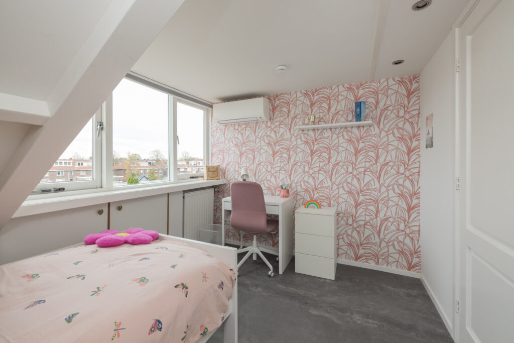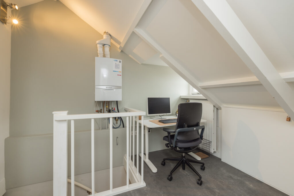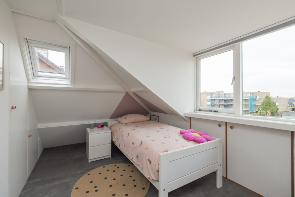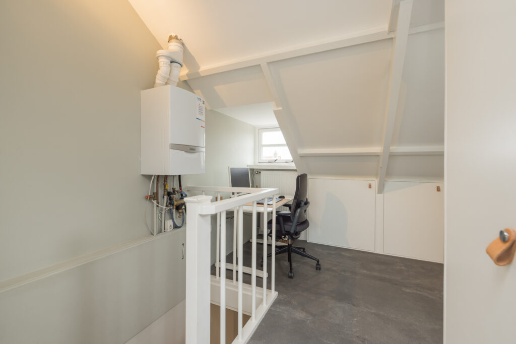 De tweede verdieping biedt extra woonruimte: een overloop met werkplek, een ingebouwde kast (ook bereikbaar vanuit de slaapkamer) en aan de achterzijde een slaapkamer met dakkapel, inclusief airconditioning. Bovendien is deze verdieping voorzien van knieschotten voor extra opbergruimte.