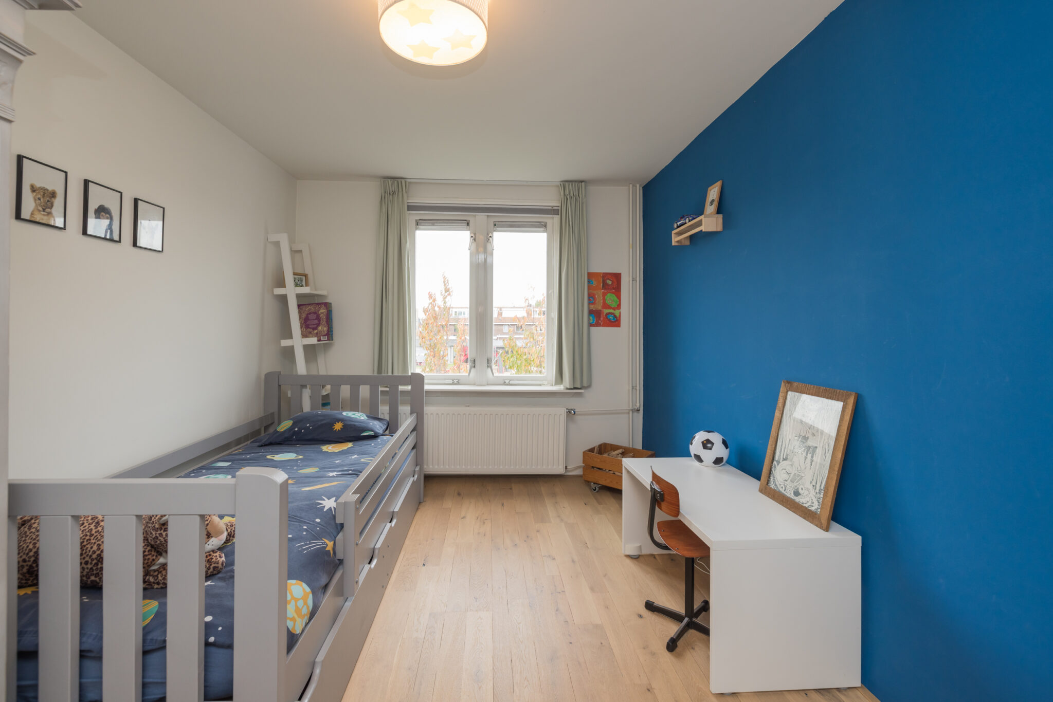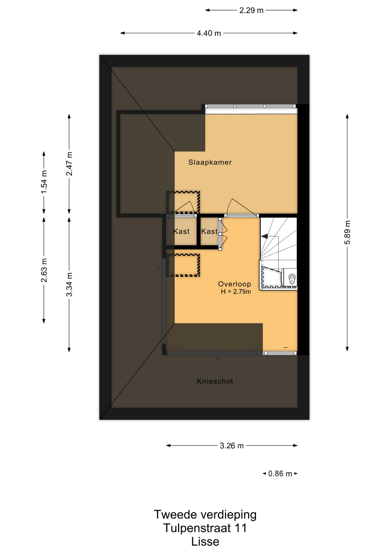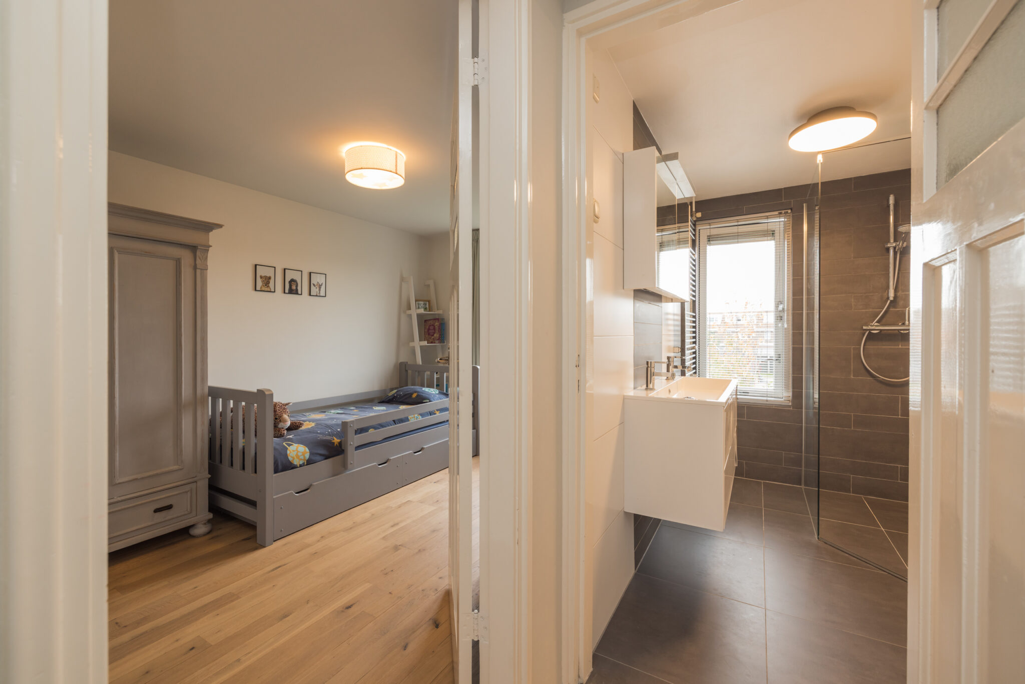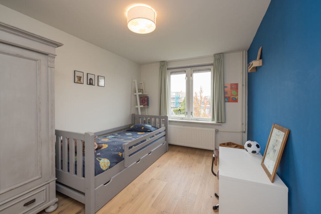 De tweede verdieping biedt extra woonruimte: een overloop met werkplek, een ingebouwde kast (ook bereikbaar vanuit de slaapkamer) en aan de achterzijde een slaapkamer met dakkapel, inclusief airconditioning. Bovendien is deze verdieping voorzien van knieschotten voor extra opbergruimte.