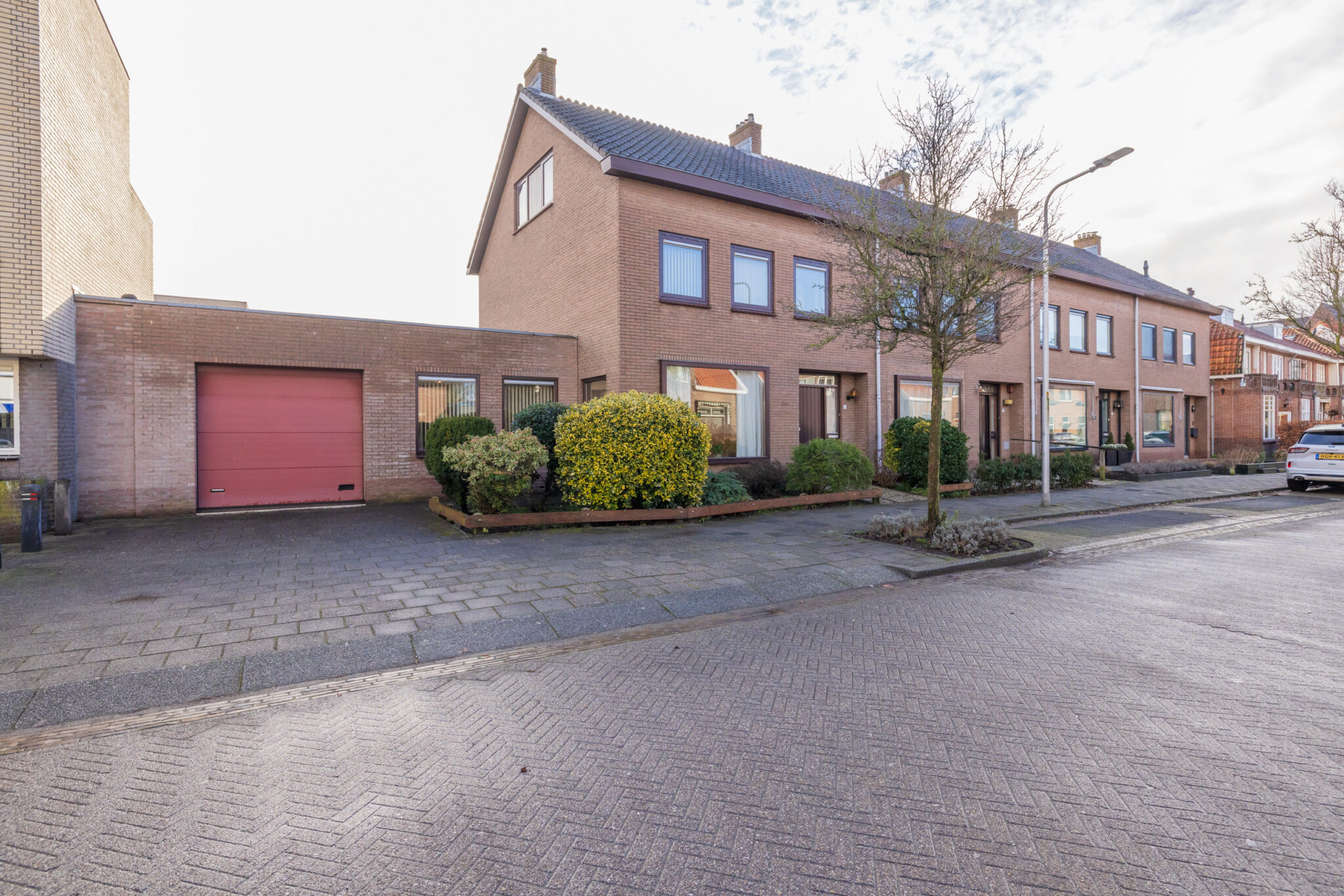 Zeer royale hoekwoning met oprit en garage, en slaapkamer en badkamer op de begane grond.