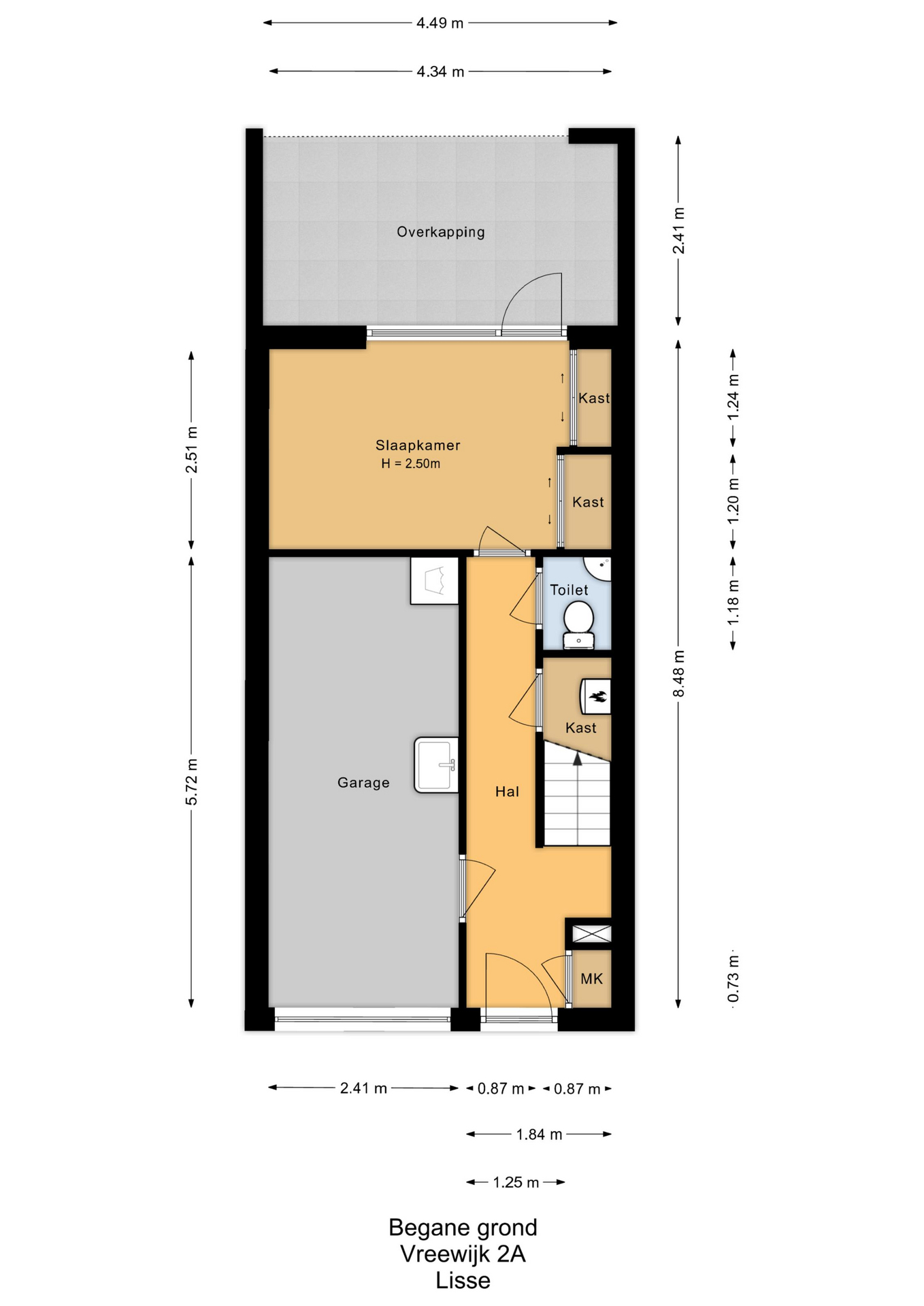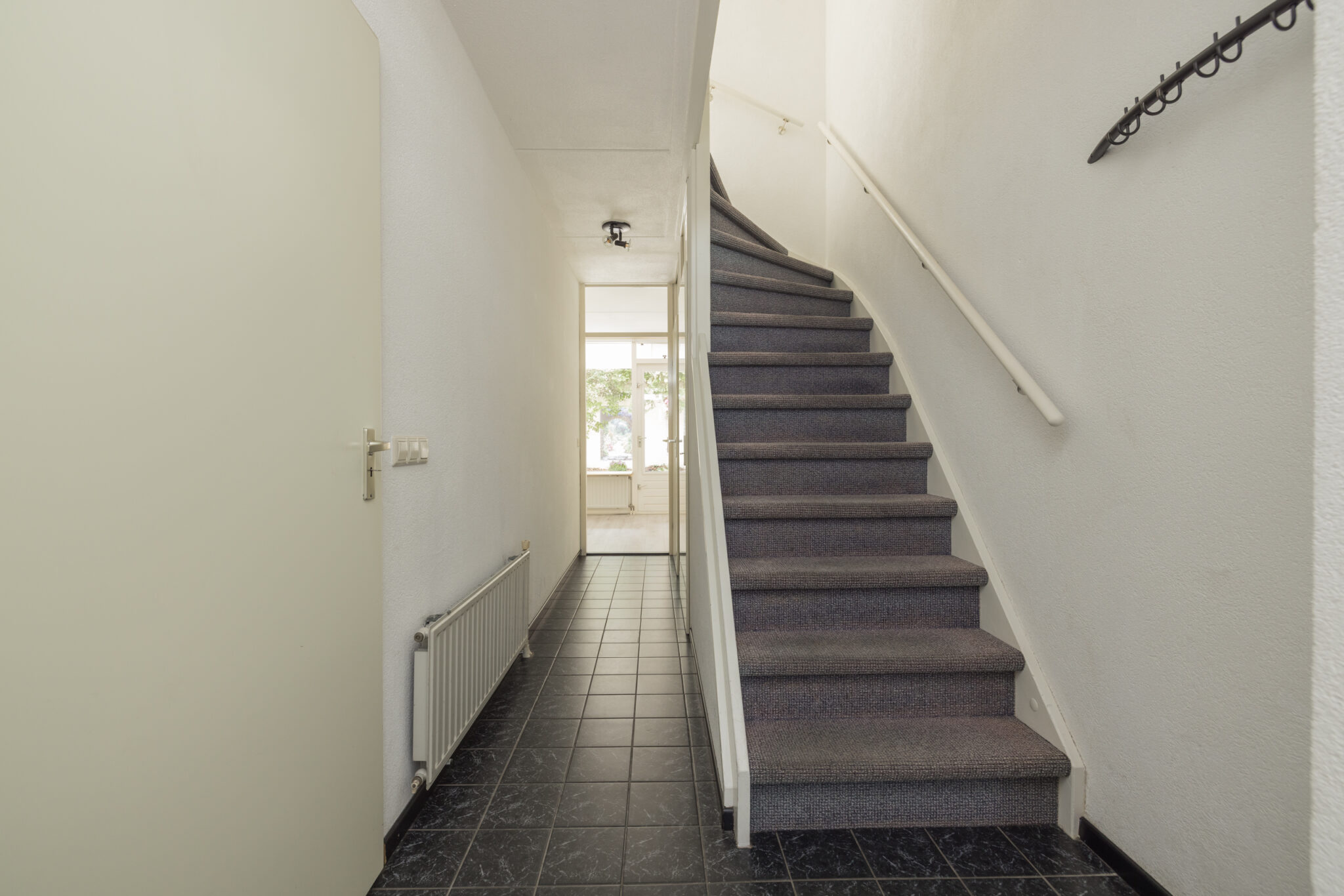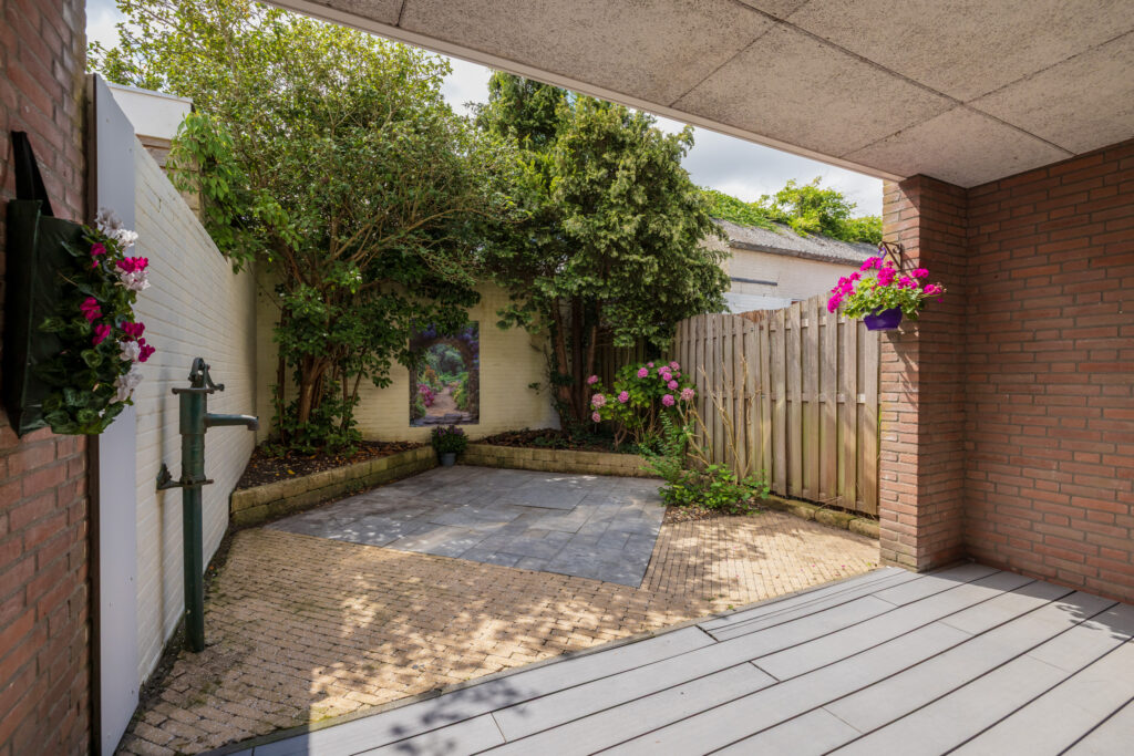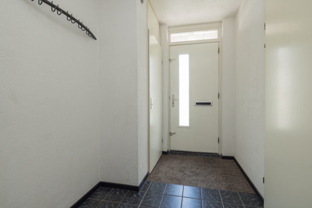 Entree via ruime hal met meterkast, modern toilet, trapkast en toegang tot de grote garage met elektra, wasmachineaansluiting en wastafel. Aan de achterzijde bevindt zich een multifunctionele tuinkamer met vaste kastenwand – perfect als werk-, hobby- of praktijkruimte. Via deze kamer heeft u toegang tot de zonnige en beschutte tuin met een deels overdekt terras.