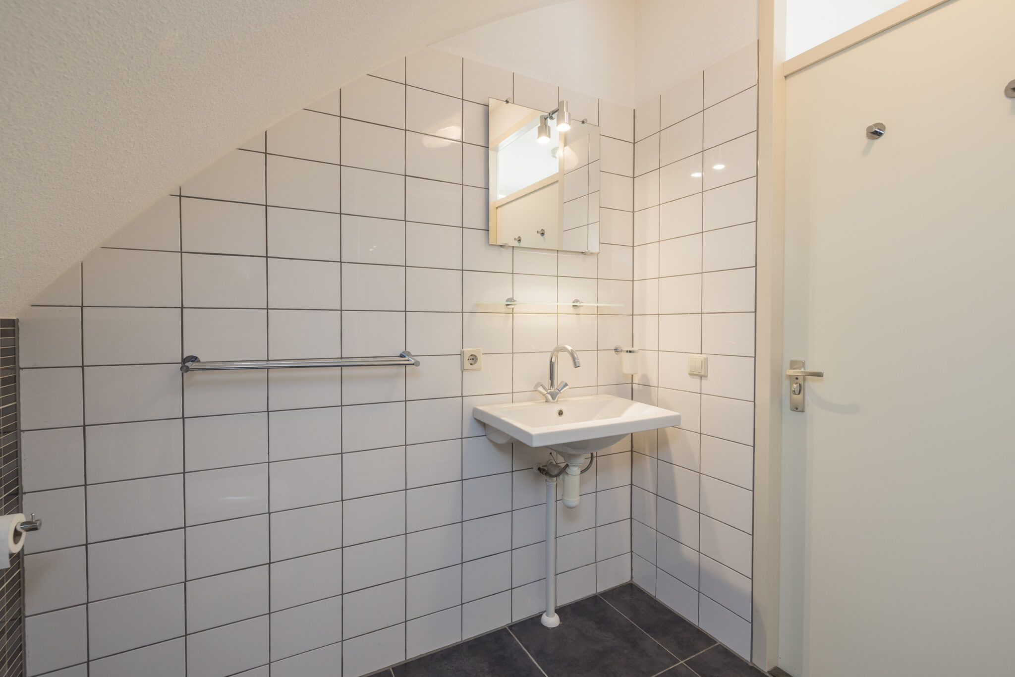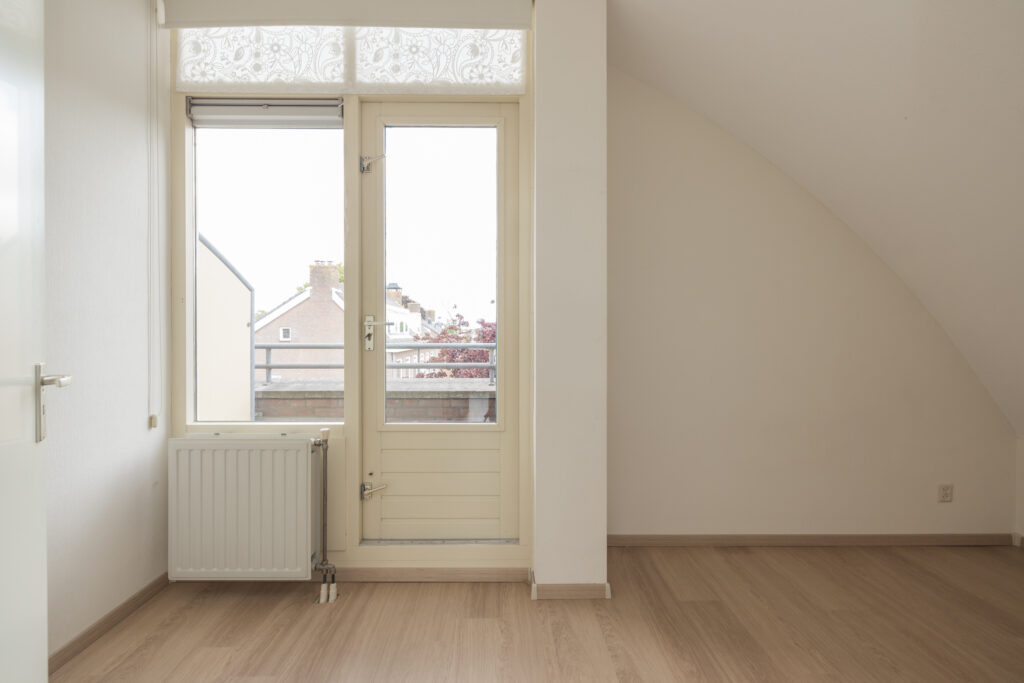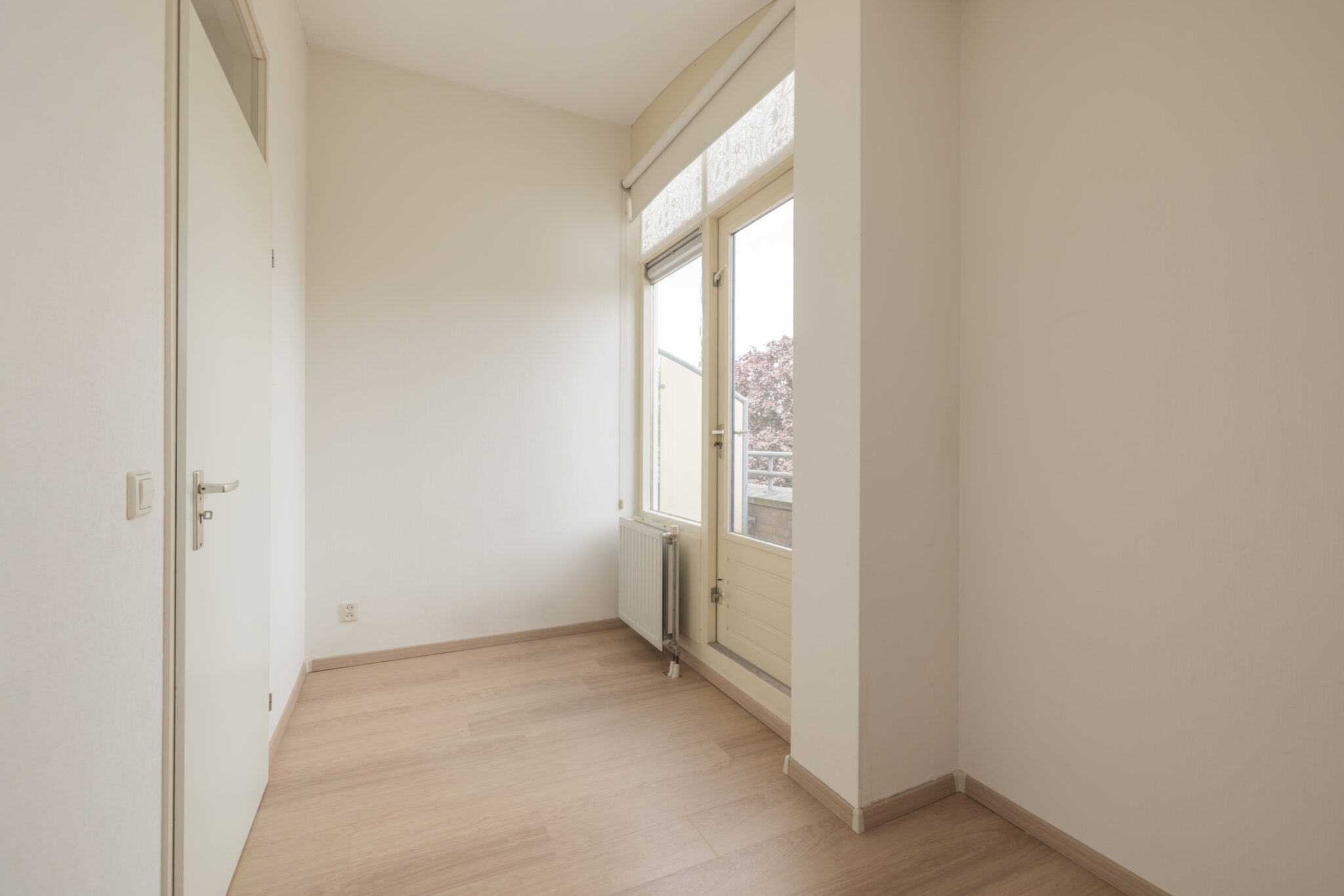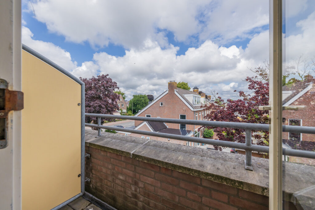 Overloop met luikje naar kleine bergvliering. Ruime hoofdslaapkamer aan de achterzijde, tweede slaapkamer aan de voorzijde met toegang tot een balkon. De nette badkamer beschikt over een douchecabine, tweede toilet en wastafel.