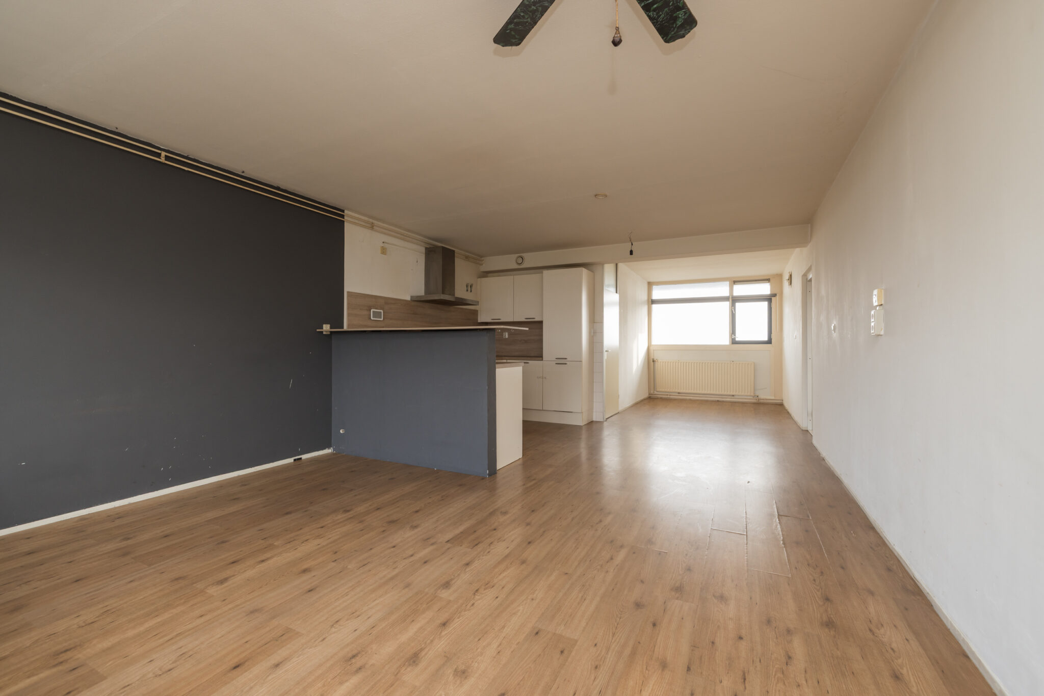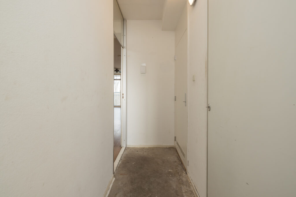 Bij binnenkomst betreed je de hal met meterkast en ruimte voor de cv en mechanische ventilatie, vervolgens loop je door naar de lichte en ruime woonkamer, die dankzij de open opzet eenvoudig is in te richten naar jouw eigen woonstijl. De open keuken bevindt zich in dezelfde ruimte en vormt een fijne basis voor een moderne keukenopstelling. Aangrenzend tref je een separate slaapkamer van goed formaat, met voldoende ruimte voor een comfortabel bed en kastruimte. De badkamer is eveneens apart gelegen en beschikt over de benodigde voorzieningen.