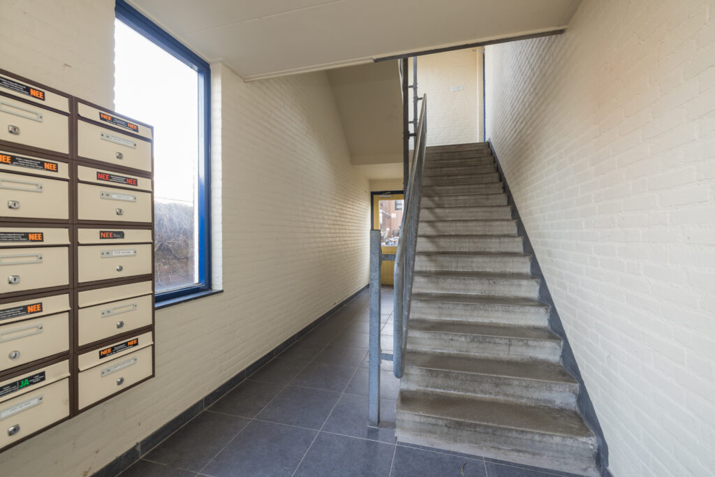 Entree, hal met garderobe, toilet met fonteintje, vaste kast met opstelling c.v. combiketel. Ruime en lichte woonkamer met deur naar het zonnige balkon op het zuiden. Moderne zwarte open keuken in L-opstelling en voorzien van diverse inbouwapparatuur, te weten: inductiekookplaat, afzuigschouw, oven, koelkast, vriezer en vaatwasser. Grote slaapkamer met vaste kastenwand. In lichte kleurstelling betegelde badkamer voorzien van regendouche, wastafelmeubel met spiegelkast, handdoekenradiator en aansluiting wasapparatuur.