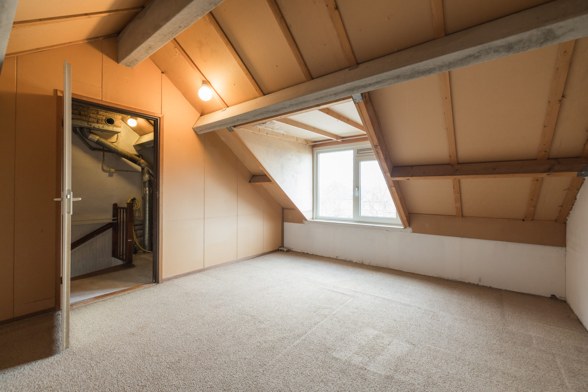 Grote overloop met opstelling cv combiketel (2019). Royale 4e slaapkamer met kunststof dakkapel aan de voorzijde.