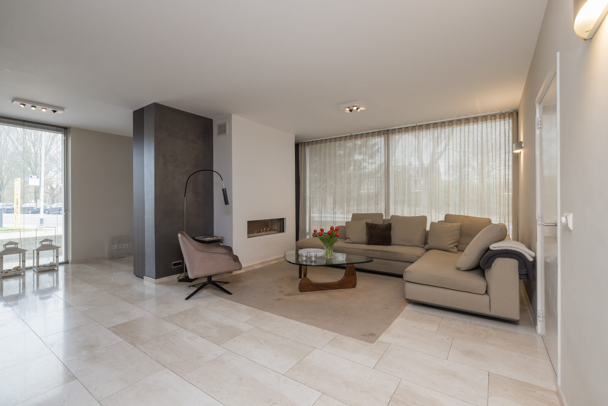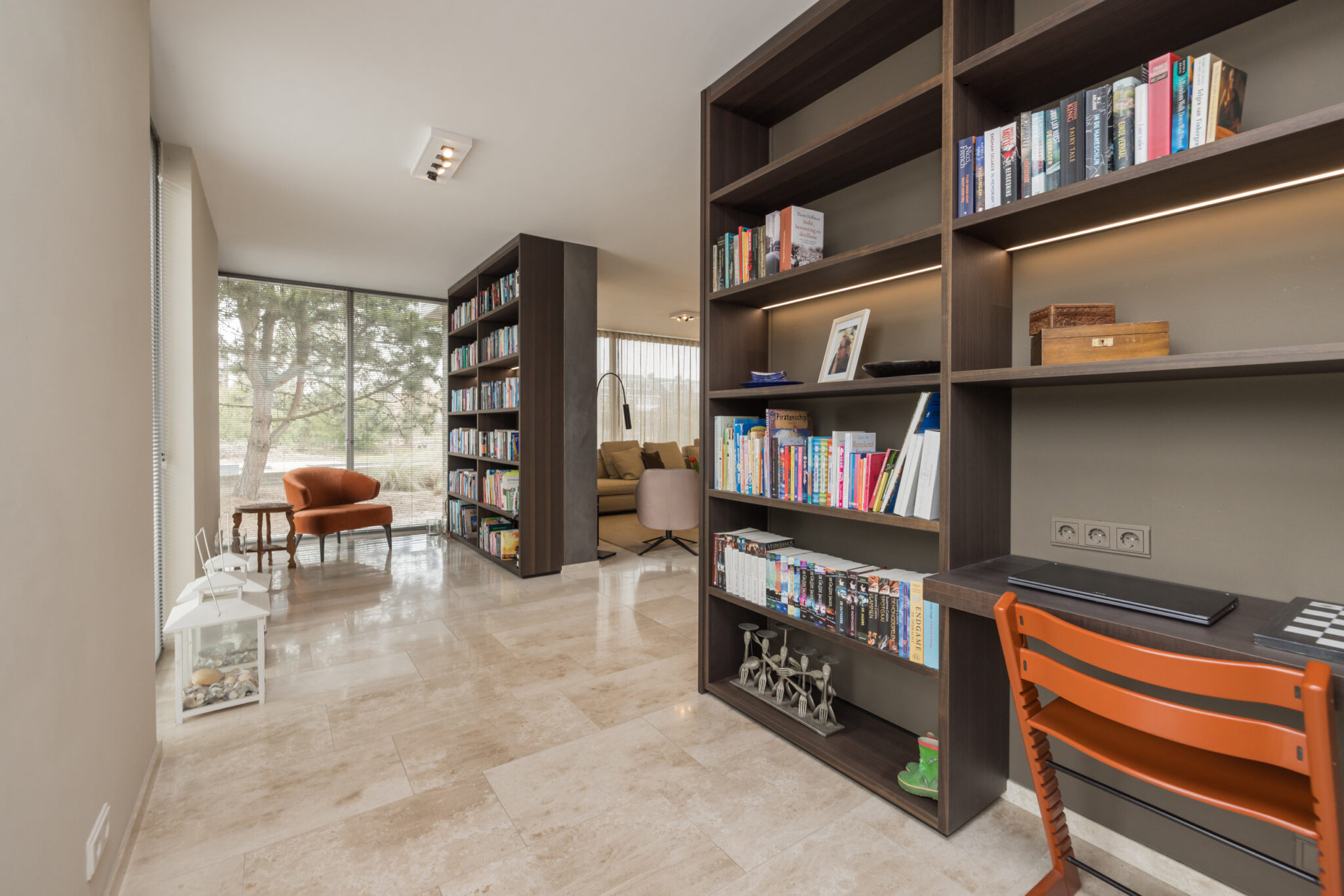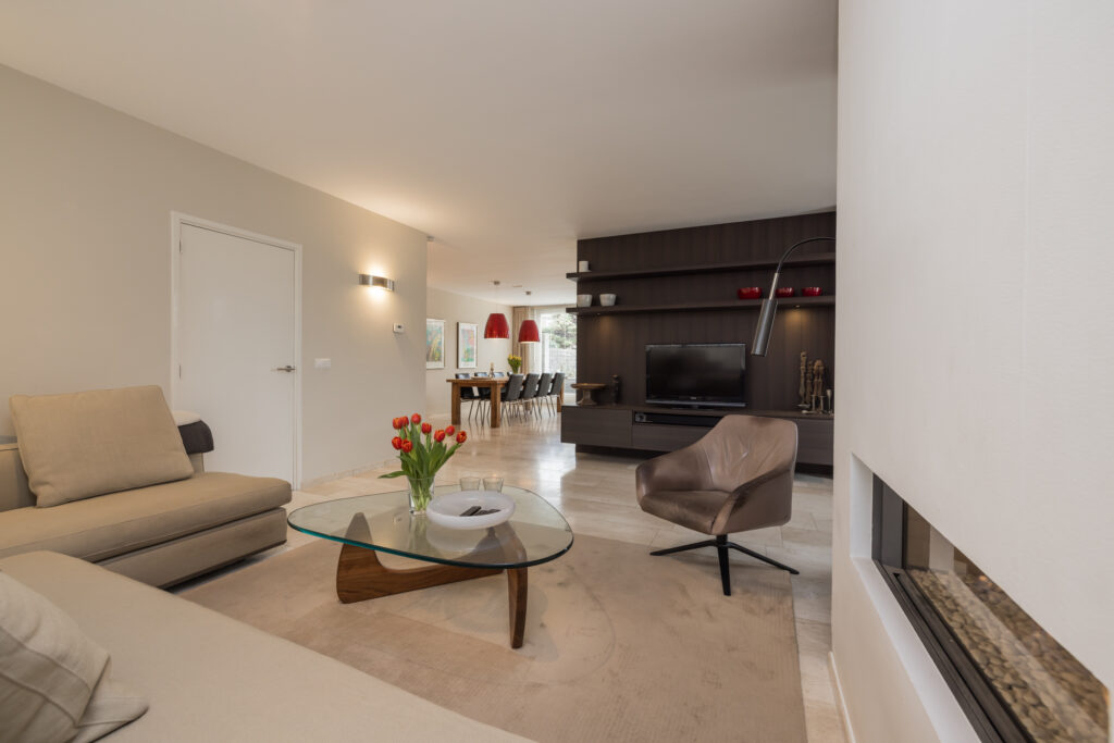 • De begane grond is voorzien van fraaie Travertin vloer met vloerverwarming;