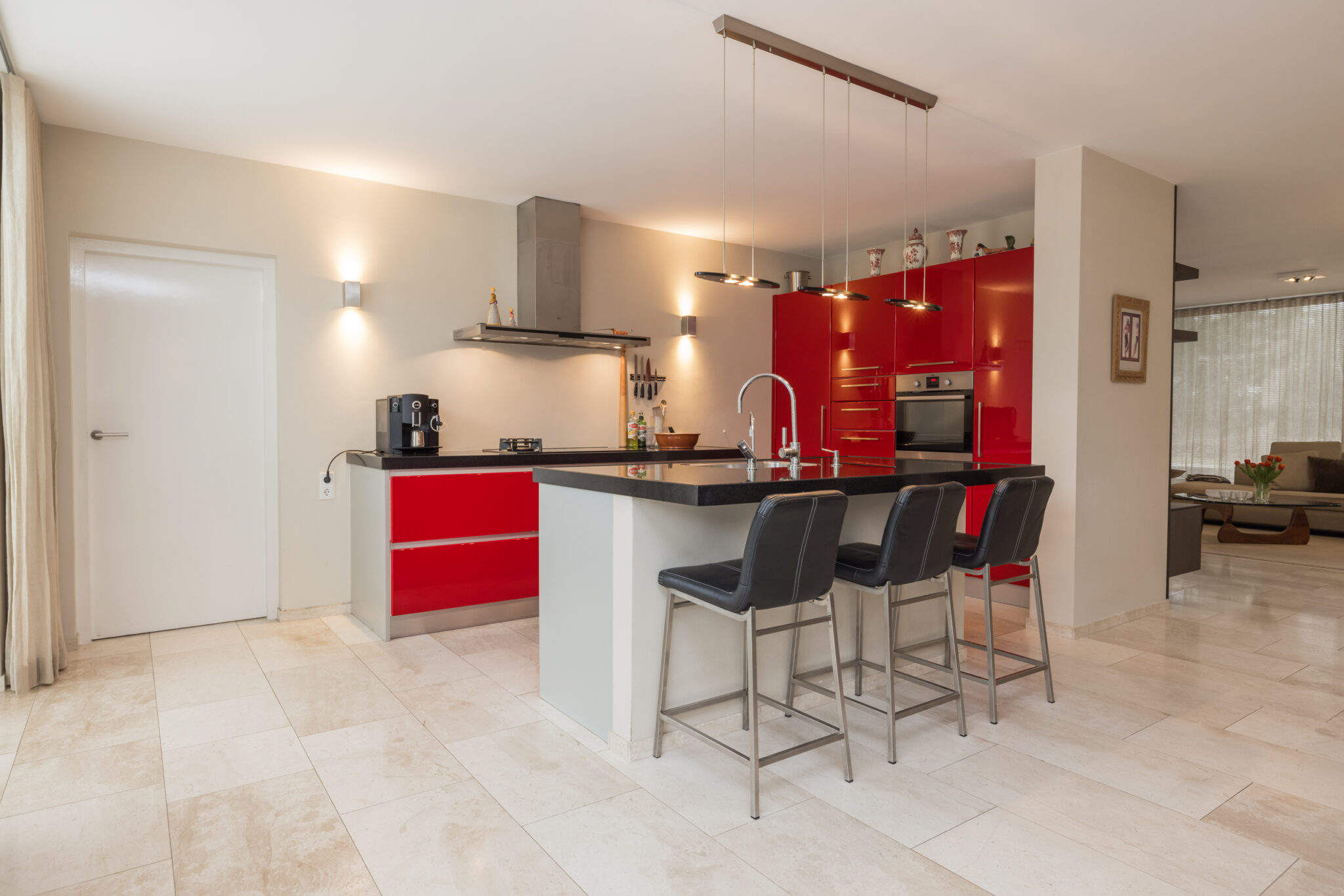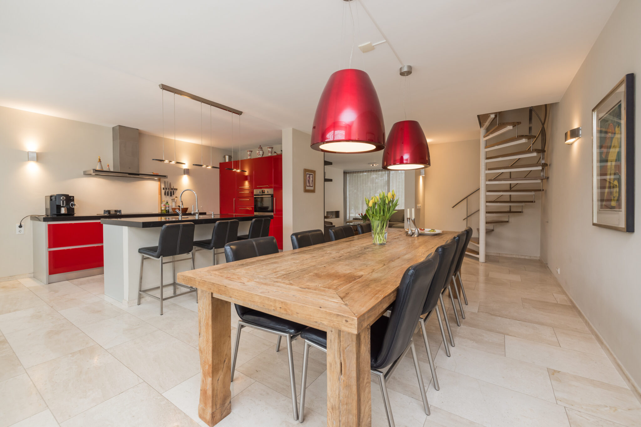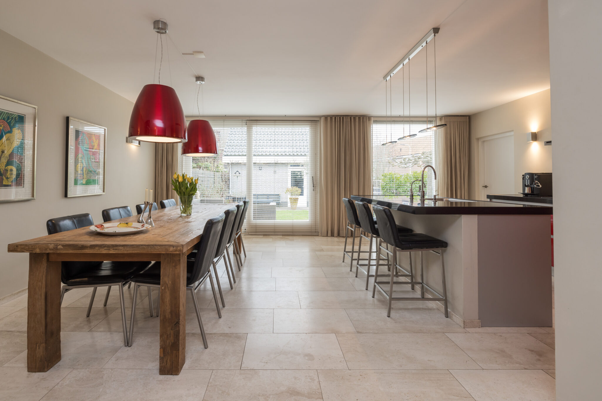 • De begane grond is voorzien van fraaie Travertin vloer met vloerverwarming;