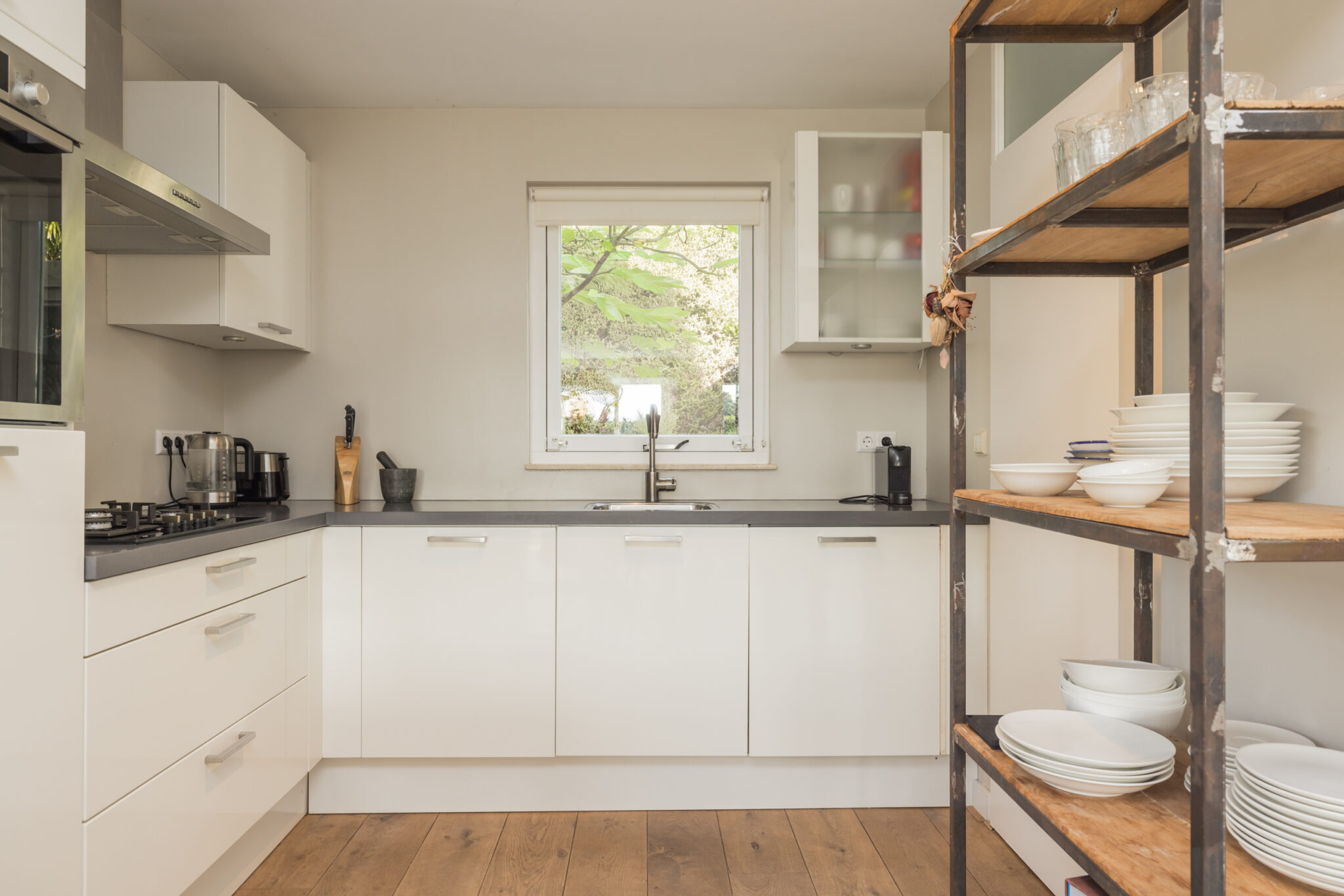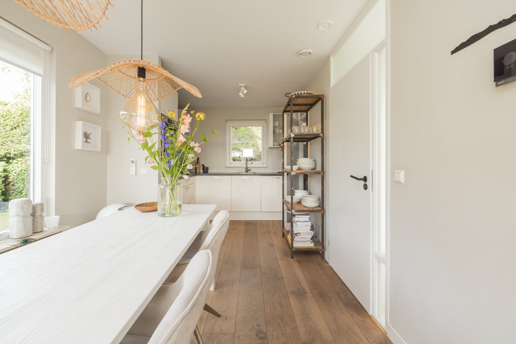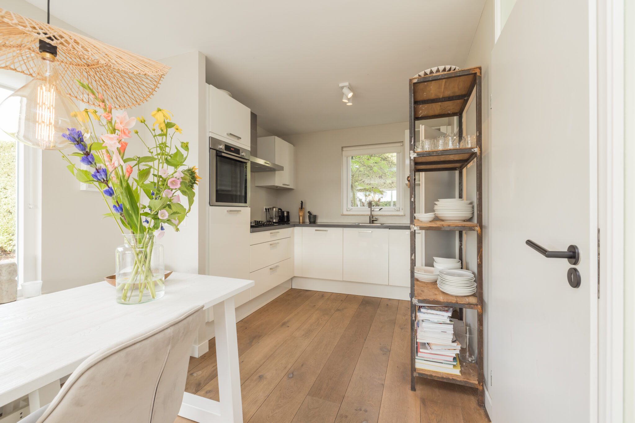 • Eikenhouten vloer met hoge plinten op beide verdiepingen;