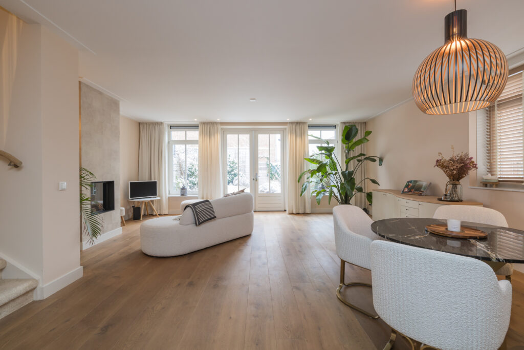 • De begane grond is voorzien van een fraaie houten vloer met vloerverwarming;