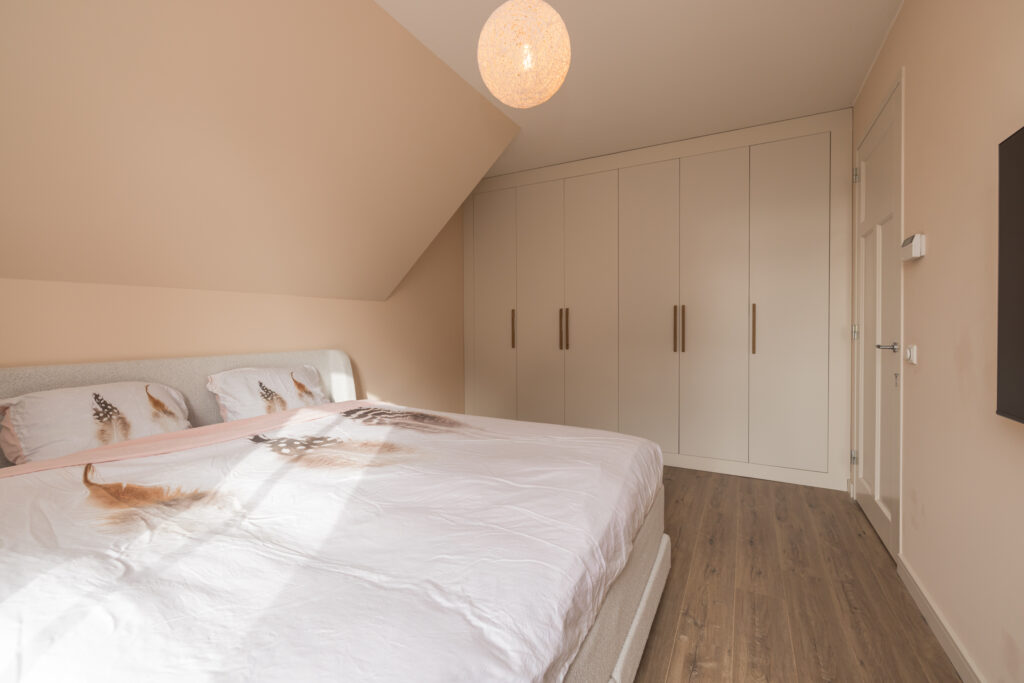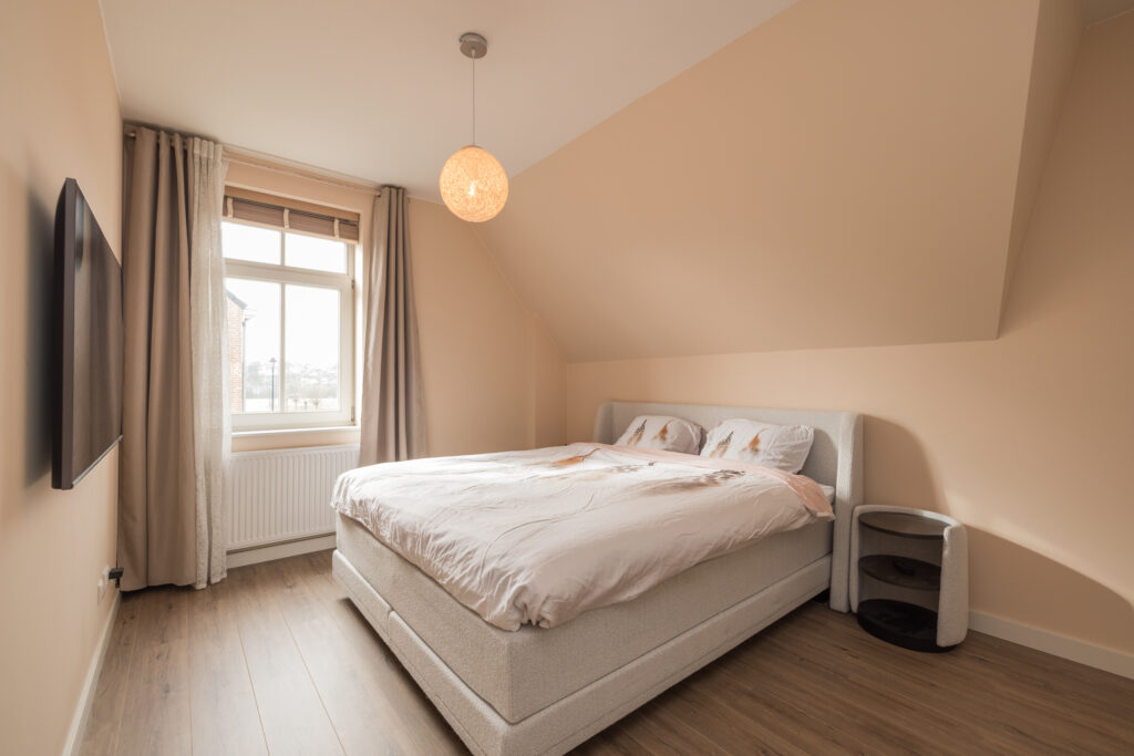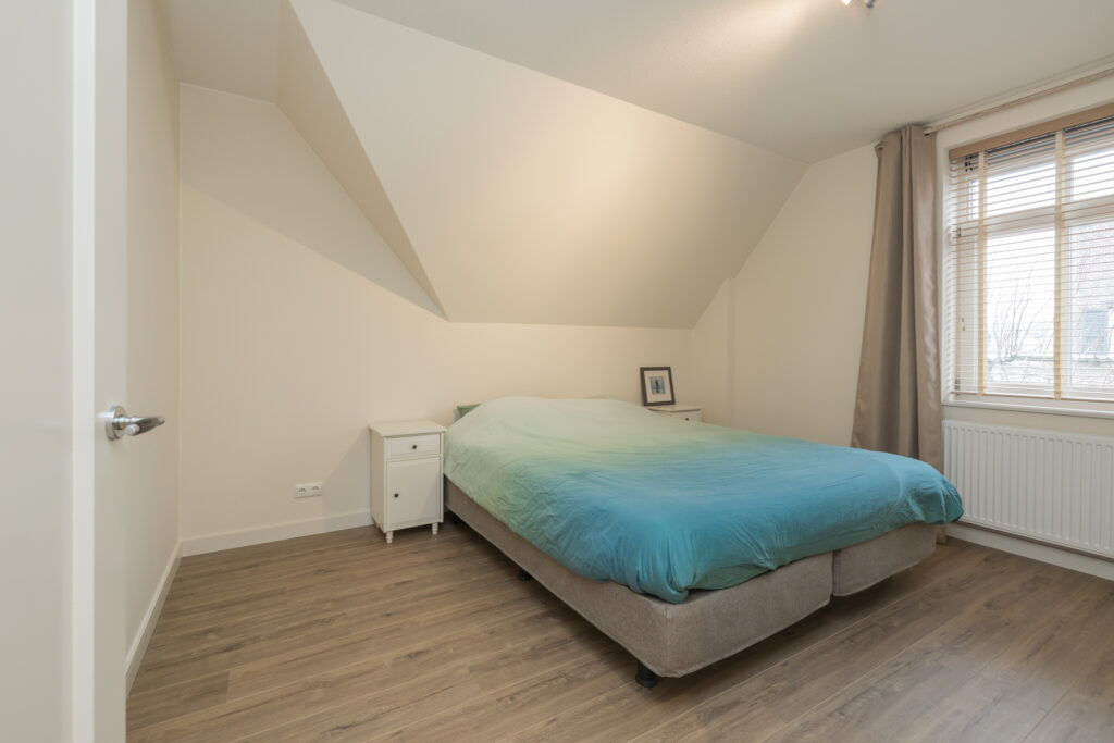 Ruime overloop met vlizotrap naar bergvliering, 1e slaapkamer aan de achterzijde met vaste kastenwand en 2e (ouder)slaapkamer aan de achterzijde met vaste kastenwand. 3e en 4e slaapkamer aan de voorzijde en moderne badkamer met ligbad, inloopdouche en wastafelmeubel. Grote berging met aansluiting voor wasapparatuur en opstelling c.v. combiketel (Intergas, 2019). Toiletruimte met wandcloset en fonteintje.