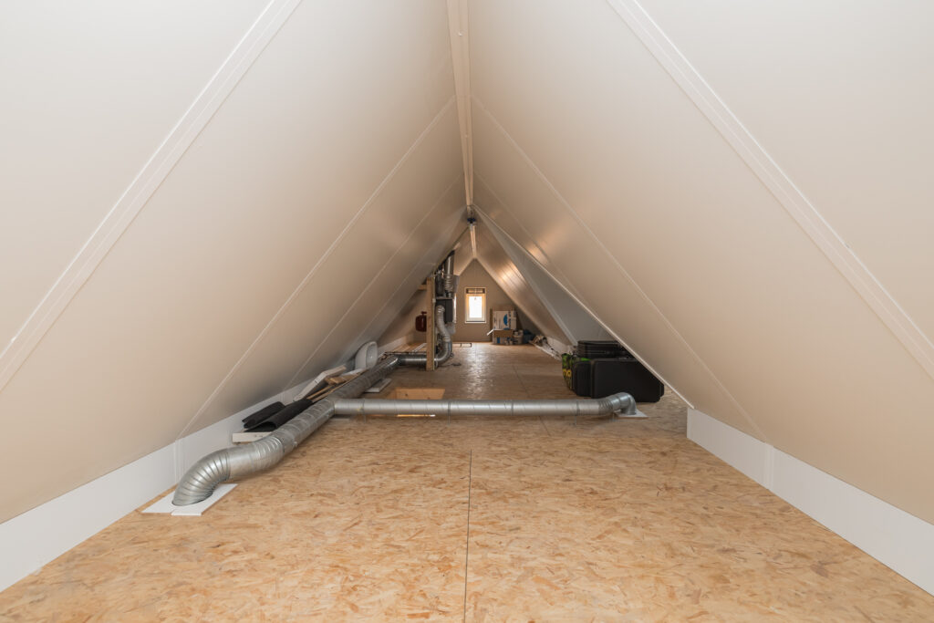 Via een vlizotrap bereikt u de ruime vliering met volop bergruimte en mogelijkheden voor het realiseren van een extra kamer.