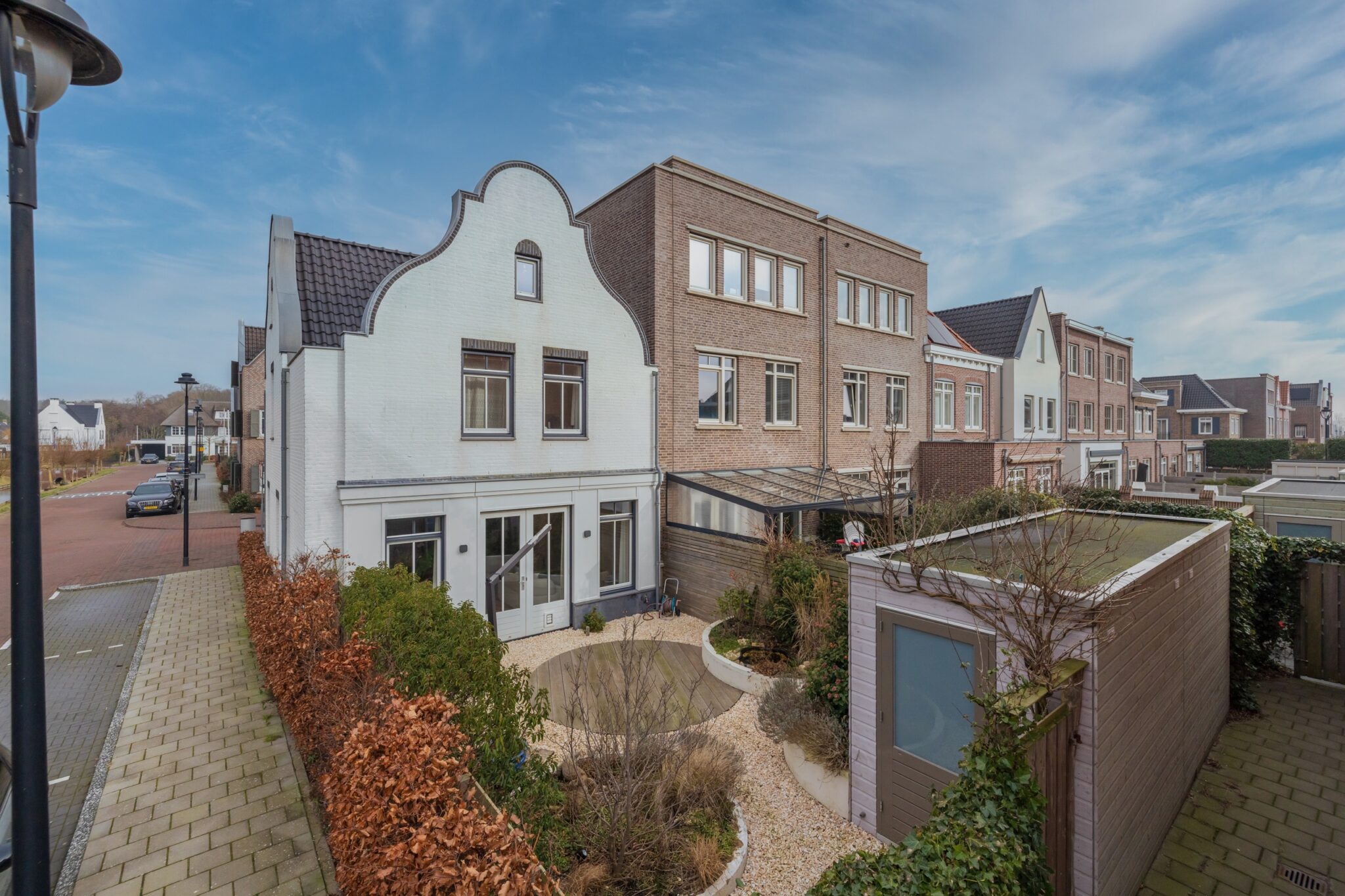 Binnen valt direct de kwaliteit op: een eikenhouten vloer, luxe binnendeuren, strak gestucte wanden en plafonds, een openhaard en een zorgvuldig samengesteld verlichtingsplan zorgen voor een rustige en comfortabele woonbeleving. De woning is uitgevoerd in een opvallende wit gekeimde gevel en beschikt over een fraai aangelegde tuin met ronde vormen op het zuidwesten, waar u tot in de avond van de zon kunt genieten.