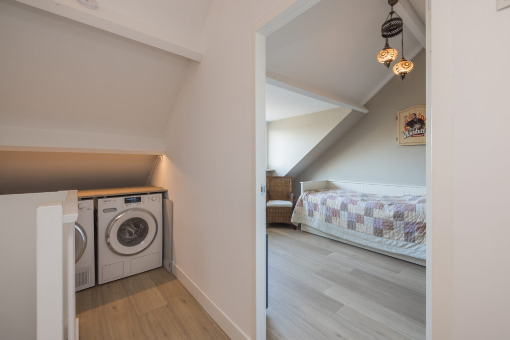 Overloop met aansluiting voor wasapparatuur en opstelling c.v. combiketel. Toegang tot de 3e slaapkamer met vaste kastenwand en dakkapel.