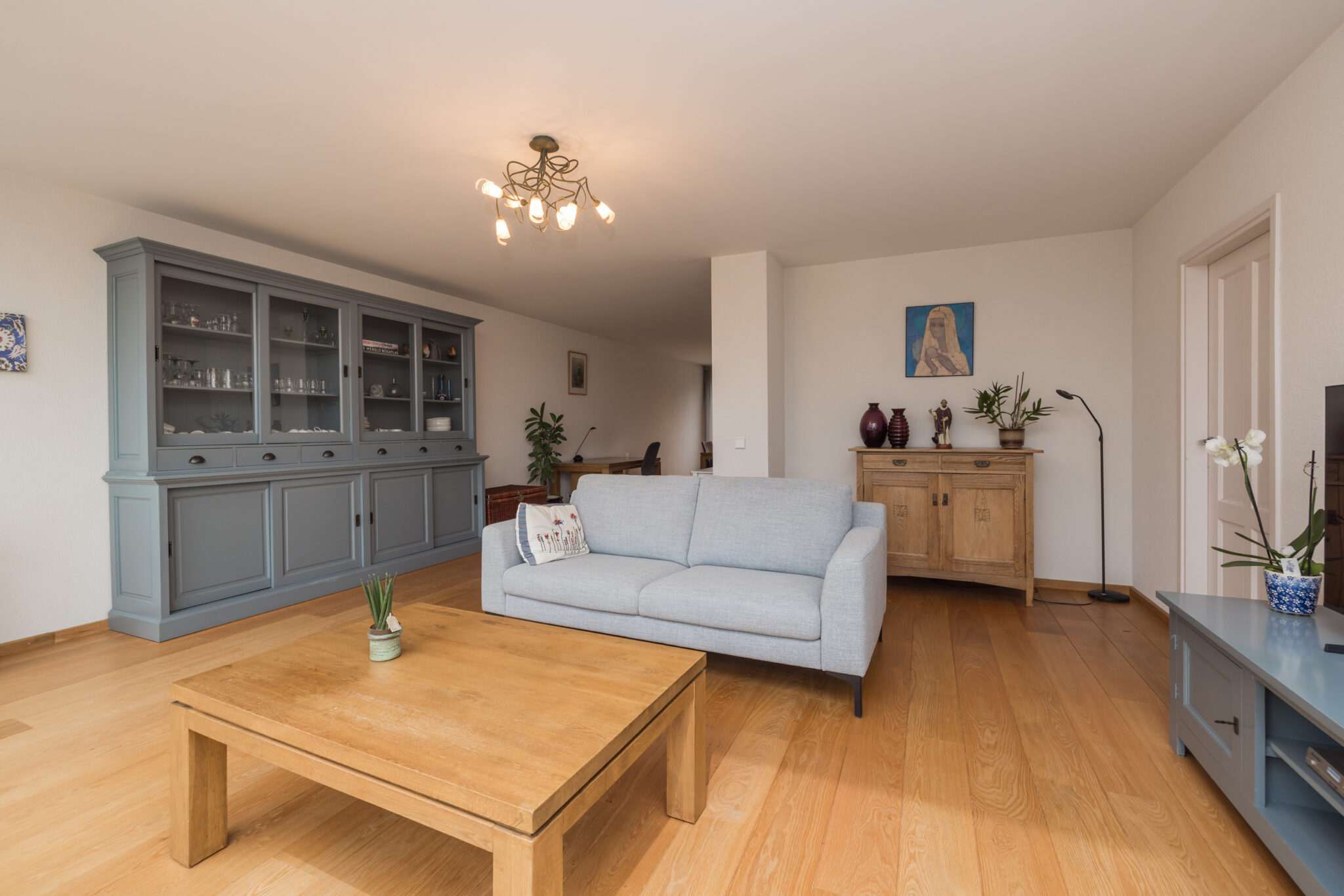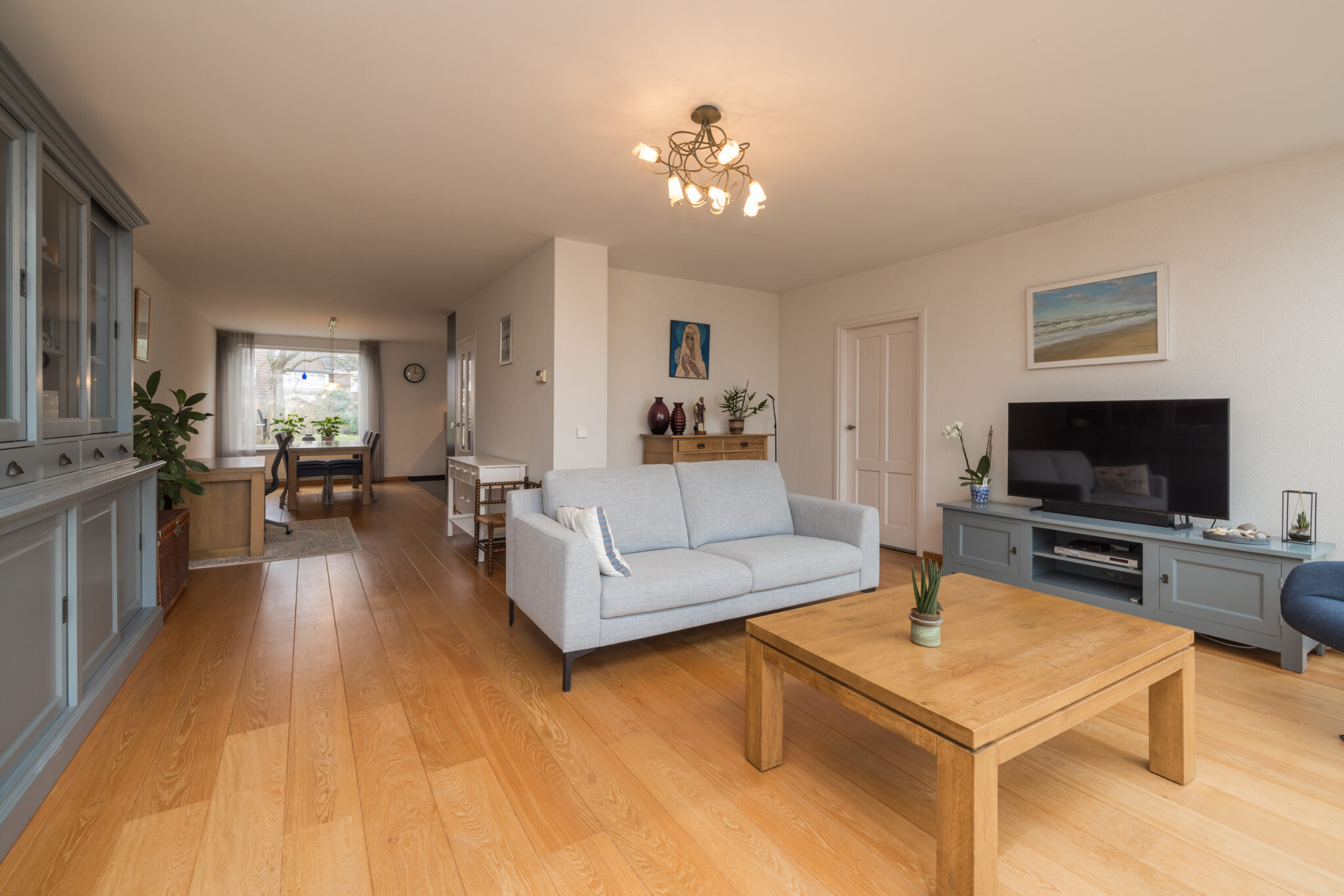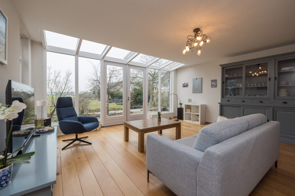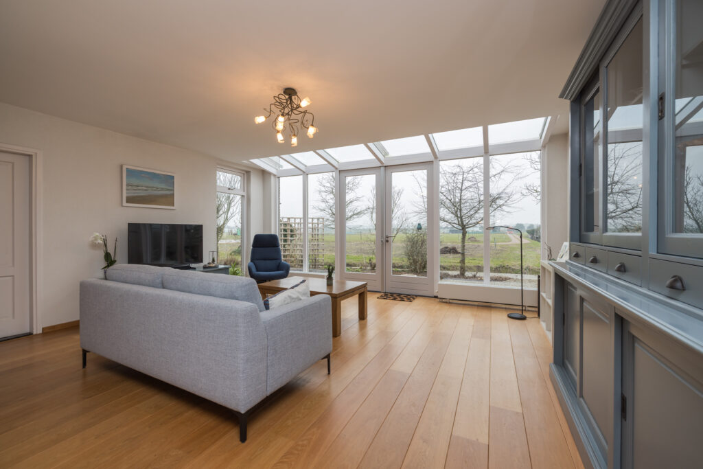• Woonkamer voorzien van lichte parketvloer;