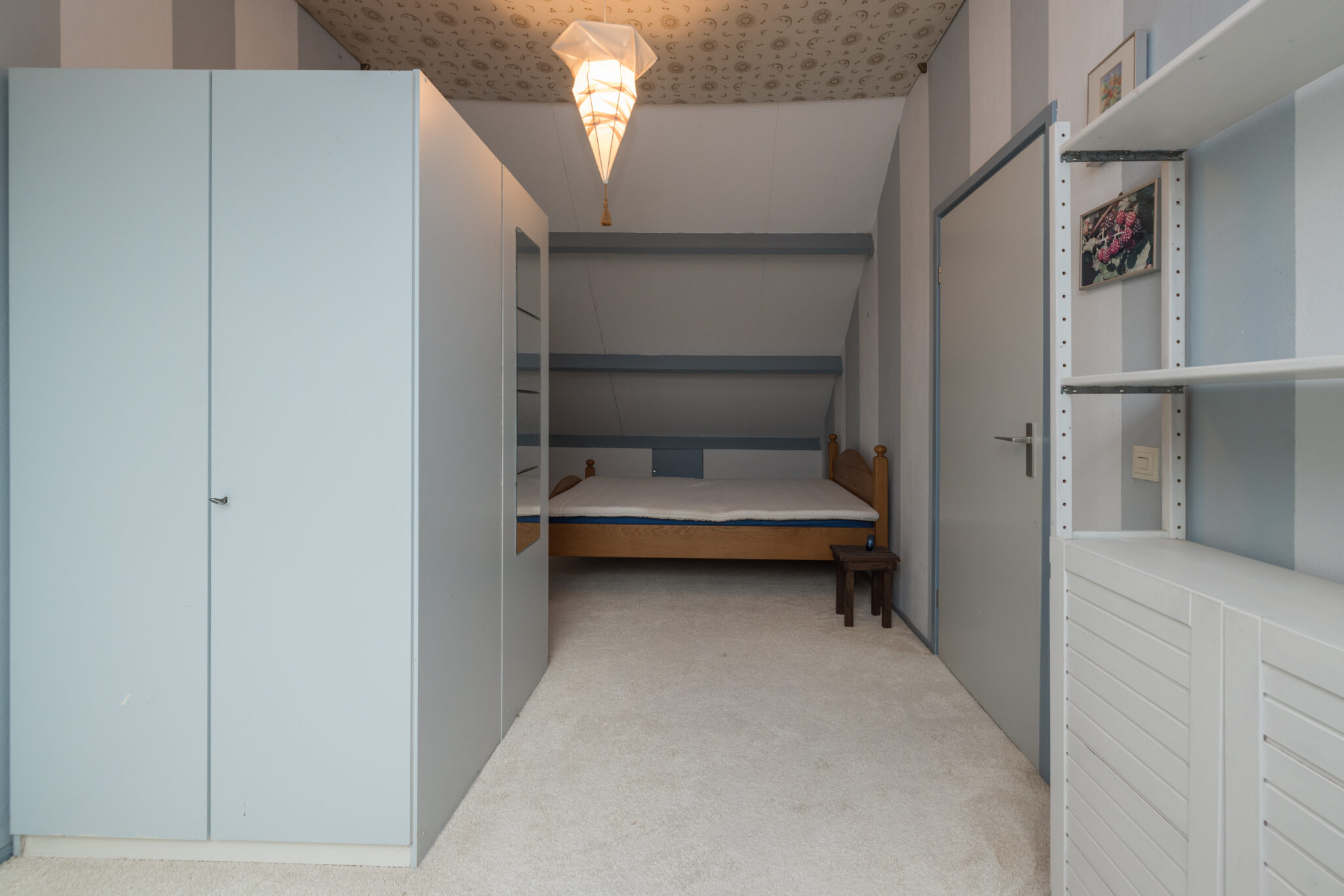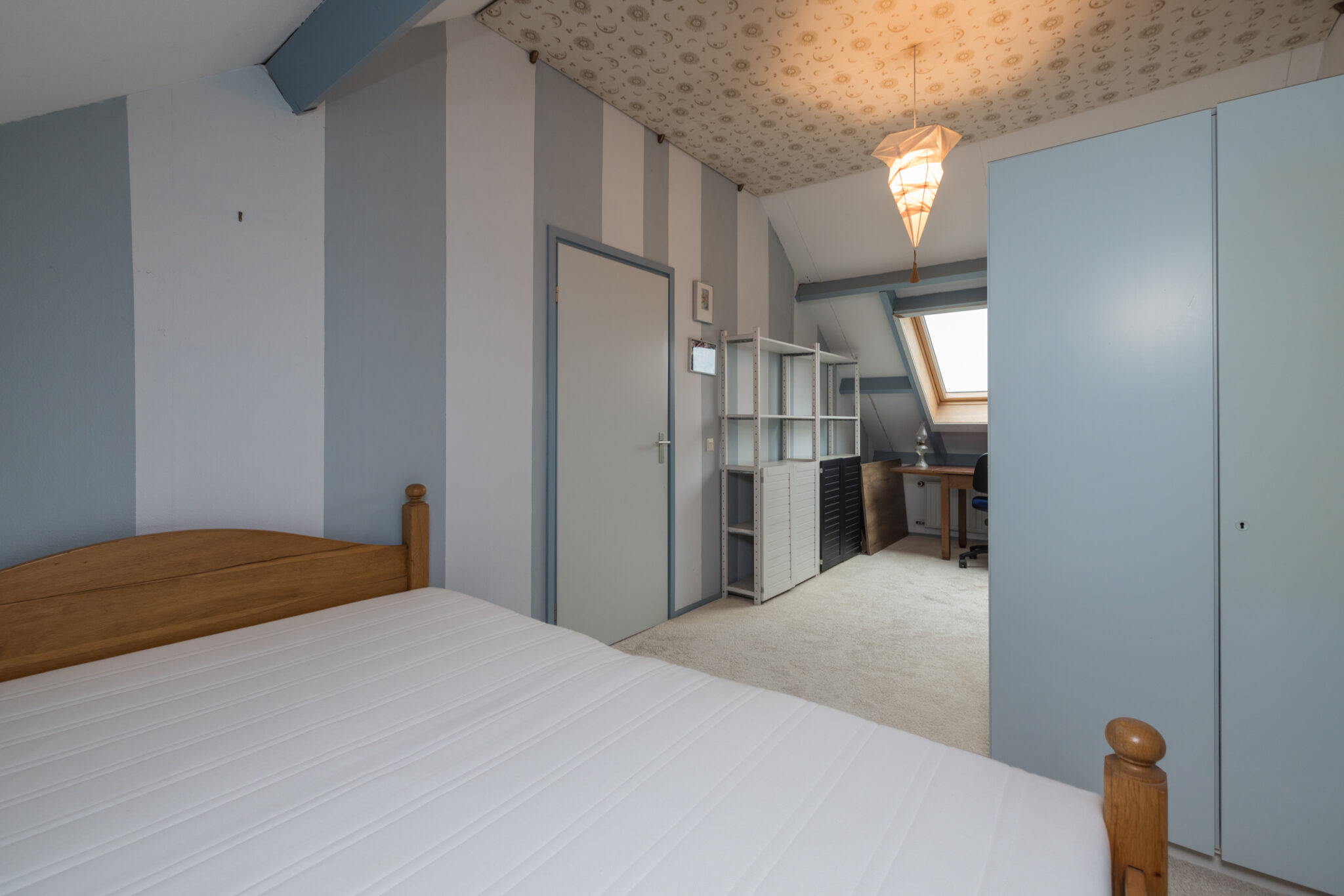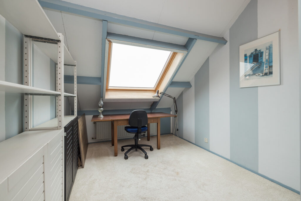 Ruime 3e slaapkamer met dakraam en bergruimte achter knieschotten.