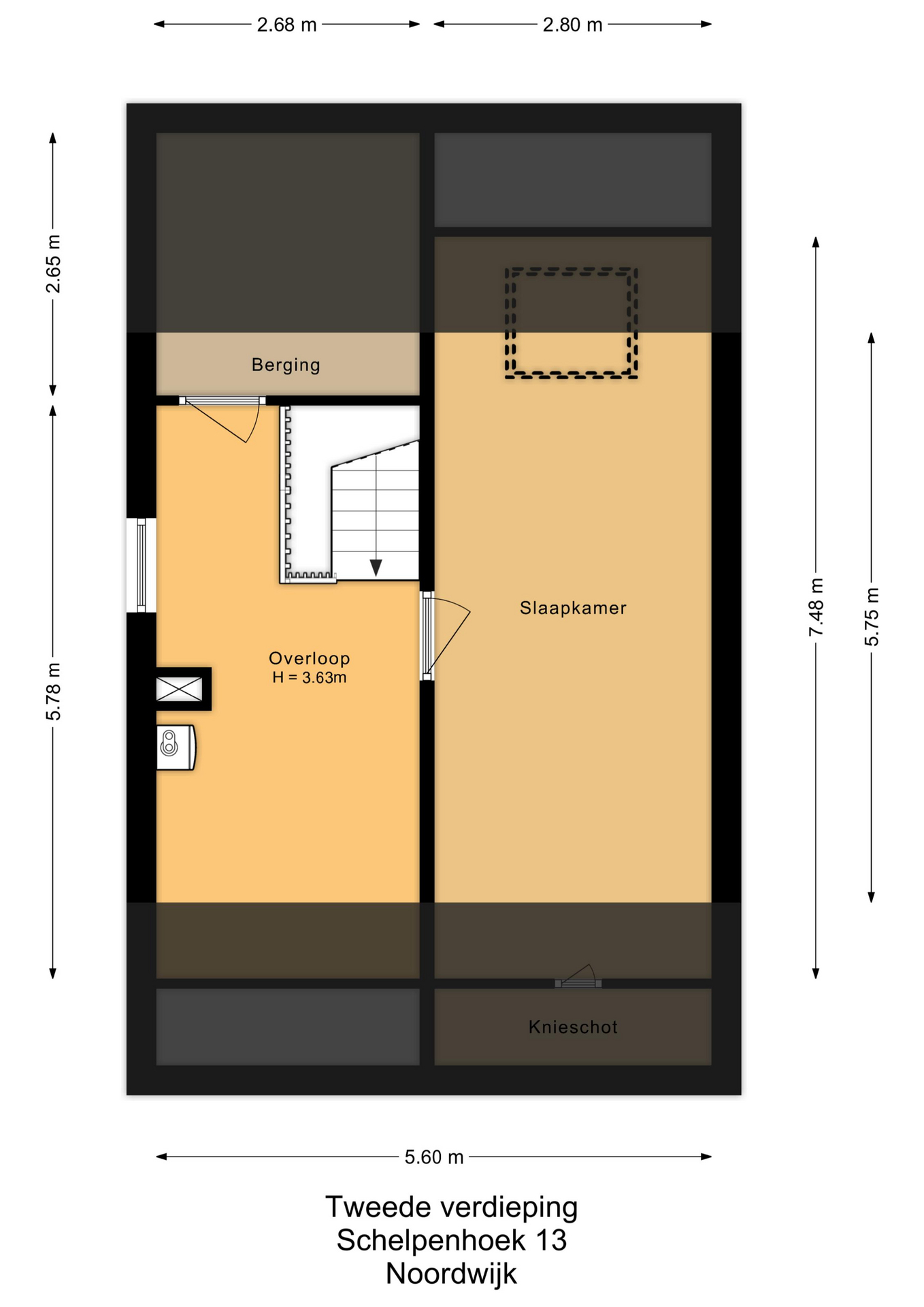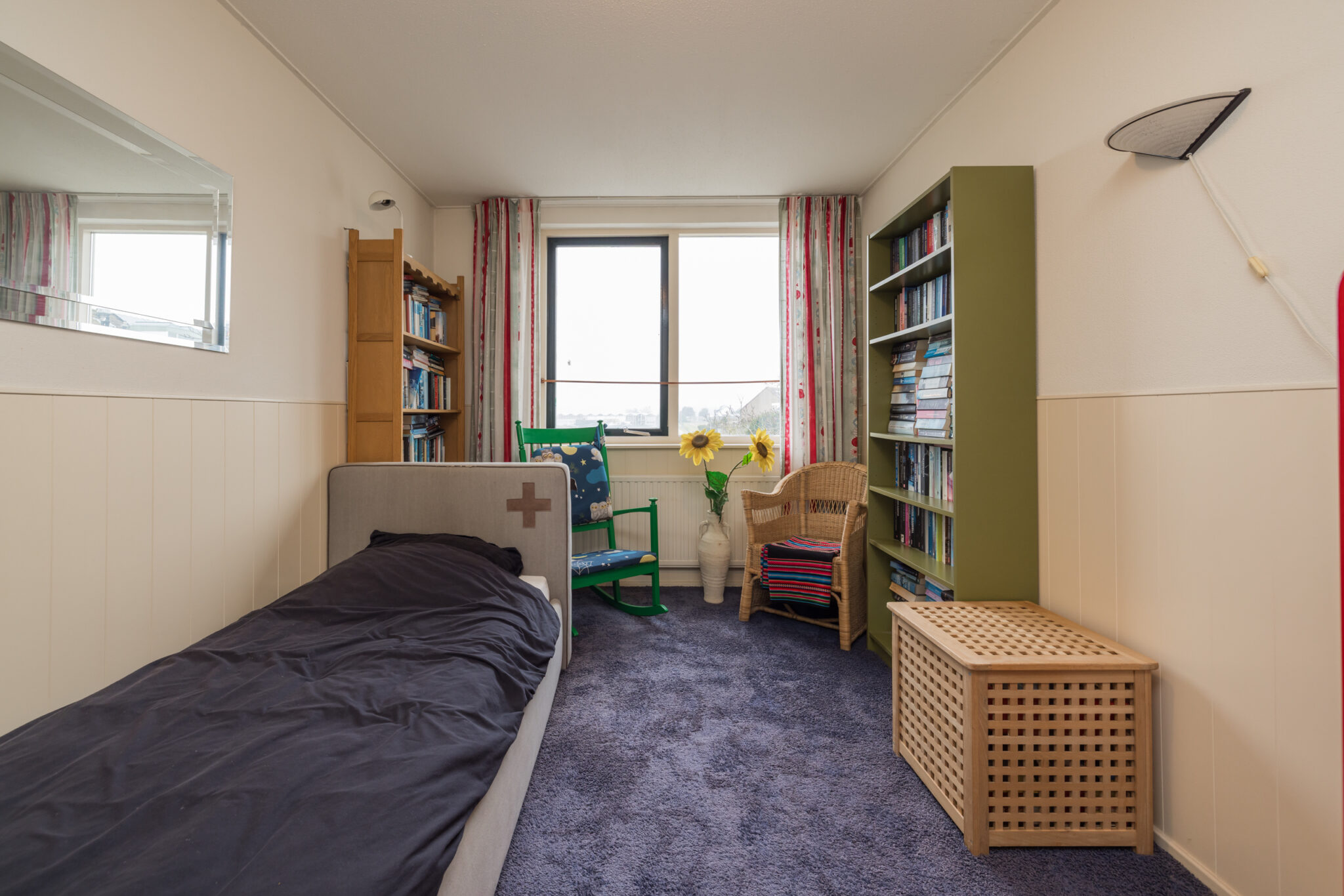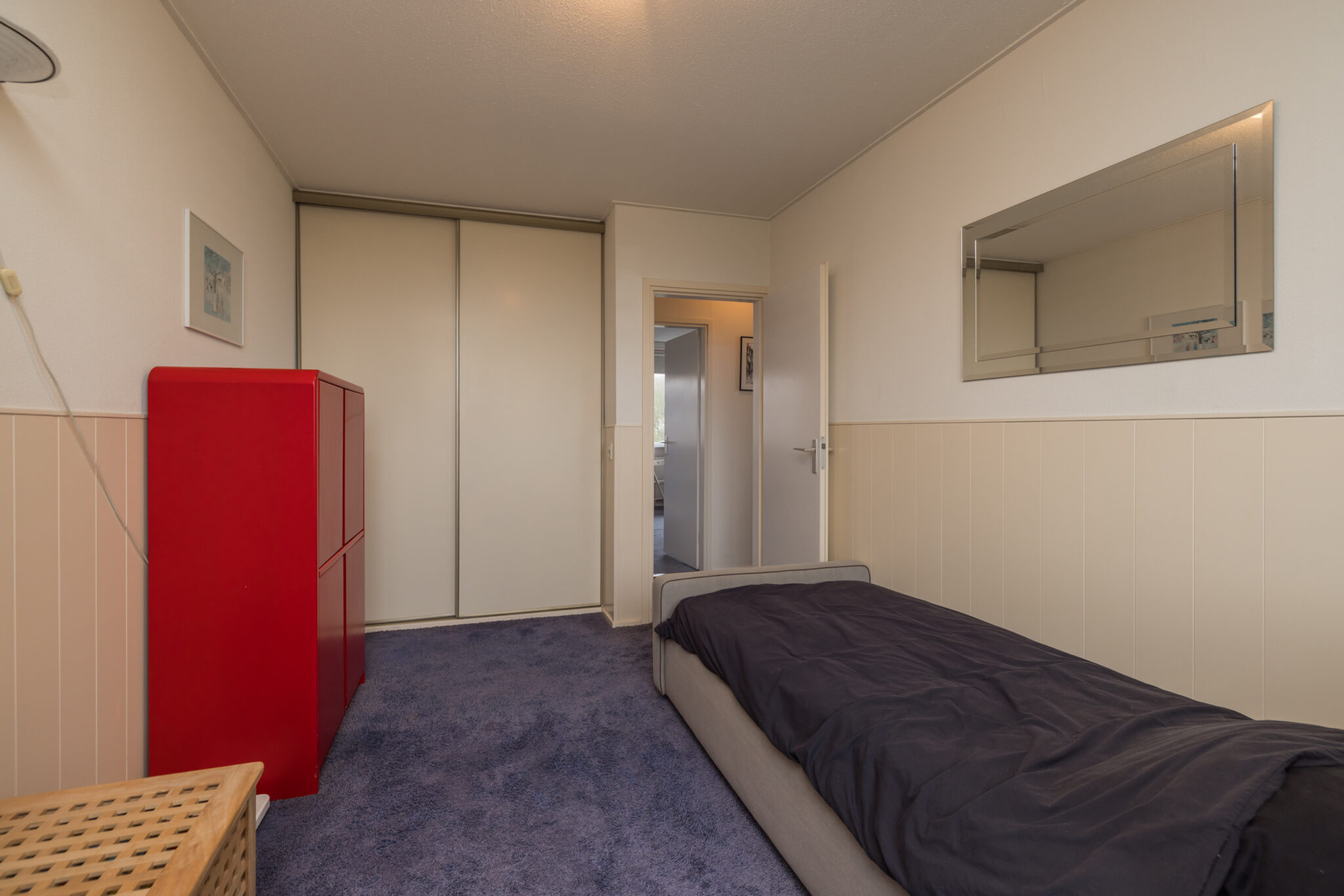Ruime 3e slaapkamer met dakraam en bergruimte achter knieschotten.