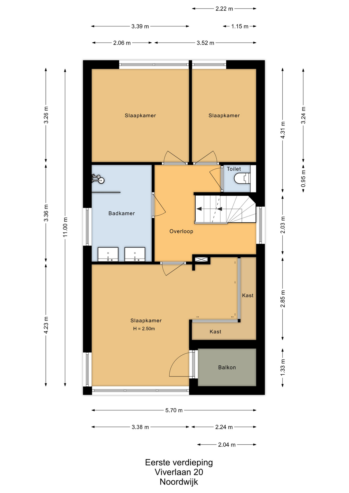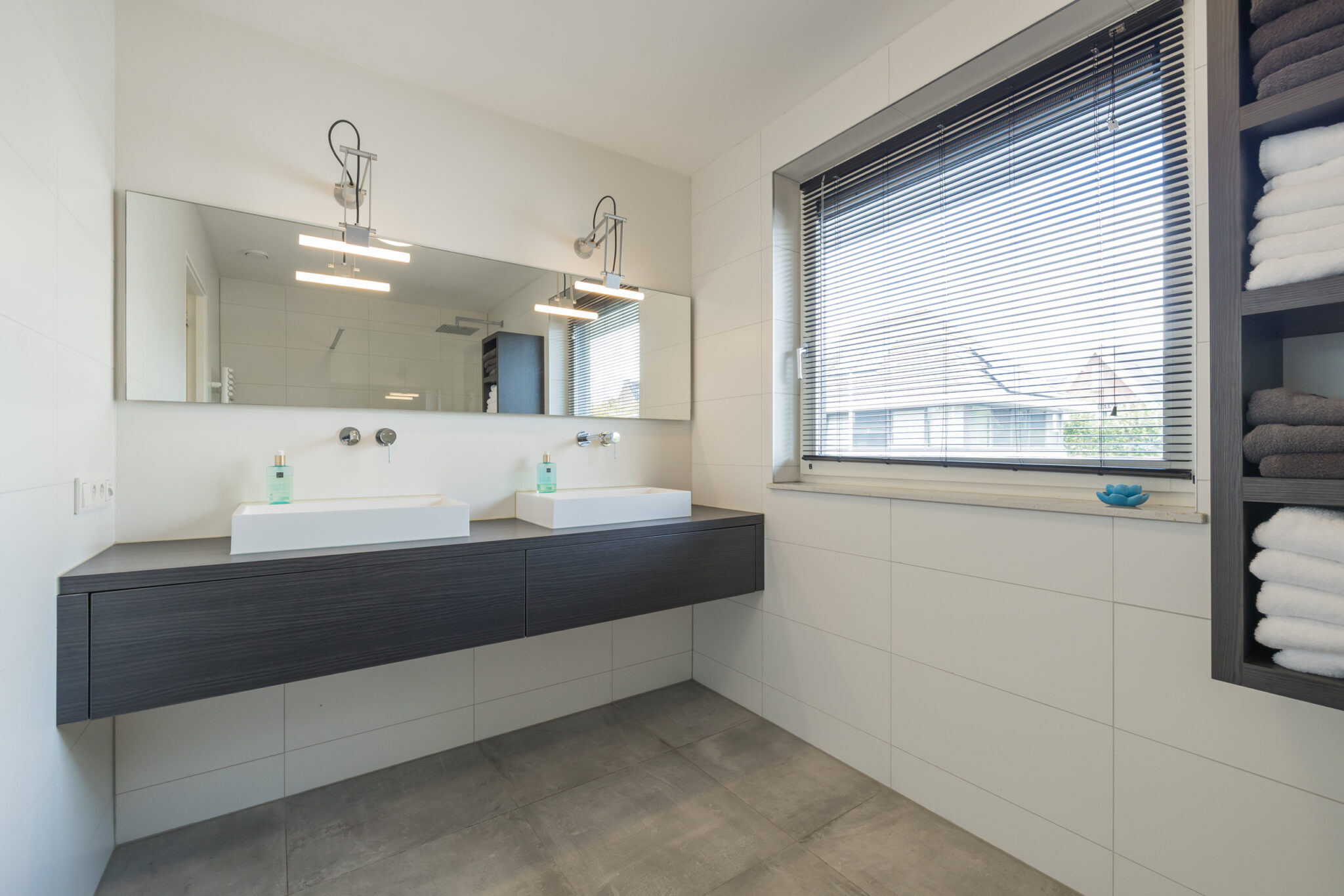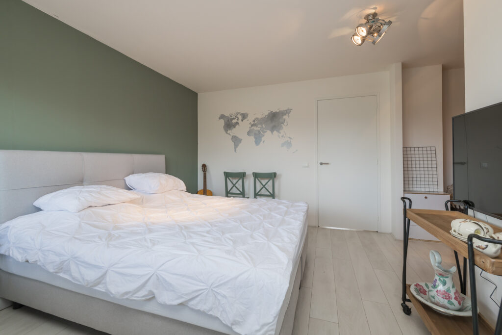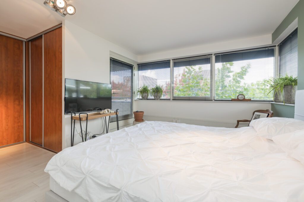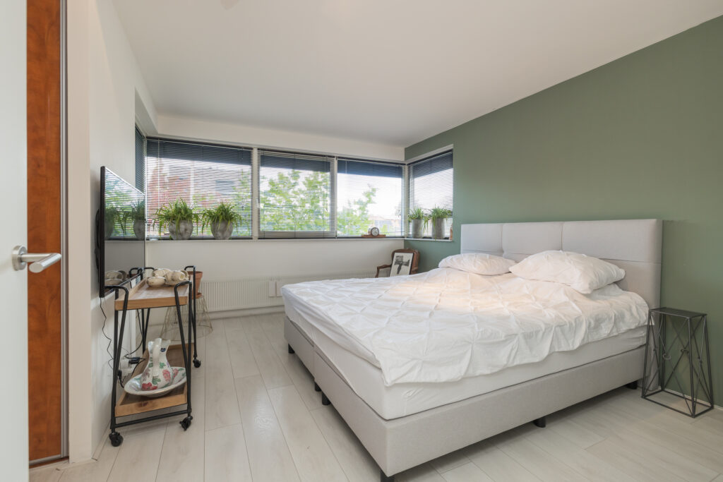 Ruime overloop, 1e (ouder)slaapkamer met vaste kastenwand en openslaande deur naar balkon. 2e en 3e slaapkamer aan de achterzijde. Volledig betegelde badkamer met extra grote inloopdouche en wastafelmeubel voorzien van dubbele wasbak. Separate toiletruimte met wandcloset en fonteintje.