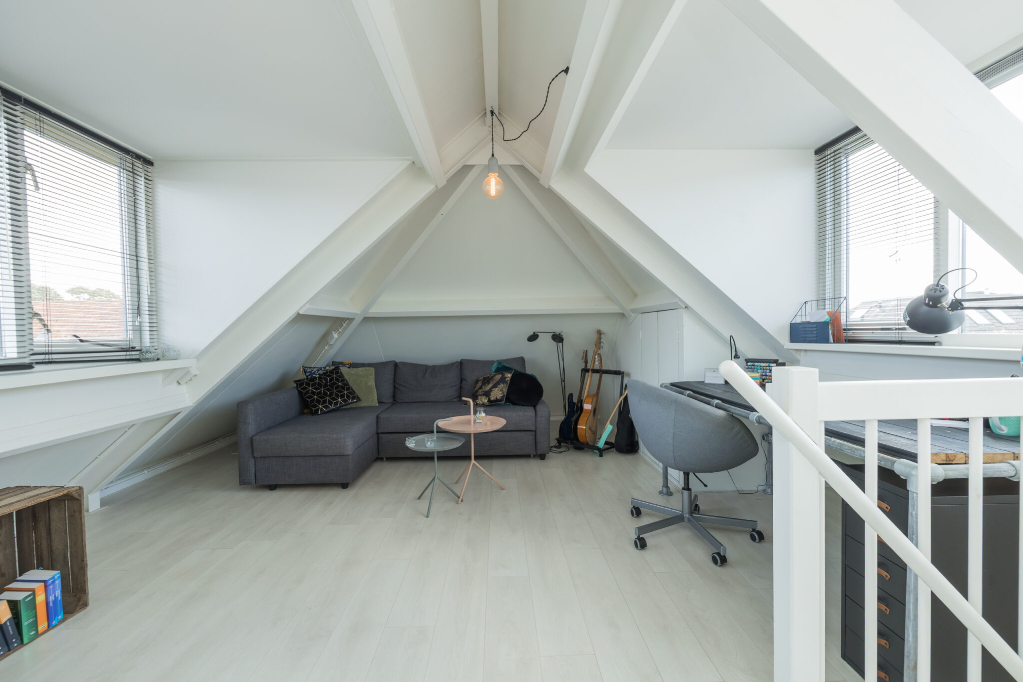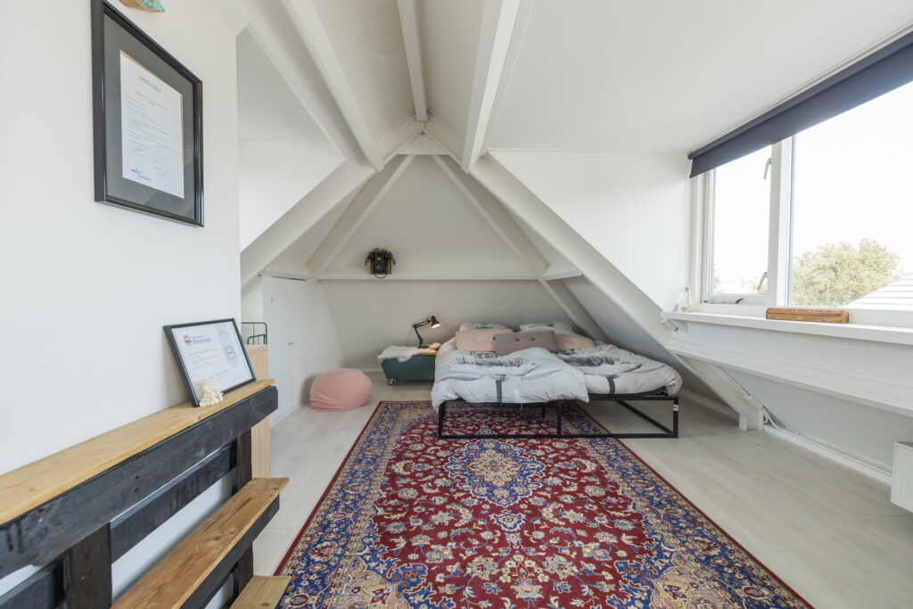 Zeer ruime overloop (eenvoudig om te bouwen tot 5e slaapkamer) met aan beide kanten een grote dakkappel. 4e slaapkamer aan de voorzijde met vaste kast, wastafelmeubel en opstelling c.v. combiketel (Remeha, 2016).