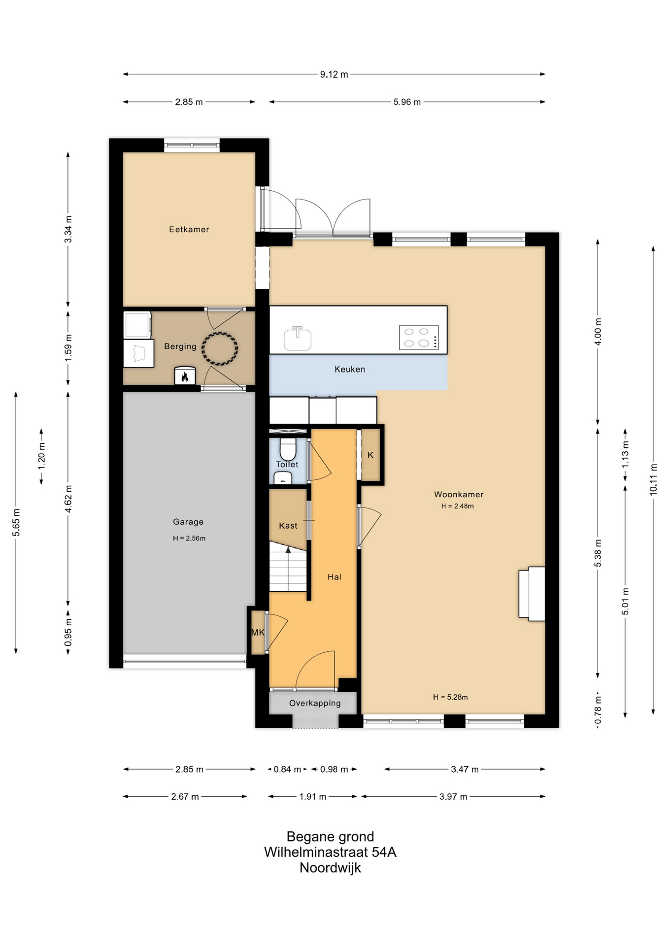 • De garage is voorzien van een elektrische overheaddeur.