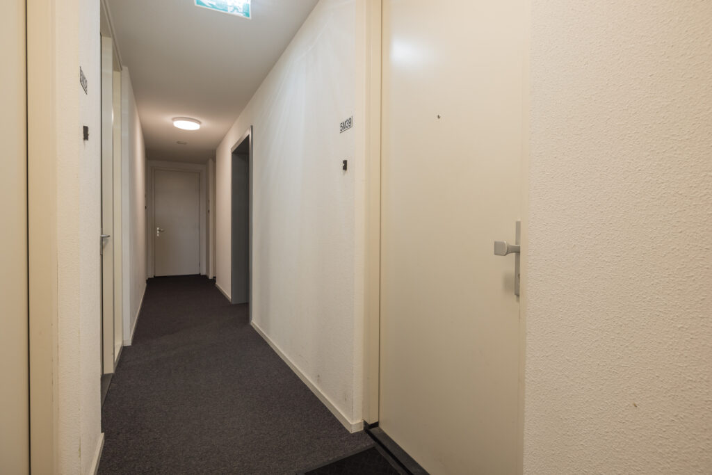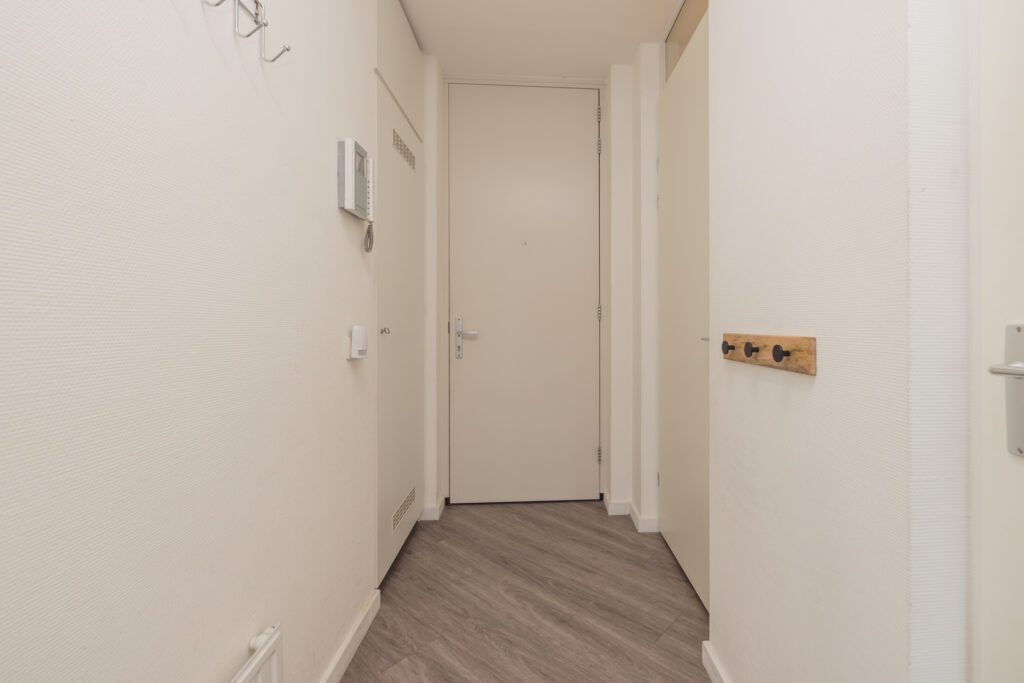 Afgesloten entree met bellentableau, brievenbussen, trappenhuis en liftinstallatie. Binnendoor kunt u de gezamenlijke fietsenberging en de parkeergarage bereiken.