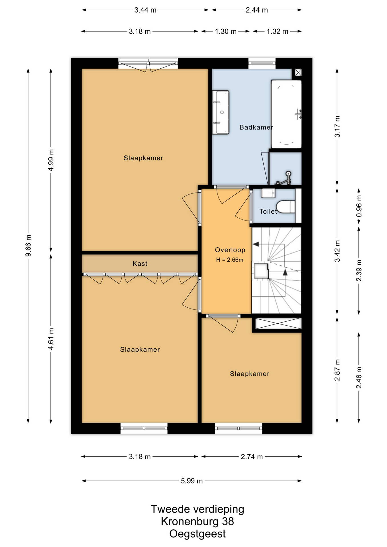 Op deze verdieping bevinden zich drie slaapkamers en de eerste badkamer.