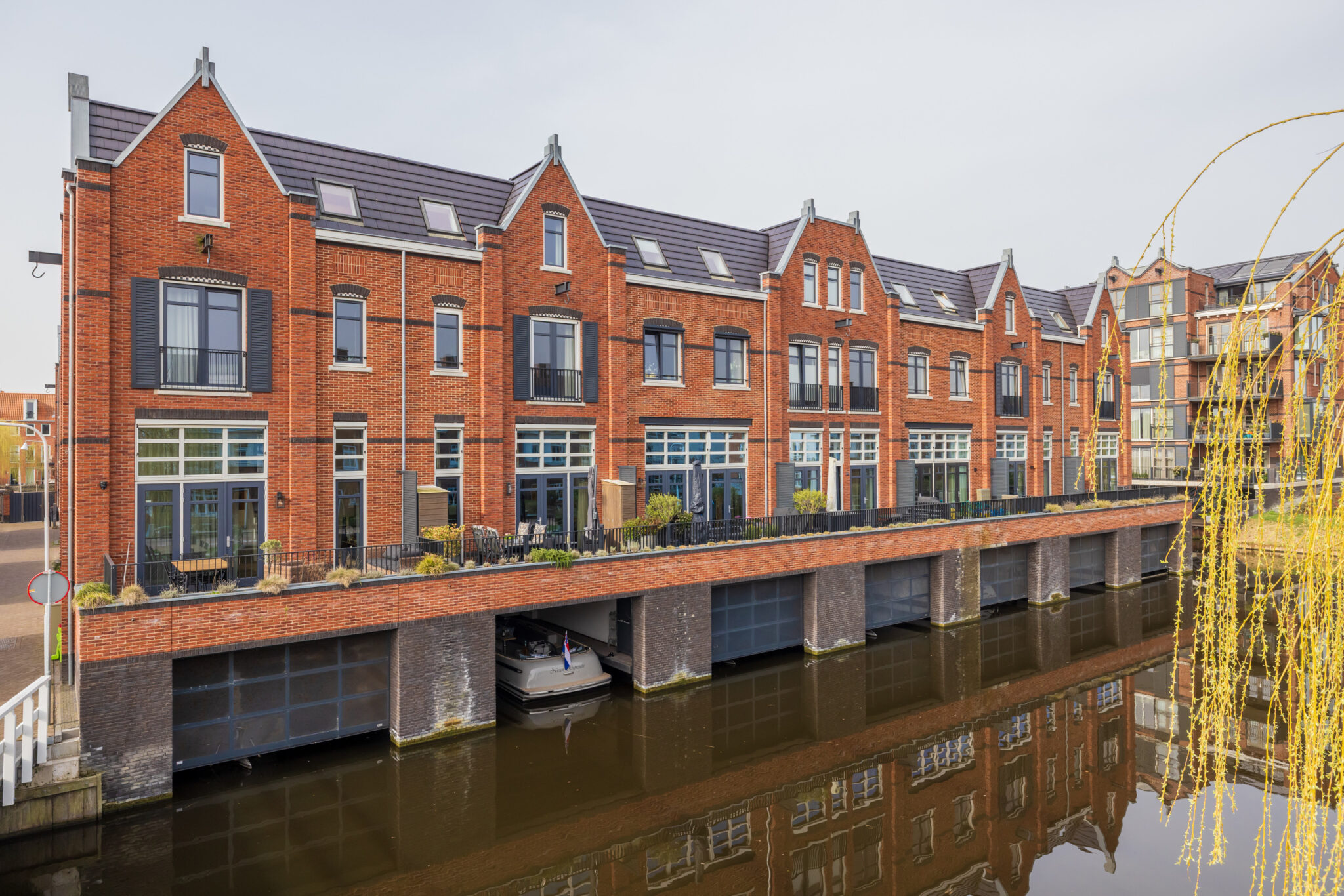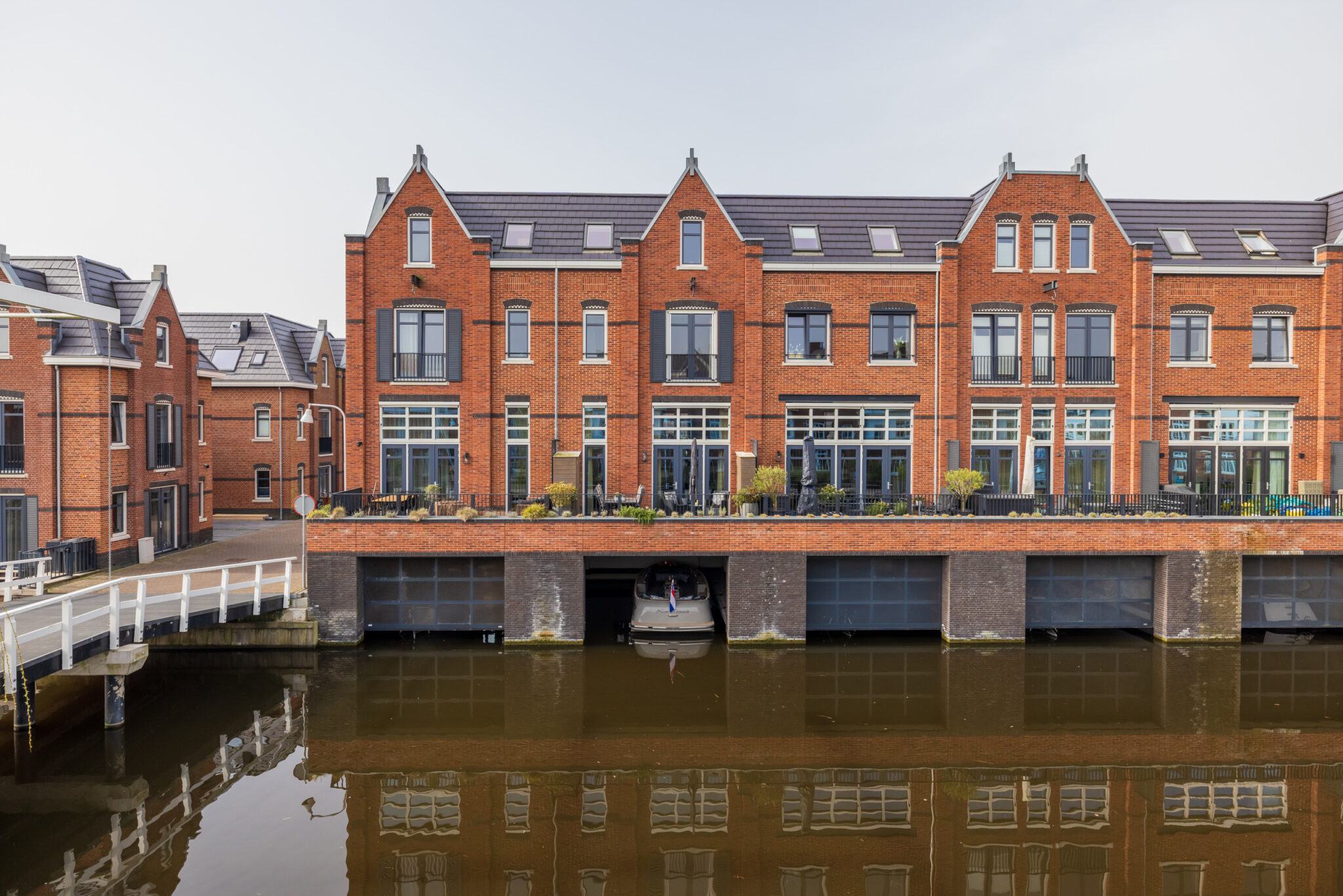 Wonen aan het water met een eigen inpandig botenhuis, vijf slaapkamers en zonnige buitenruimtes.