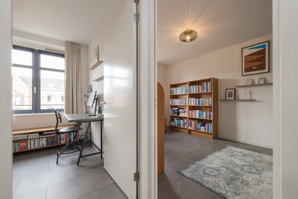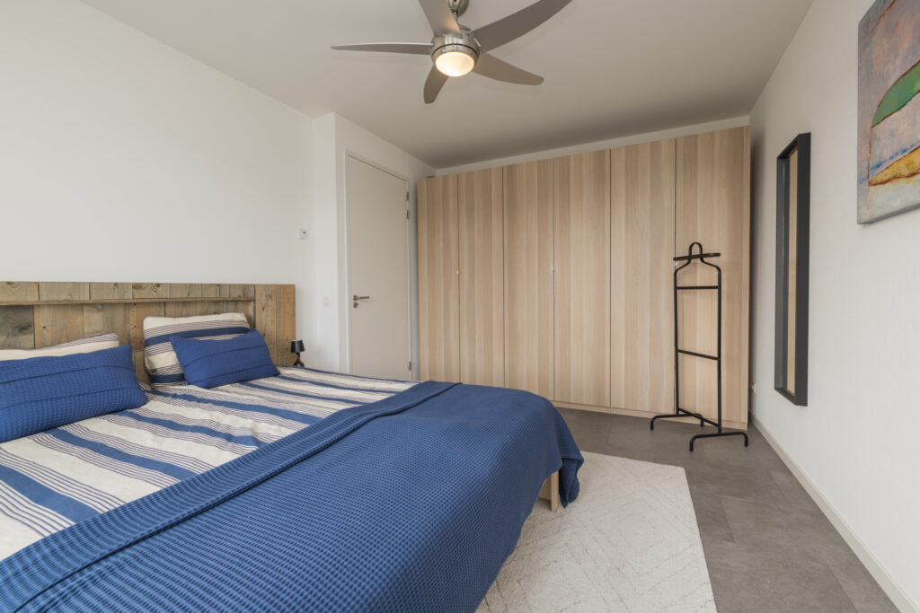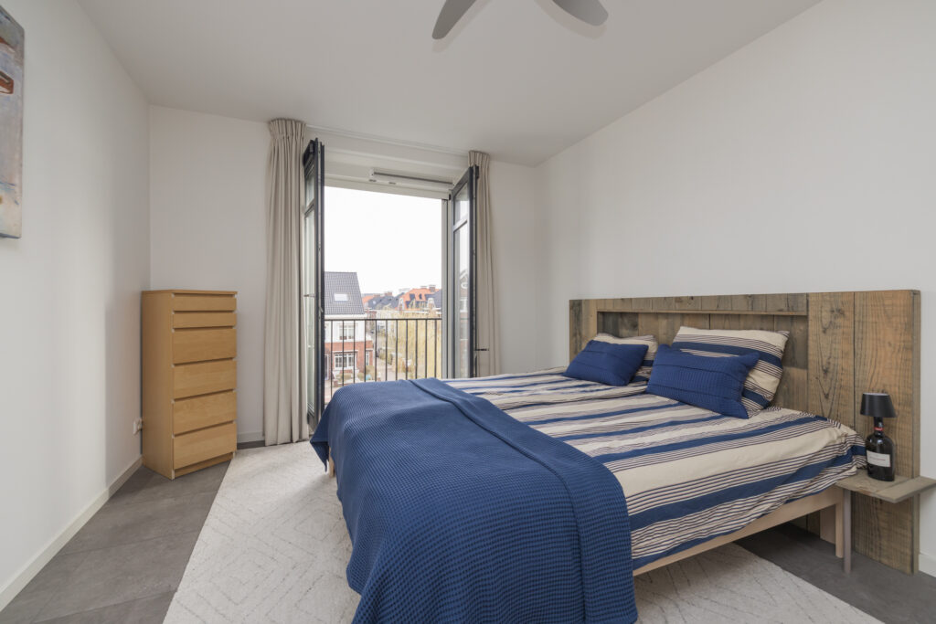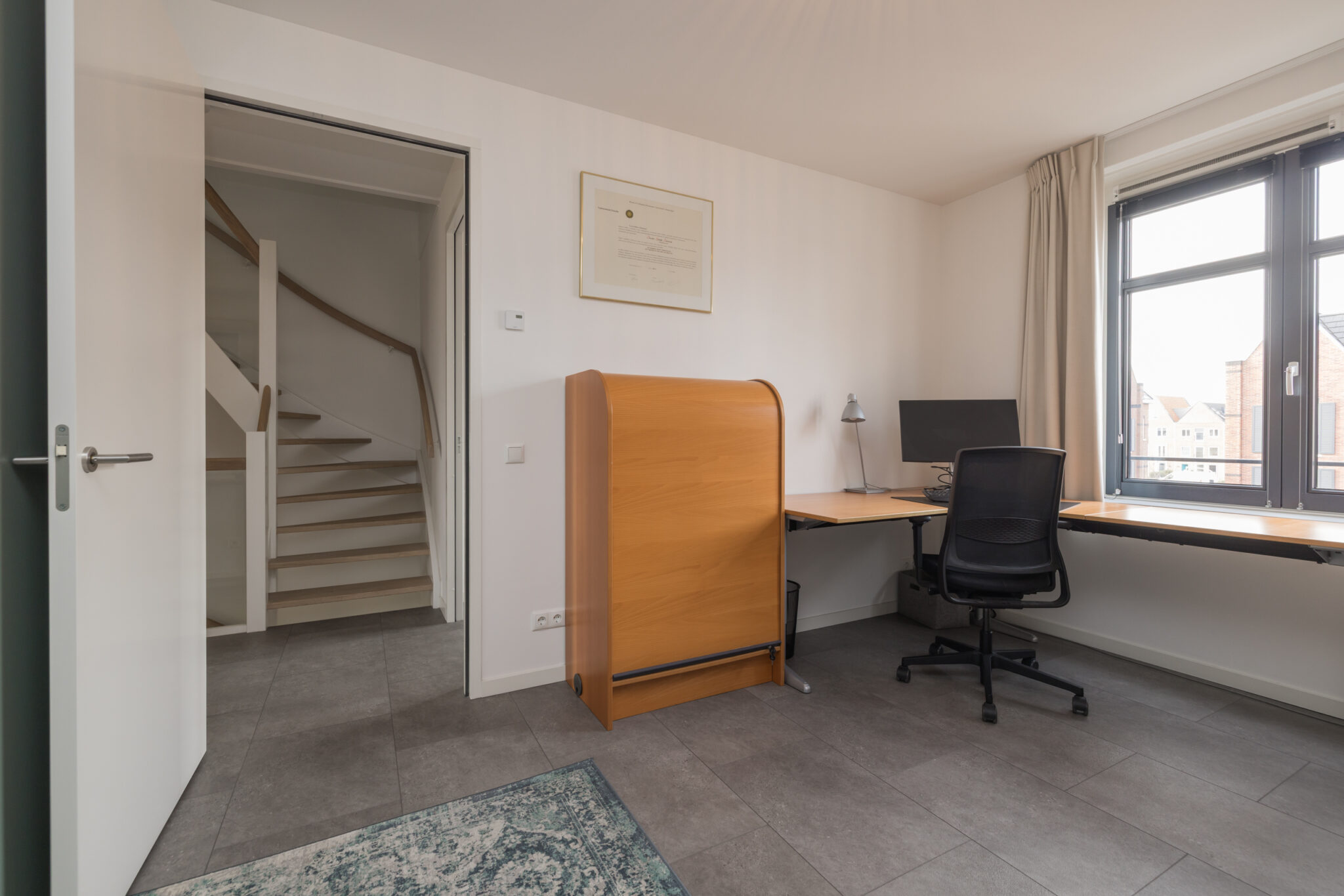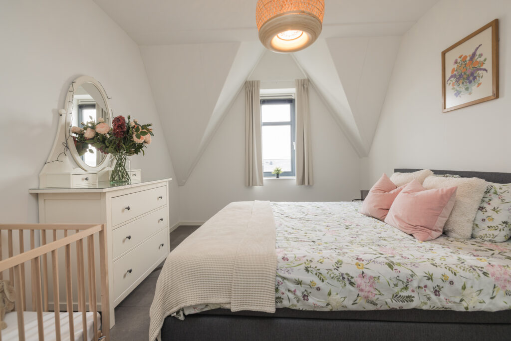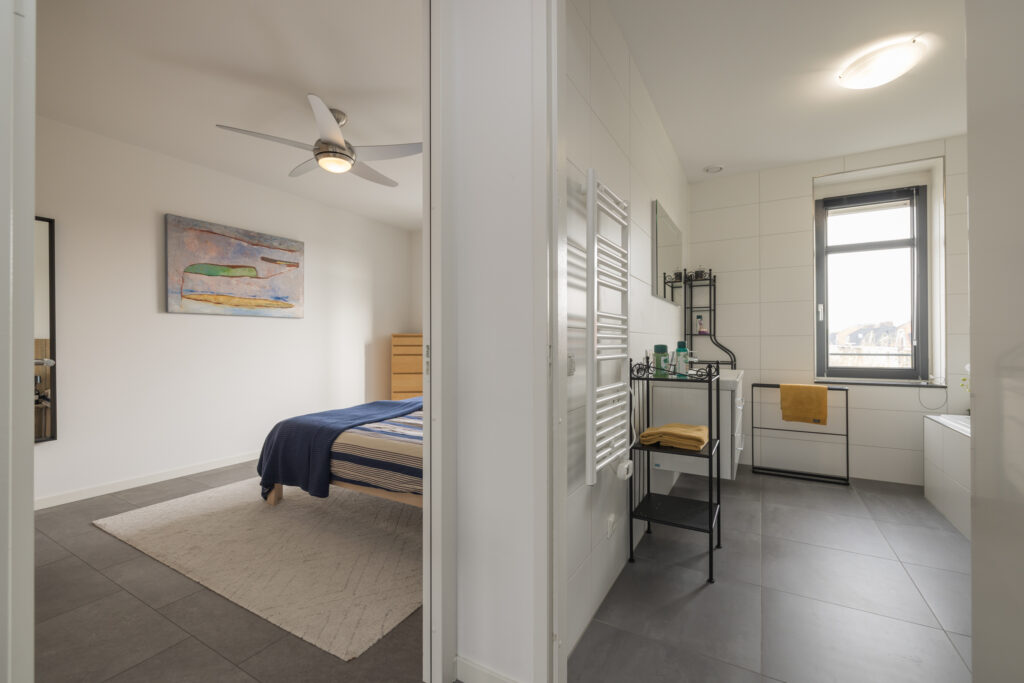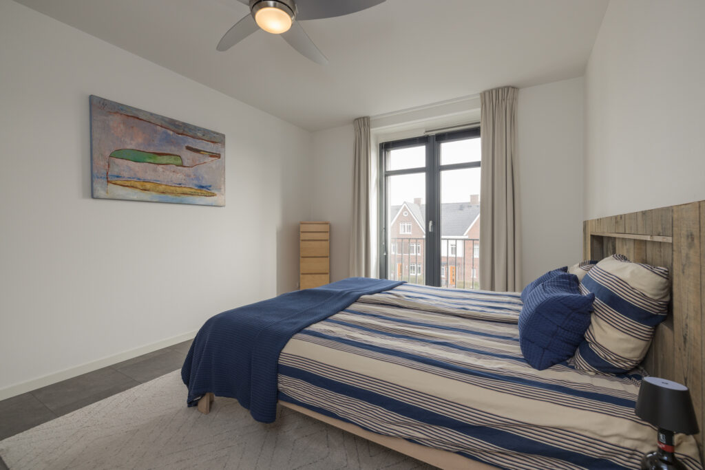 De bovenste verdieping biedt nog eens twee ruime slaapkamers en een tweede badkamer met inloopdouche en wastafel. Daarnaast is hier een keurig afgewerkte wasruimte aanwezig. Achter een aparte deur bevinden zich de aansluitingen voor wasmachine en droger en daarachter ligt nog een separate technische ruimte met de installaties van de woning. Alles is netjes weggewerkt en praktisch ingericht.