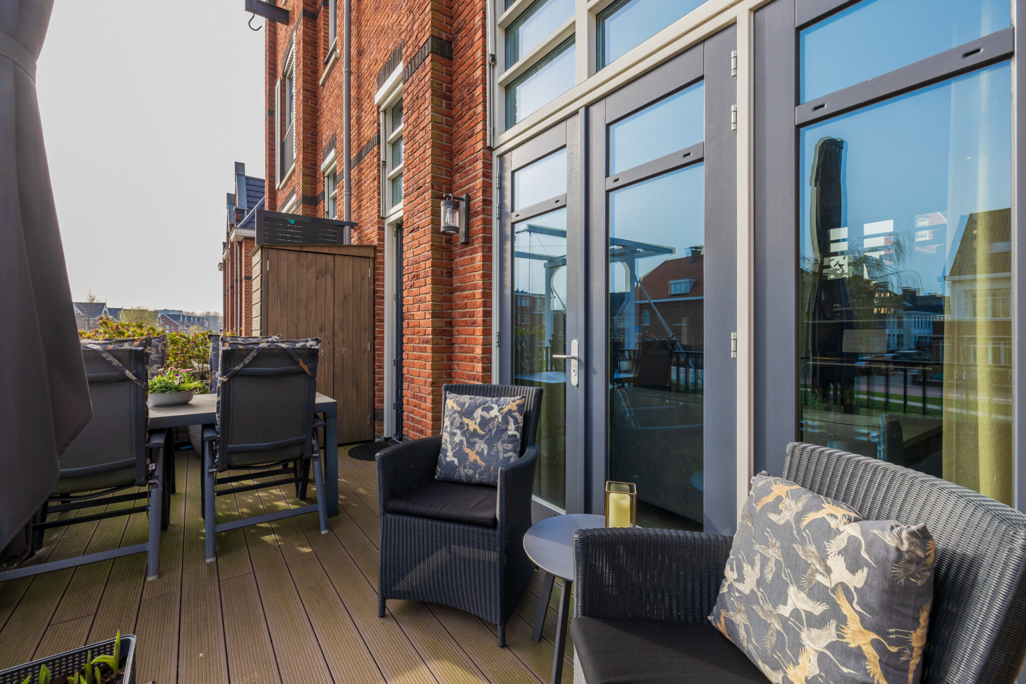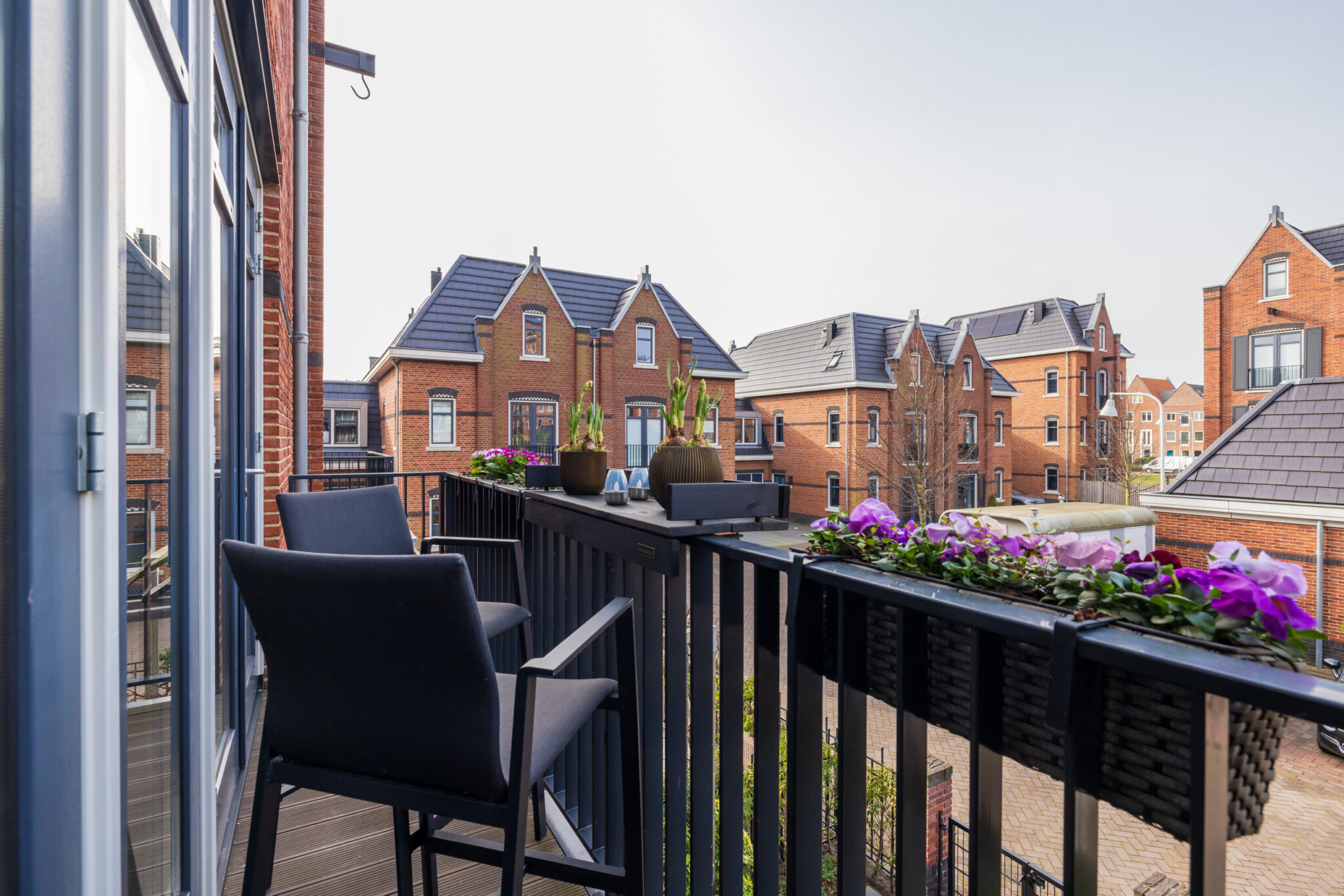 Aan buitenruimte ook geen gebrek: aan zowel de voor- als achterzijde ligt een balkon over de volledige breedte van de woning en in de voortuin, gelegen op het zuidwesten is verrassend veel ruimte voor een gezellig zitje.