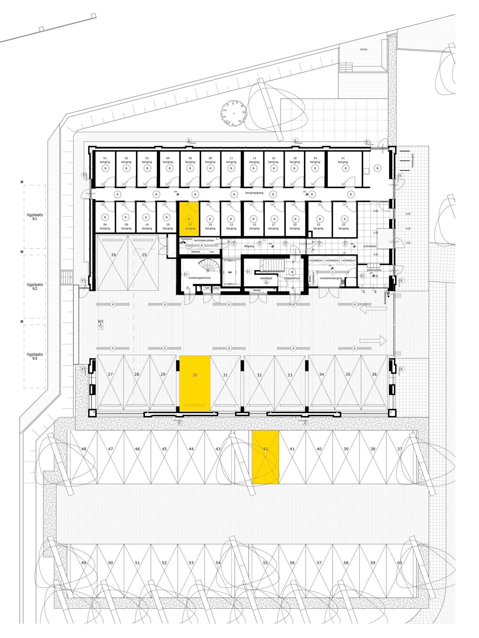 Voor de fietsen is er een eigen berging in de kelder, voorzien van elektra. Daarnaast heeft u de beschikking over twee eigen parkeerplaatsen, waarvan één onder het gebouw.
