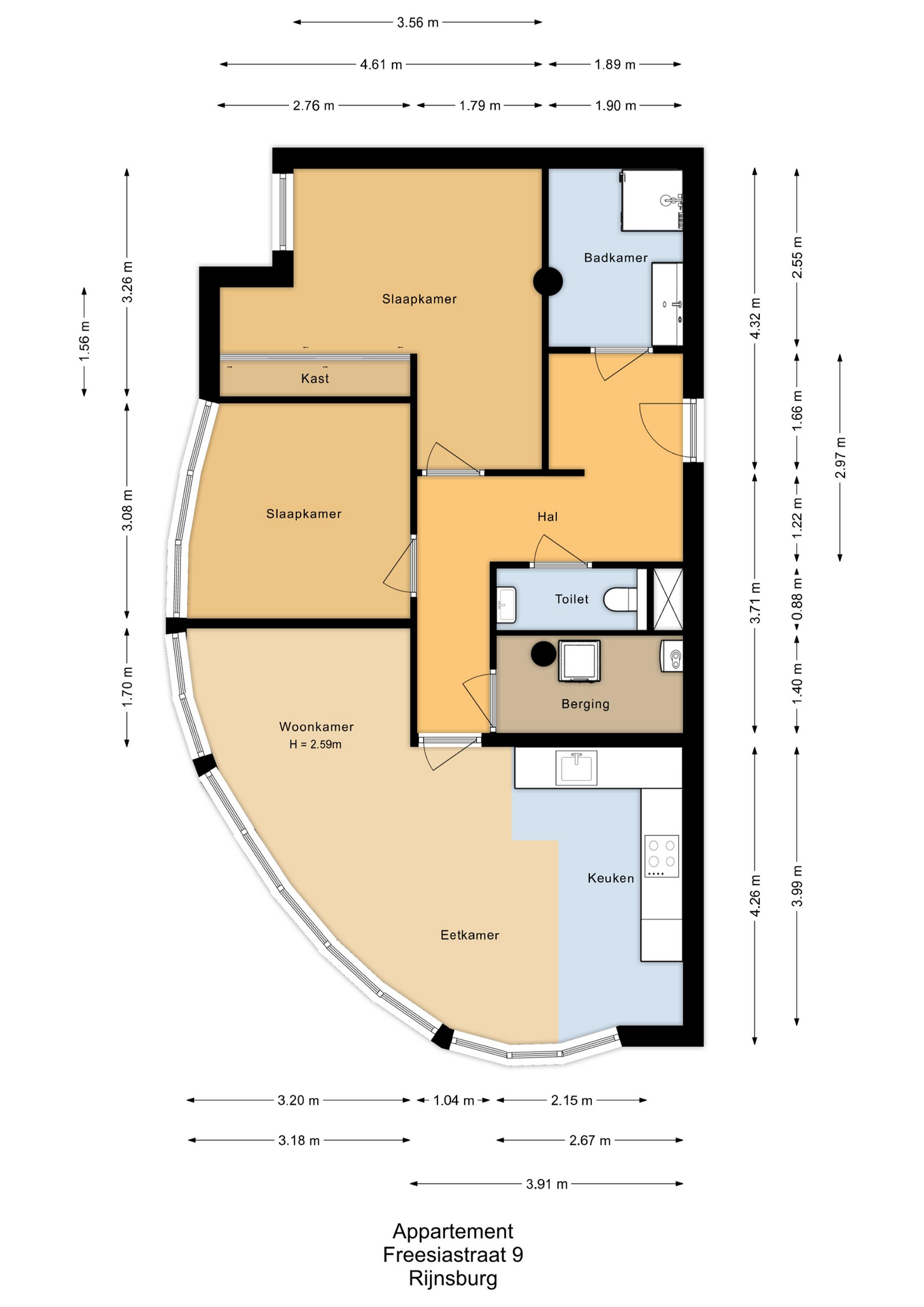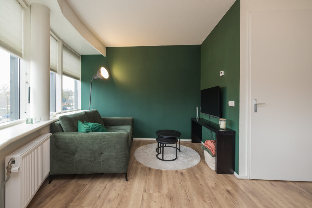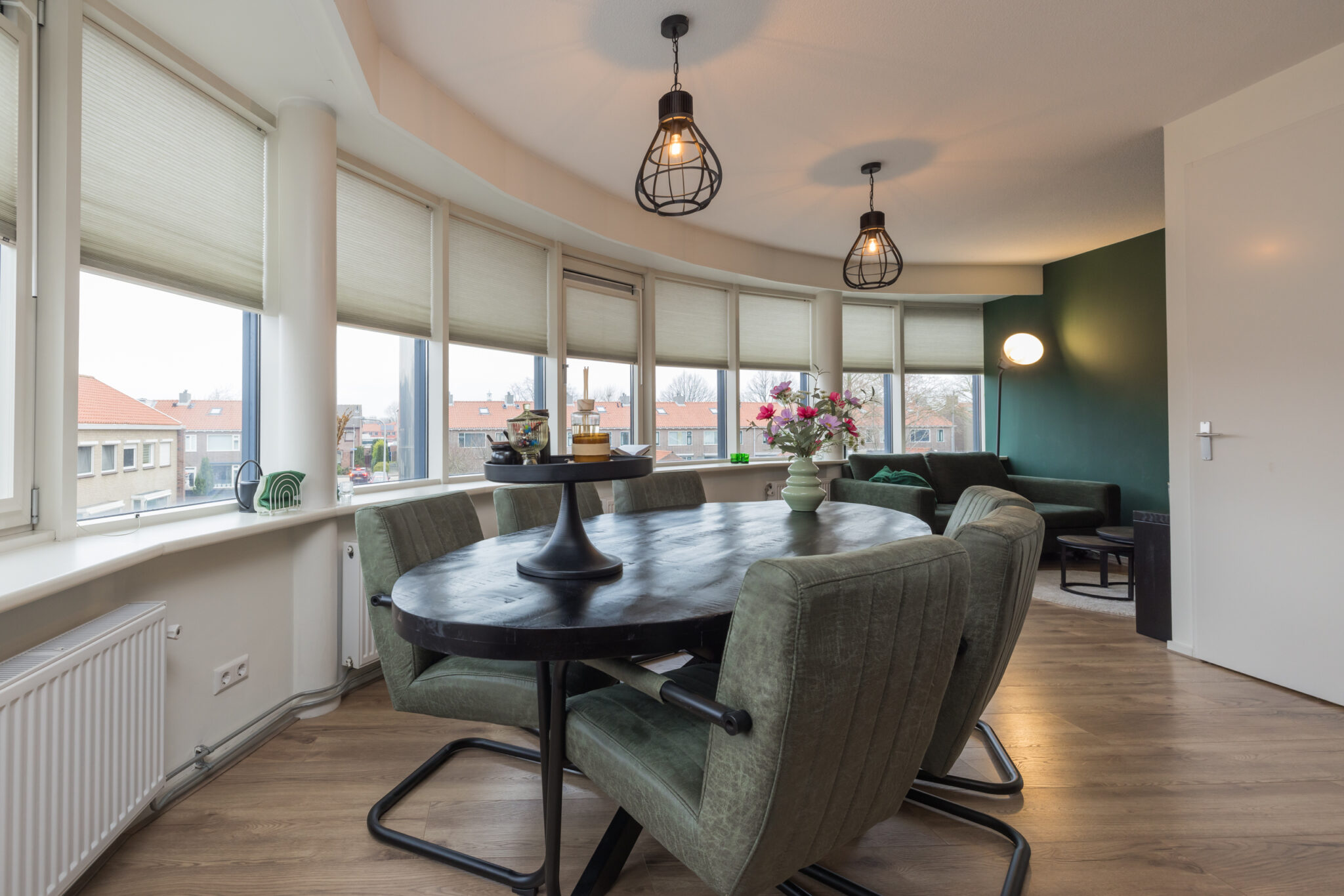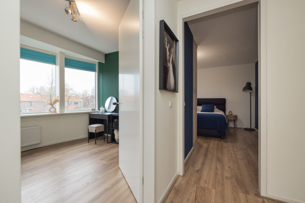 Kenmerkend zijn de vele ramen in een speelse ronding van het complex. Vanuit de woonkamer en de twee slaapkamers heb je werkelijk bijzonder fijn en ruim uitzicht. Gehele appartement is v.v. moderne laminaatvloer, dubbel glas en een CV Remeha combiketel uit 2019.