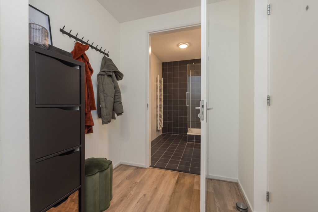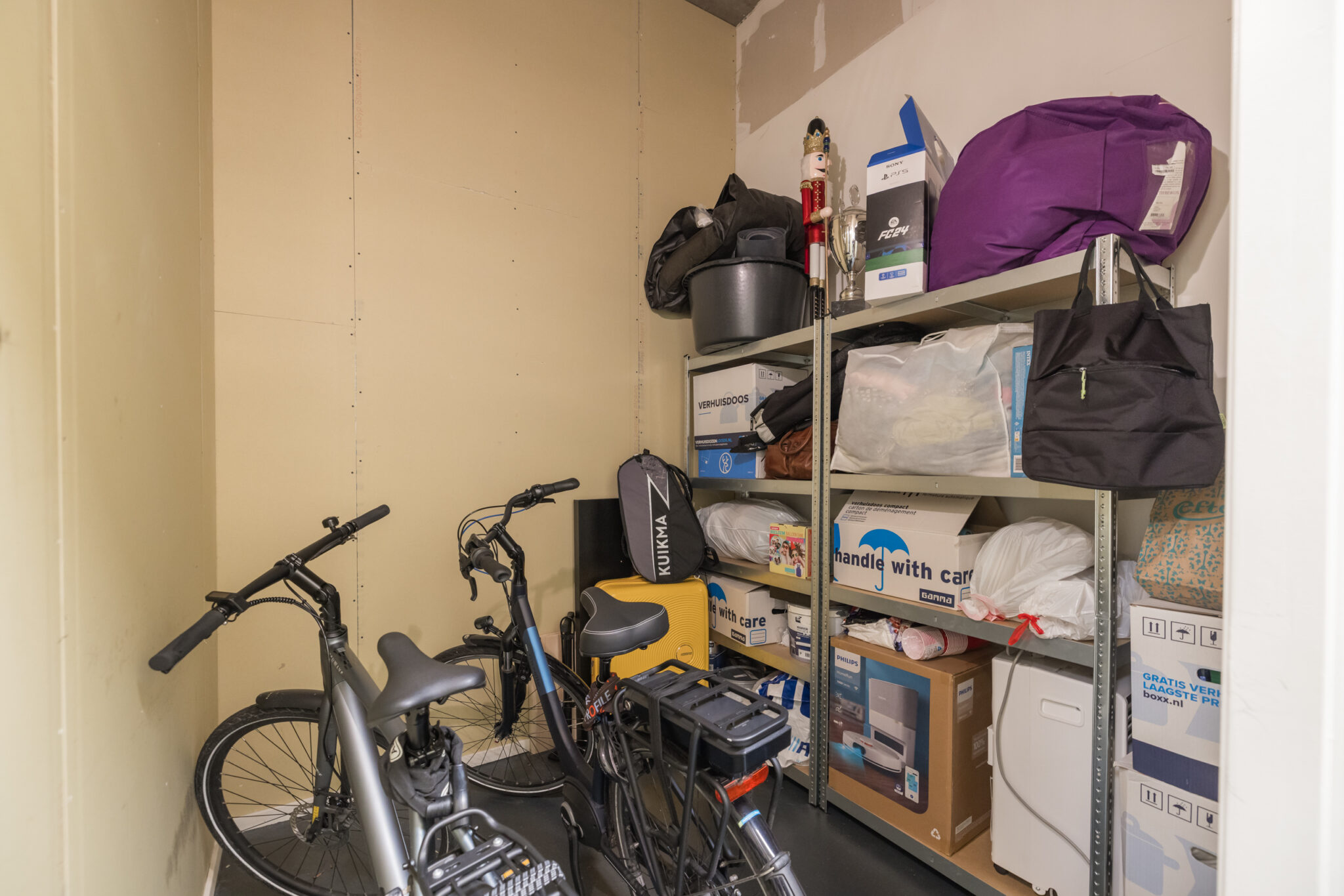 Direct tegenover de voordeur op de eerste etage is een praktische bergruimte aanwezig. Een tweede fietsenberging is op de begane grond aanwezig. Op de tweede etage is een groot gemeenschappelijk dakterras aanwezig waar u beschut en optimaal van de zon kan genieten.